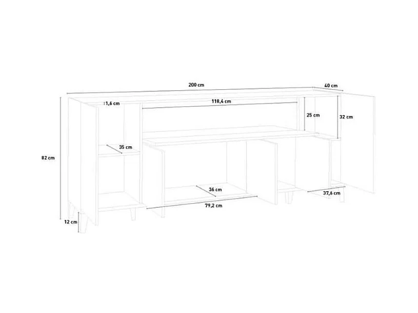 Credenza design moderno 200x40cm 5 ante vano a ribalta Stephanie Wood