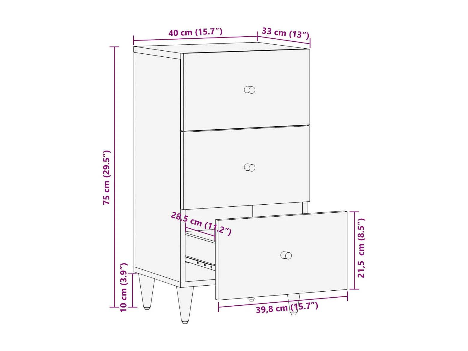 Credenza 40x33x75 cm in Legno Massello di Mango