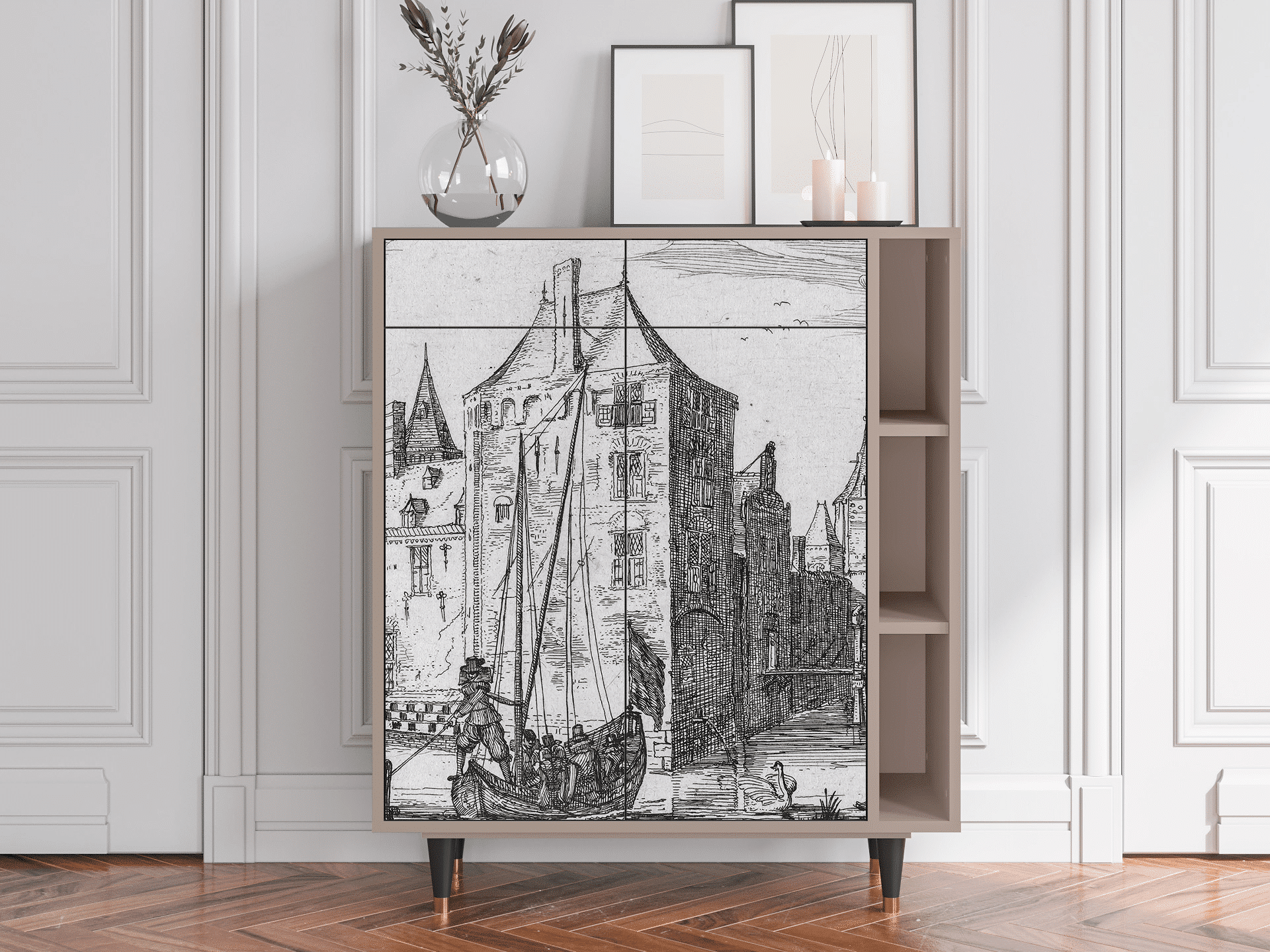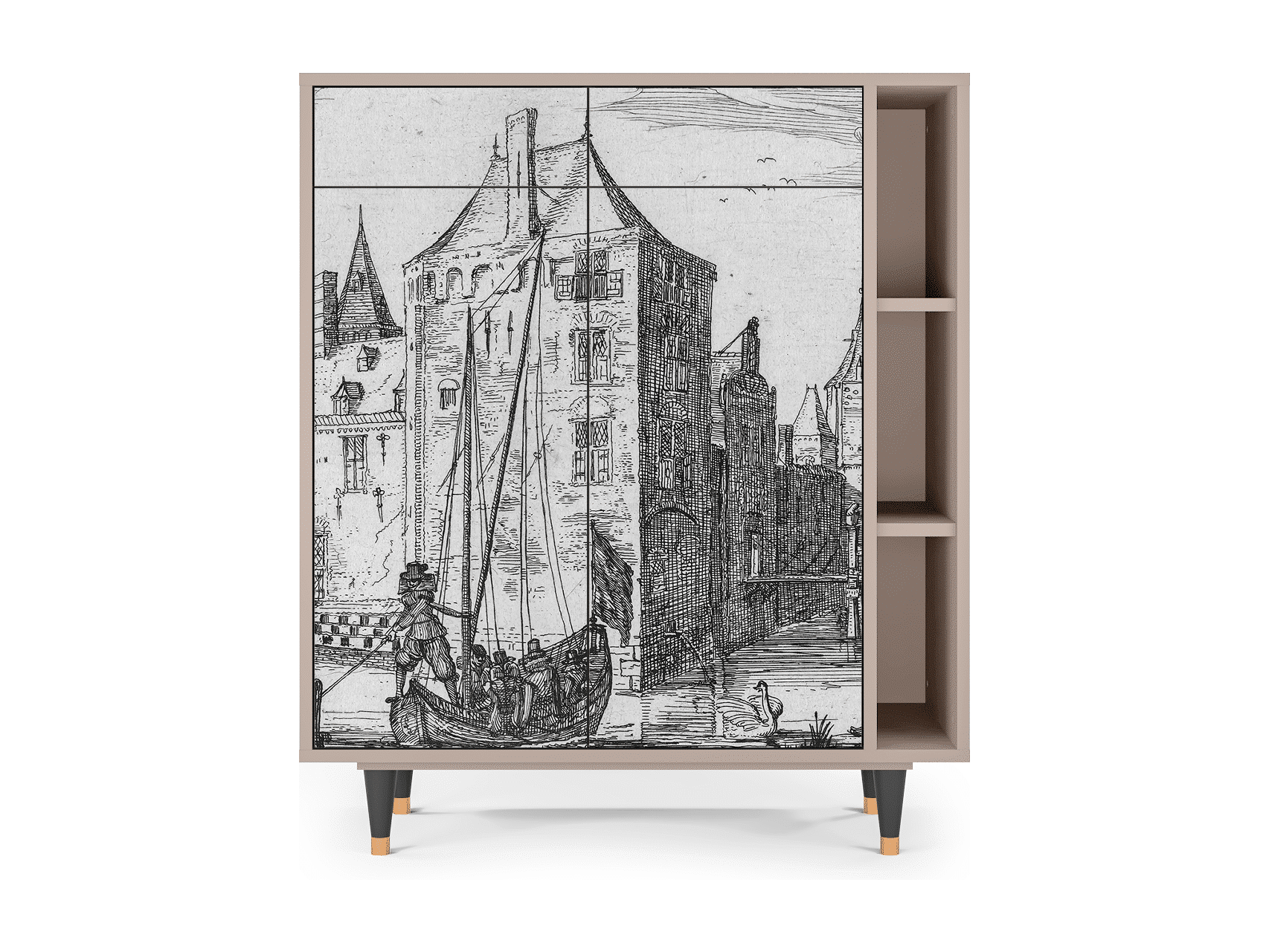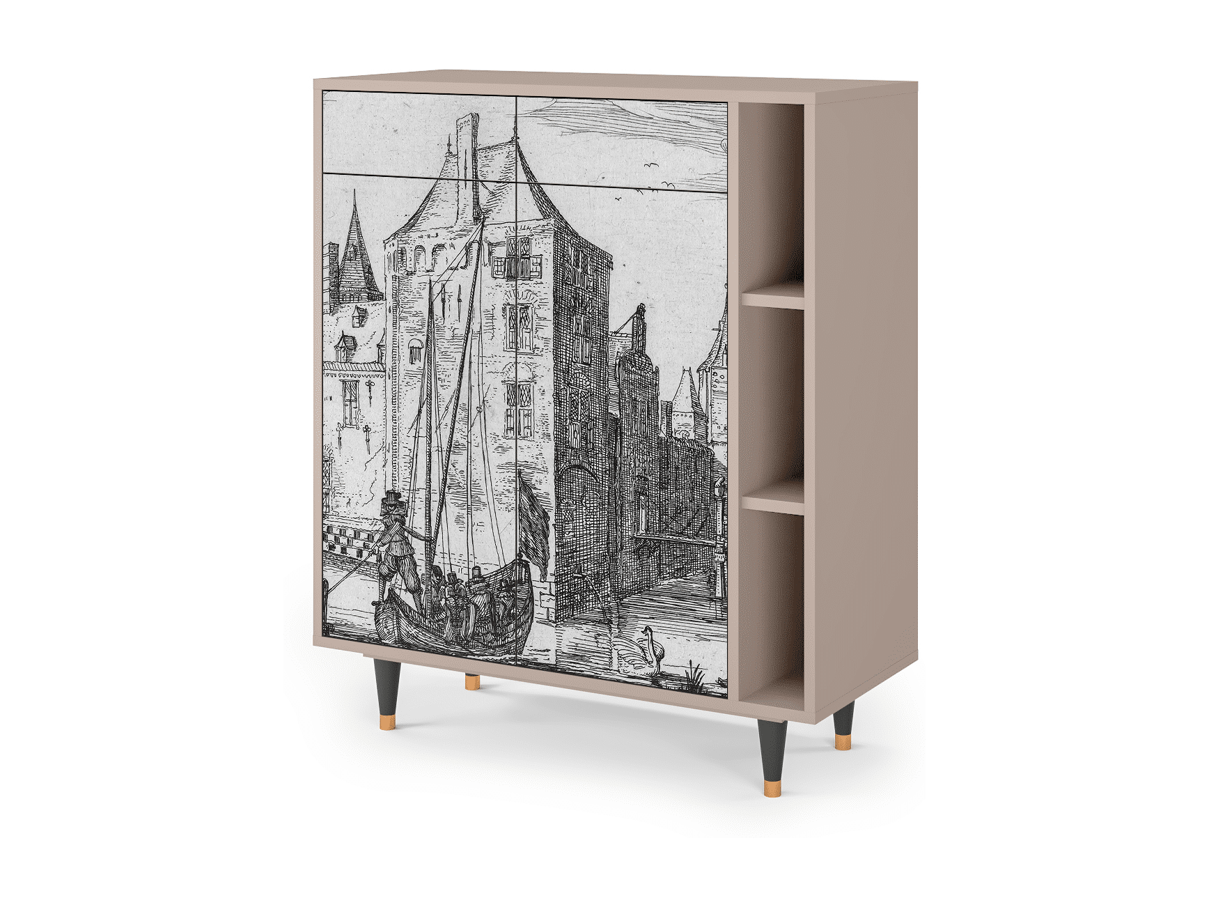 Credenza - 96х110х41 cm - BS6 - Castle with Bridge, Latte