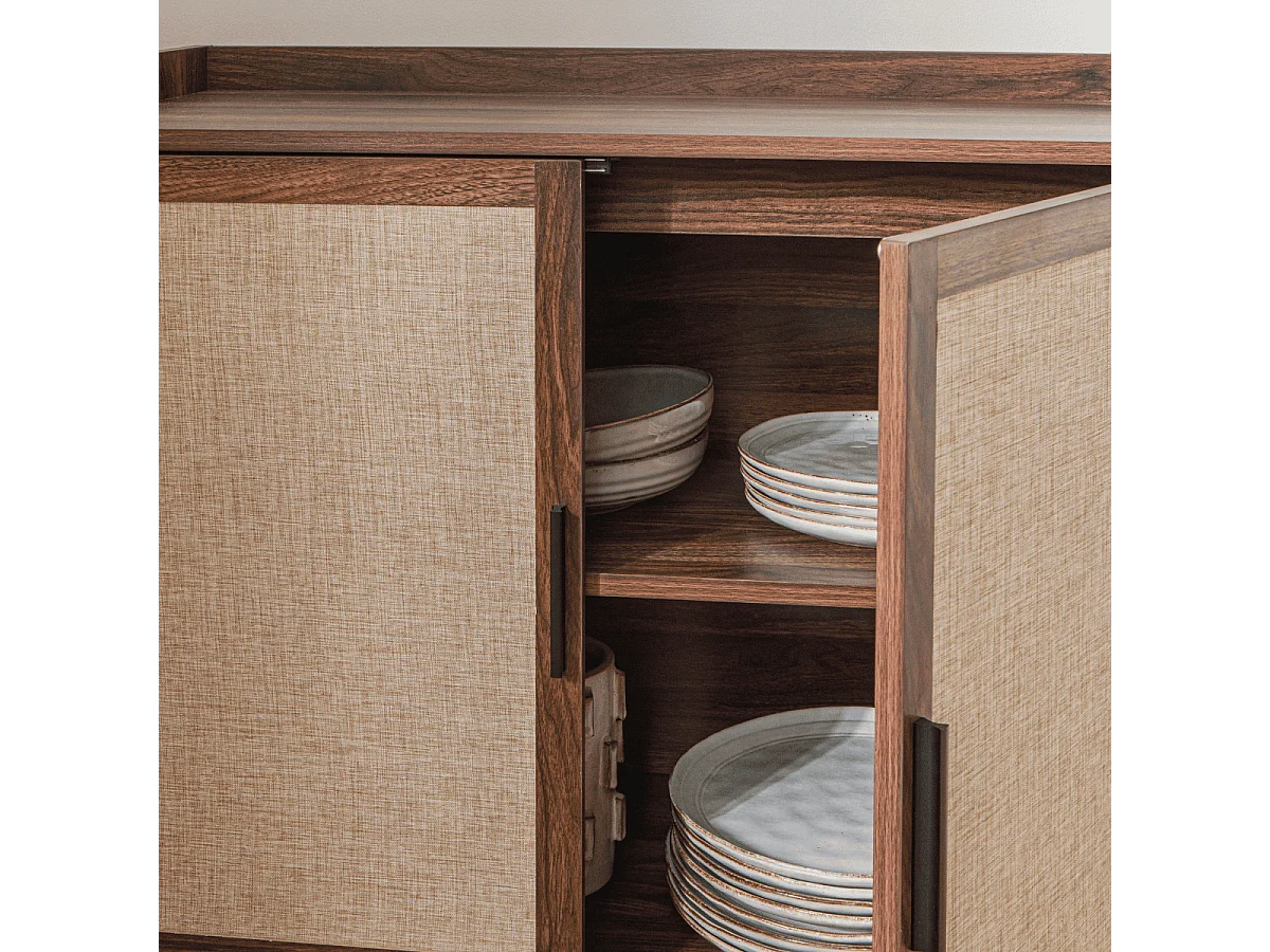Credenza a 2 ante con finitura noce e frontali in tessuto L80 cm - JETSON