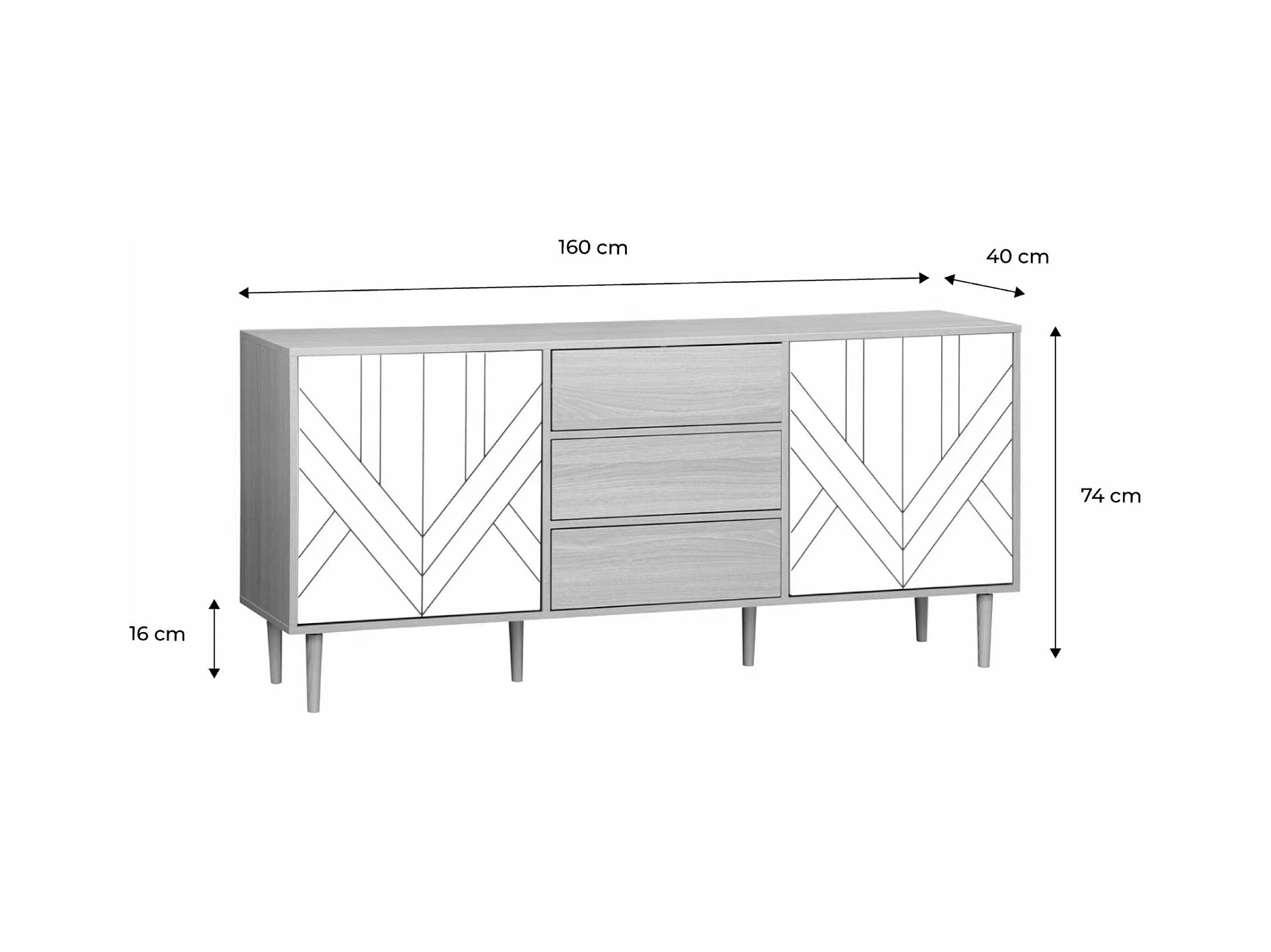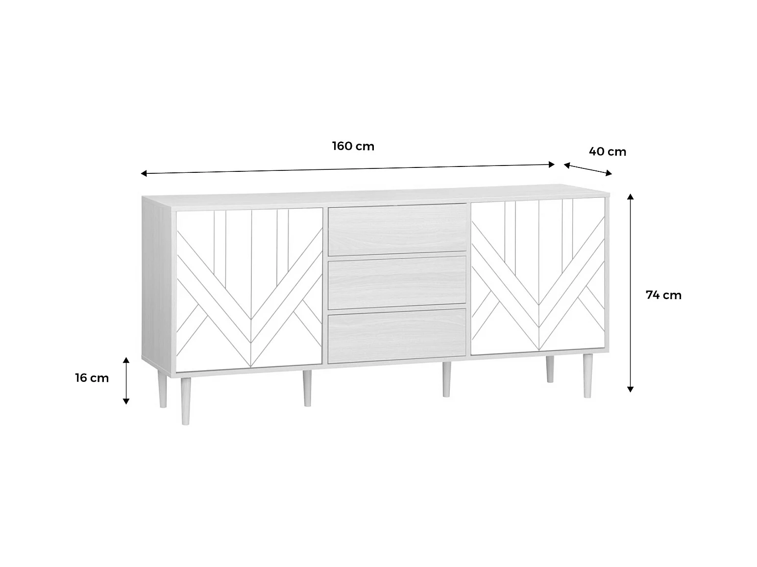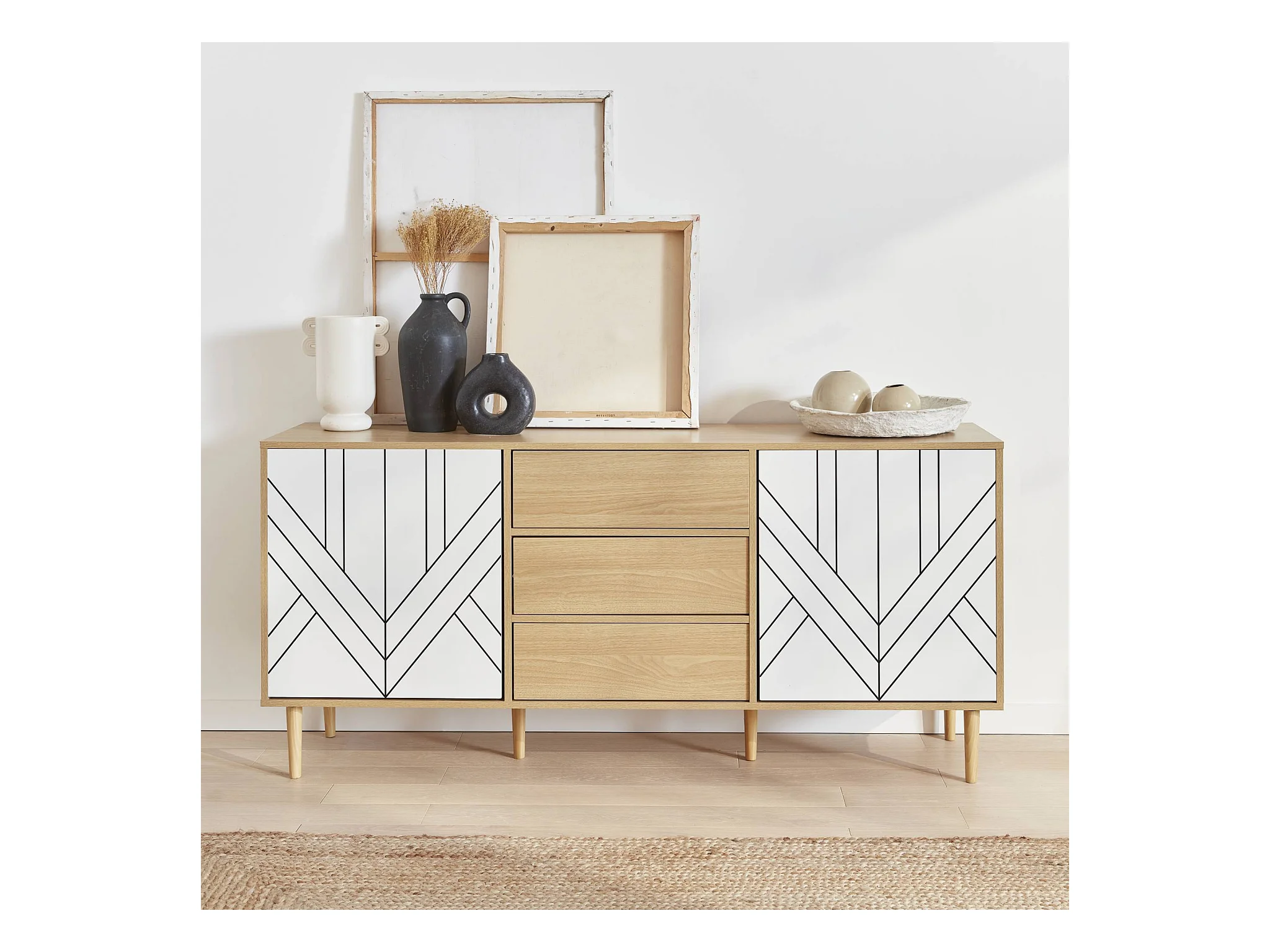 Credenza a 2 ante effetto legno, 160cm, bianco