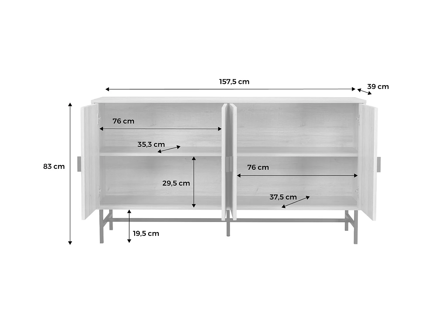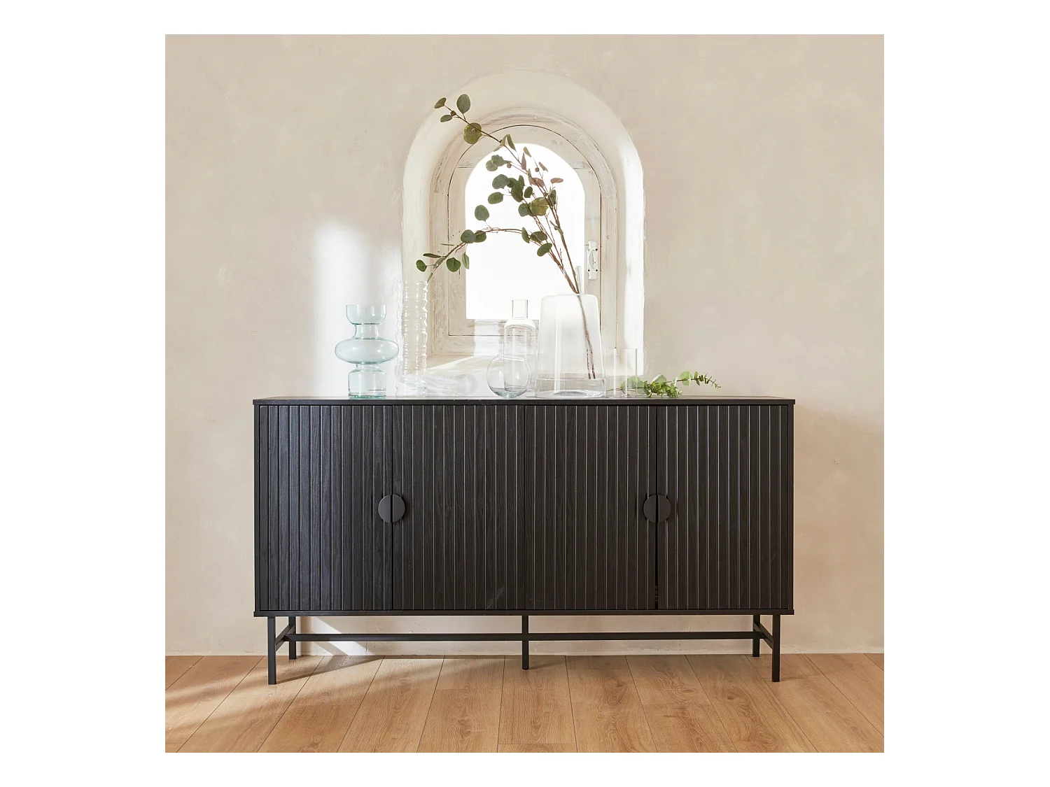 Credenza a 4 ante scanalata effetto legno, 157.5cm, nero