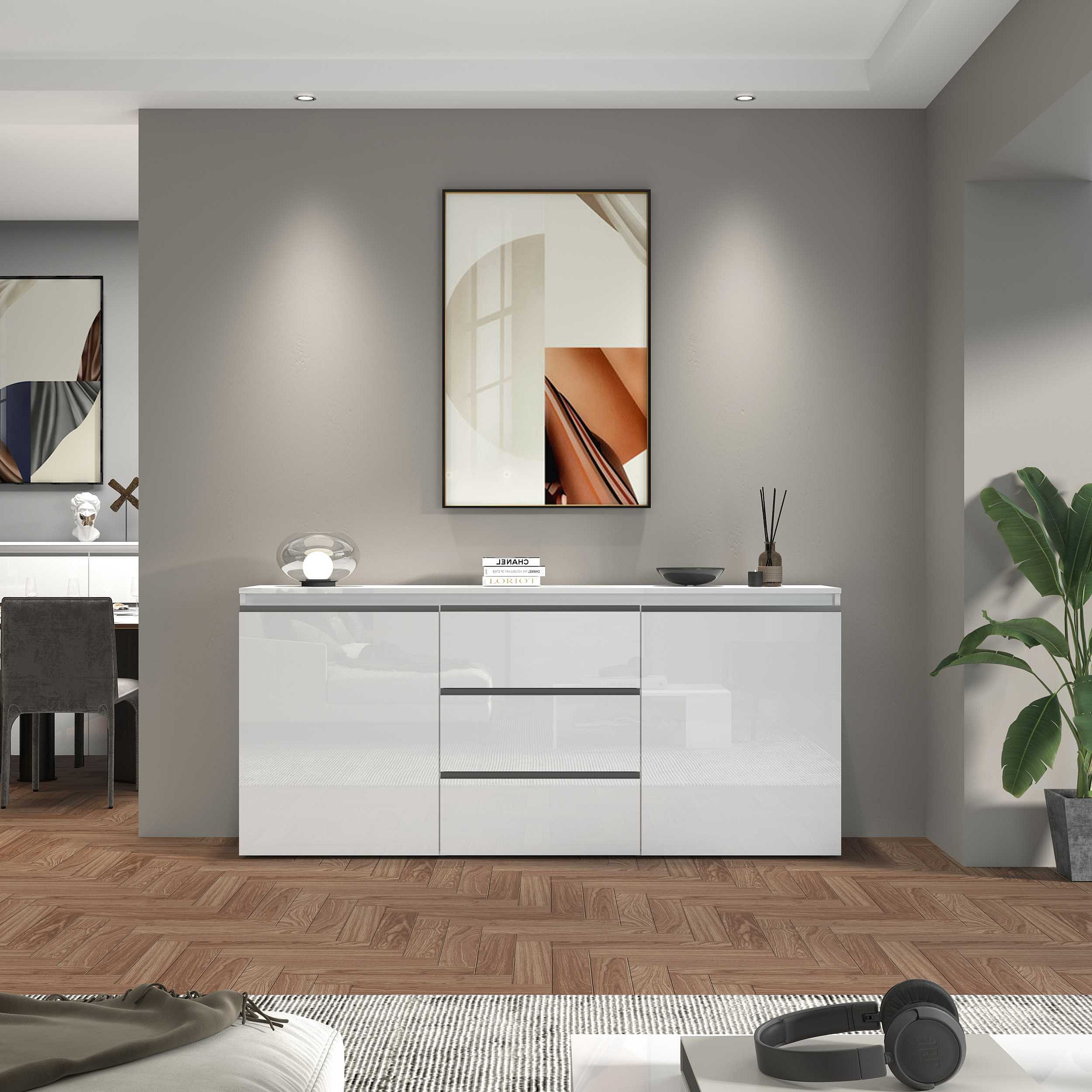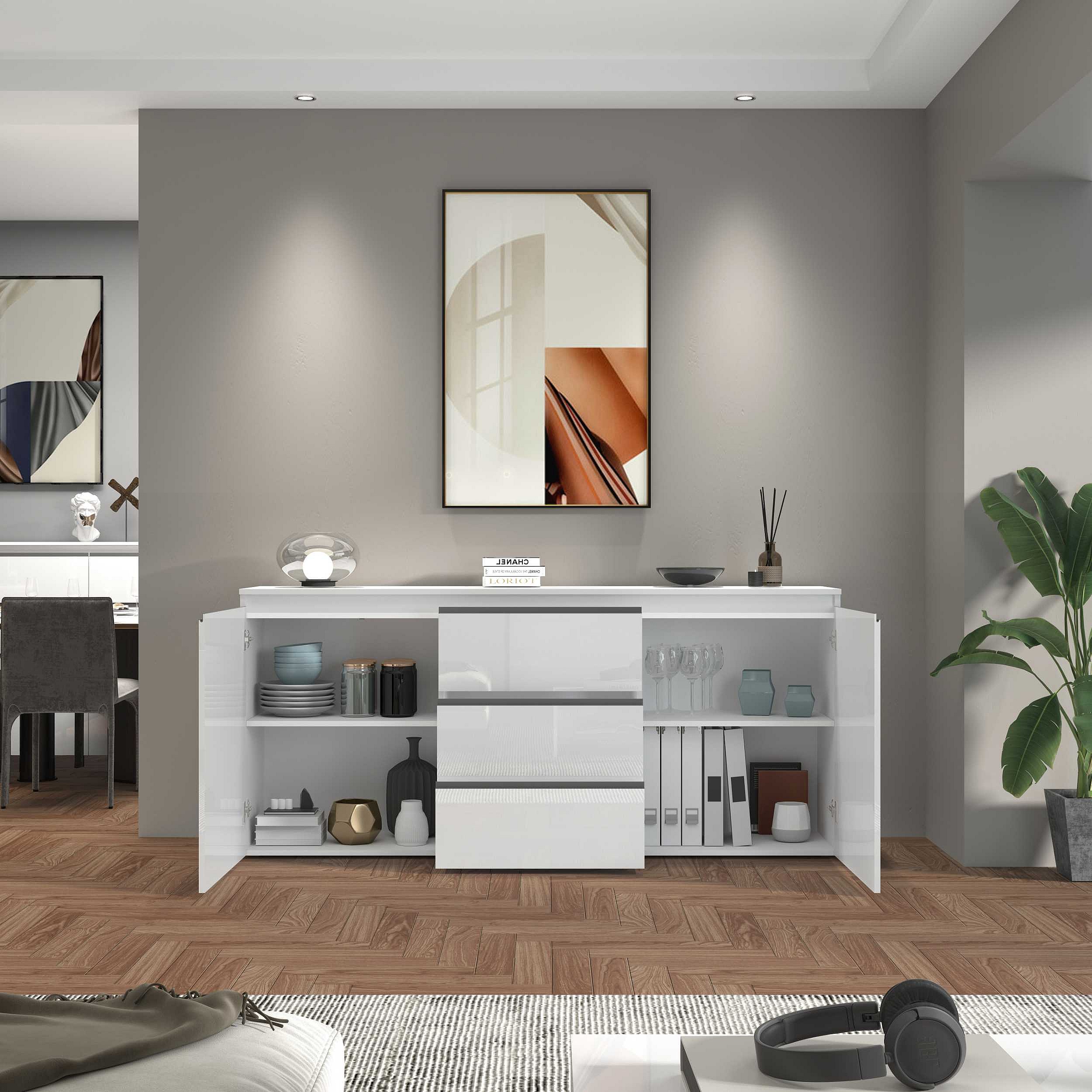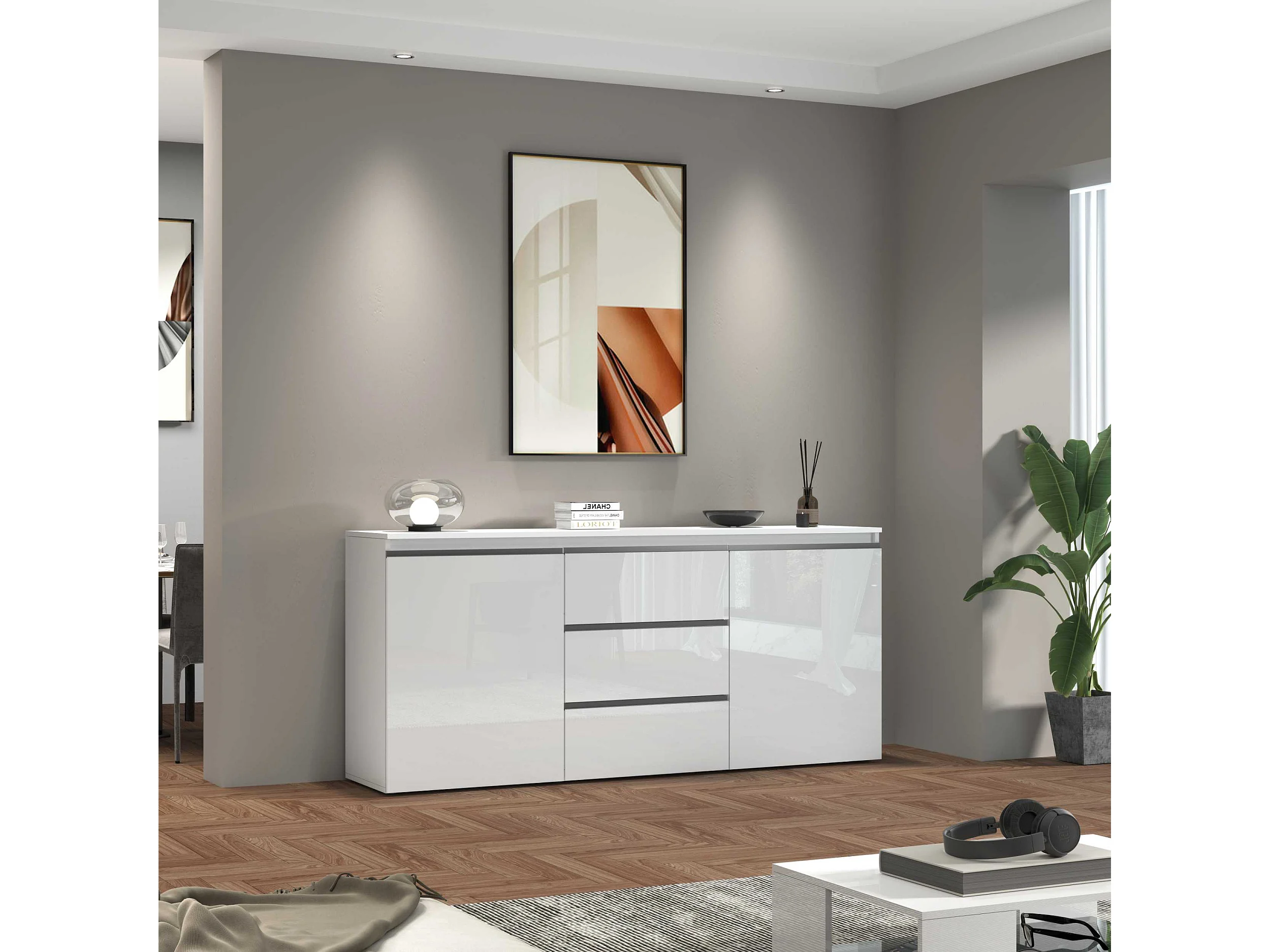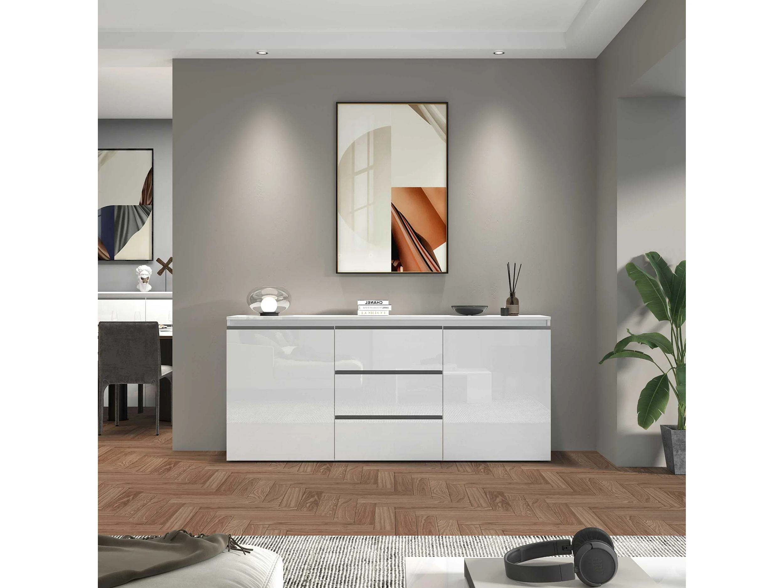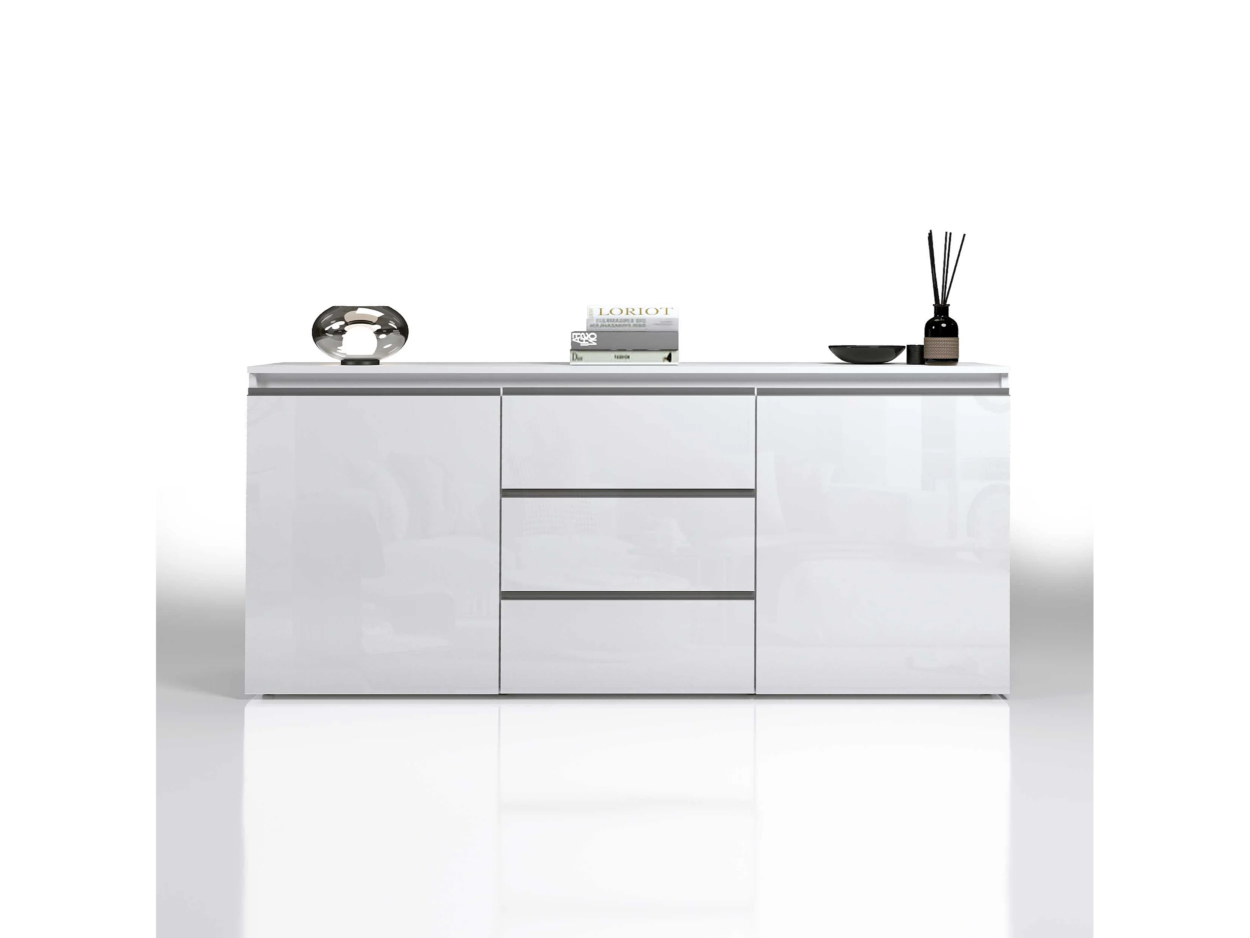 Credenza a cassettiera Magic 2 ante e 3 cassetti bianco lucido 180x40x80 cm
