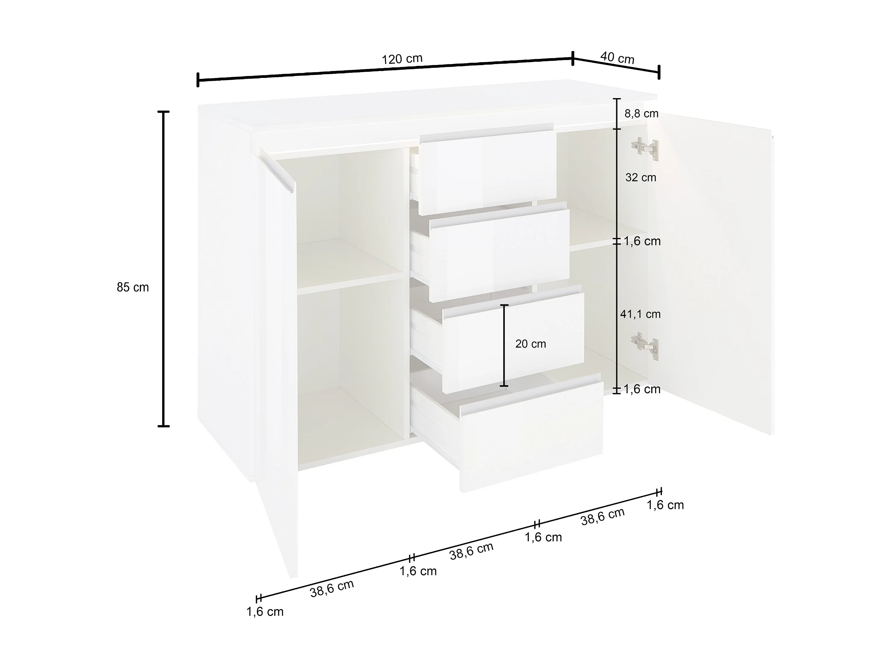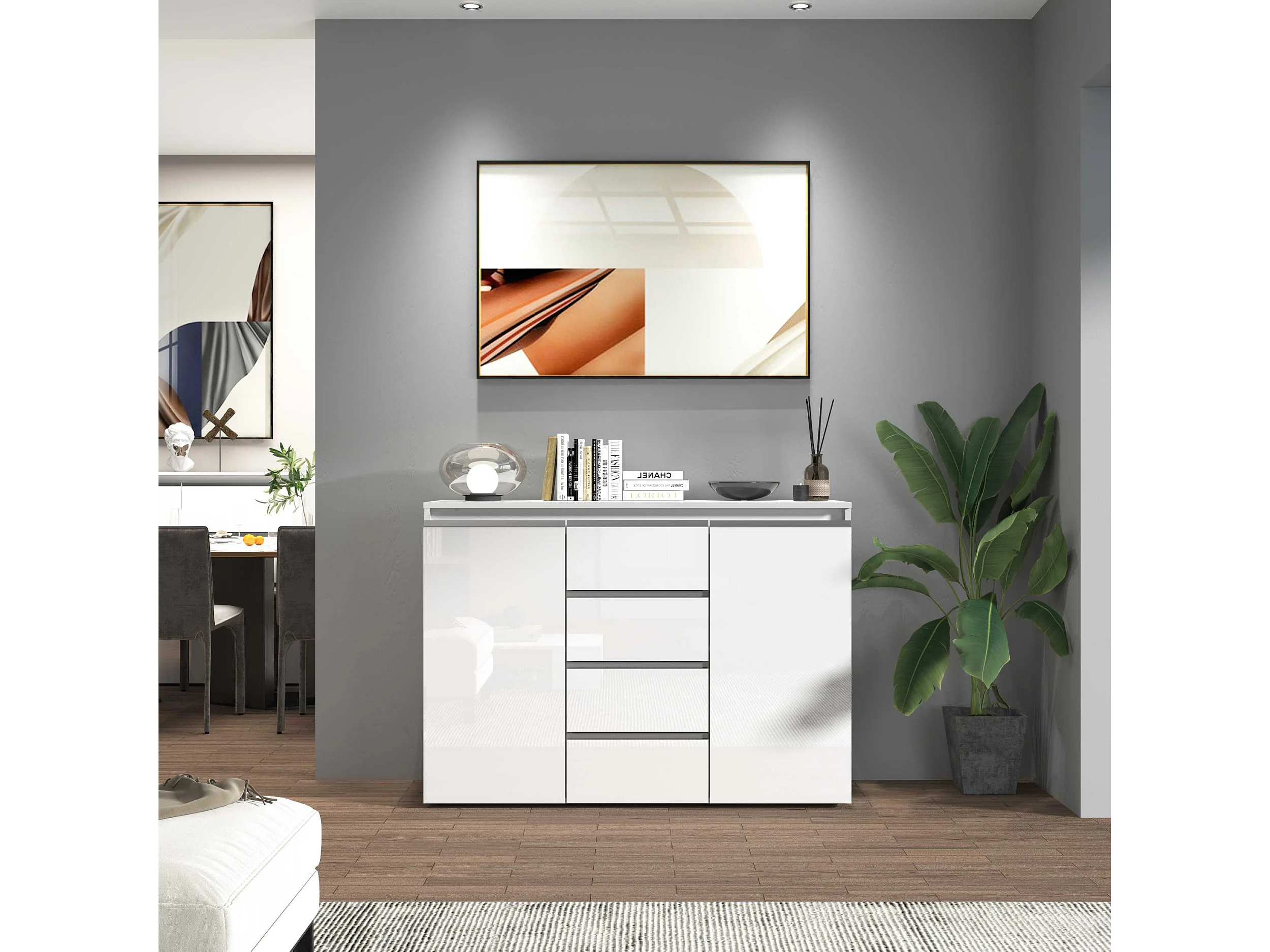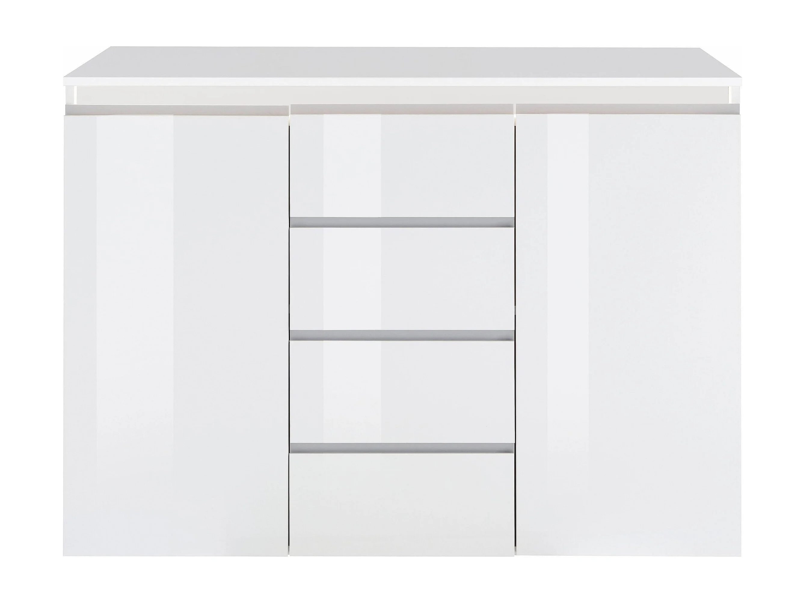 Credenza a cassettiera Magic 2 ante e 4 cassetti bianco lucido 120x40x105 cm