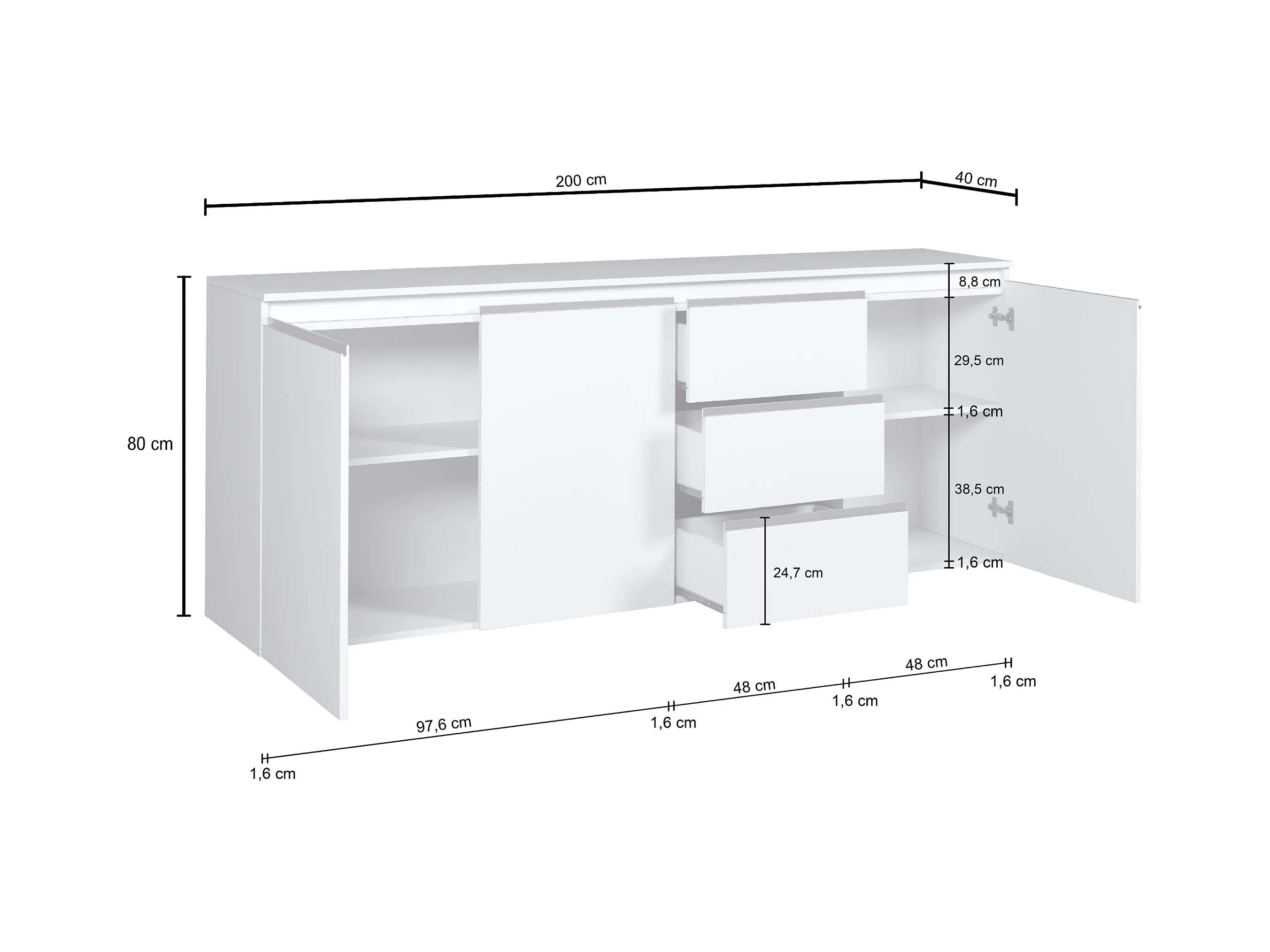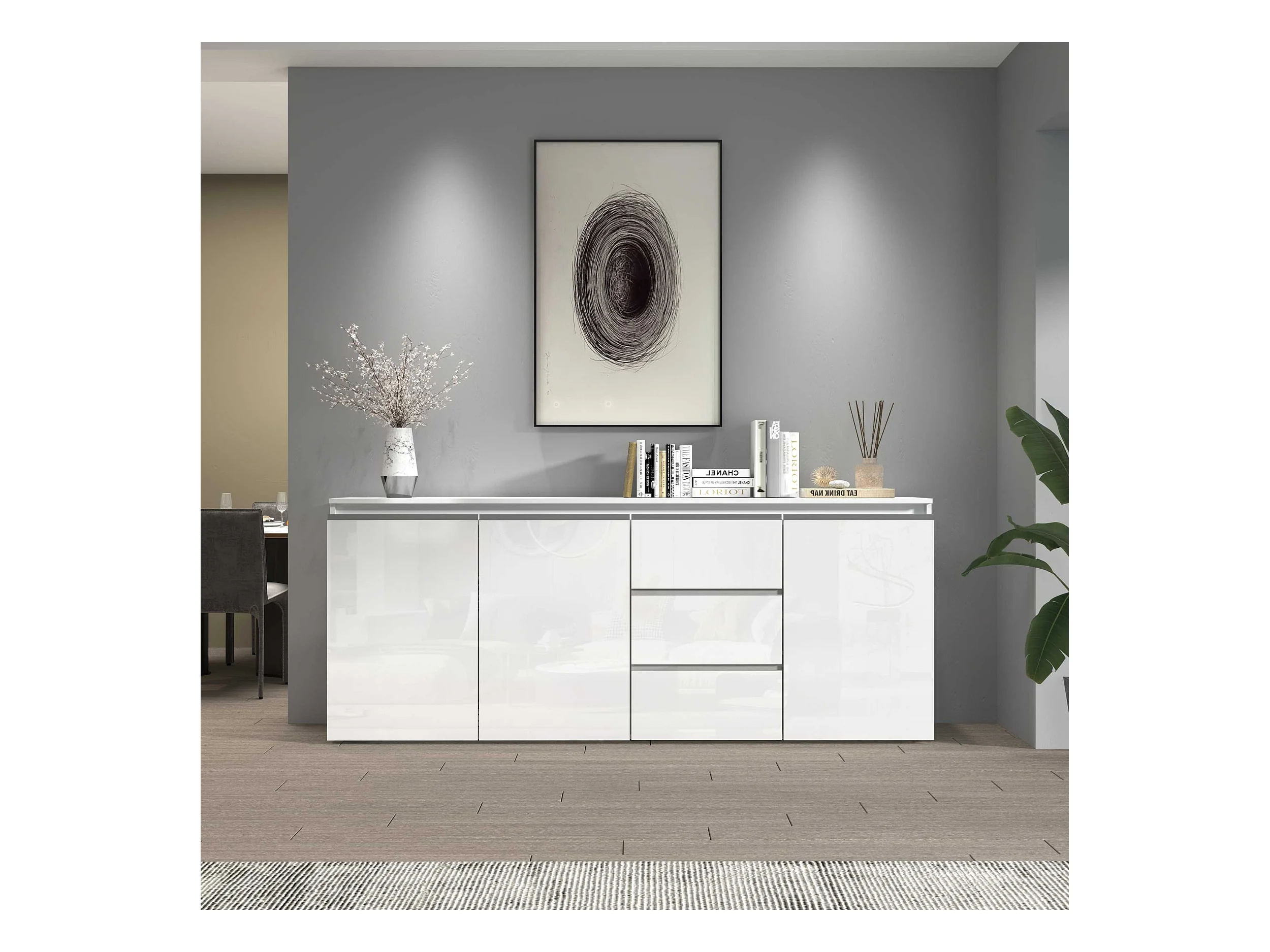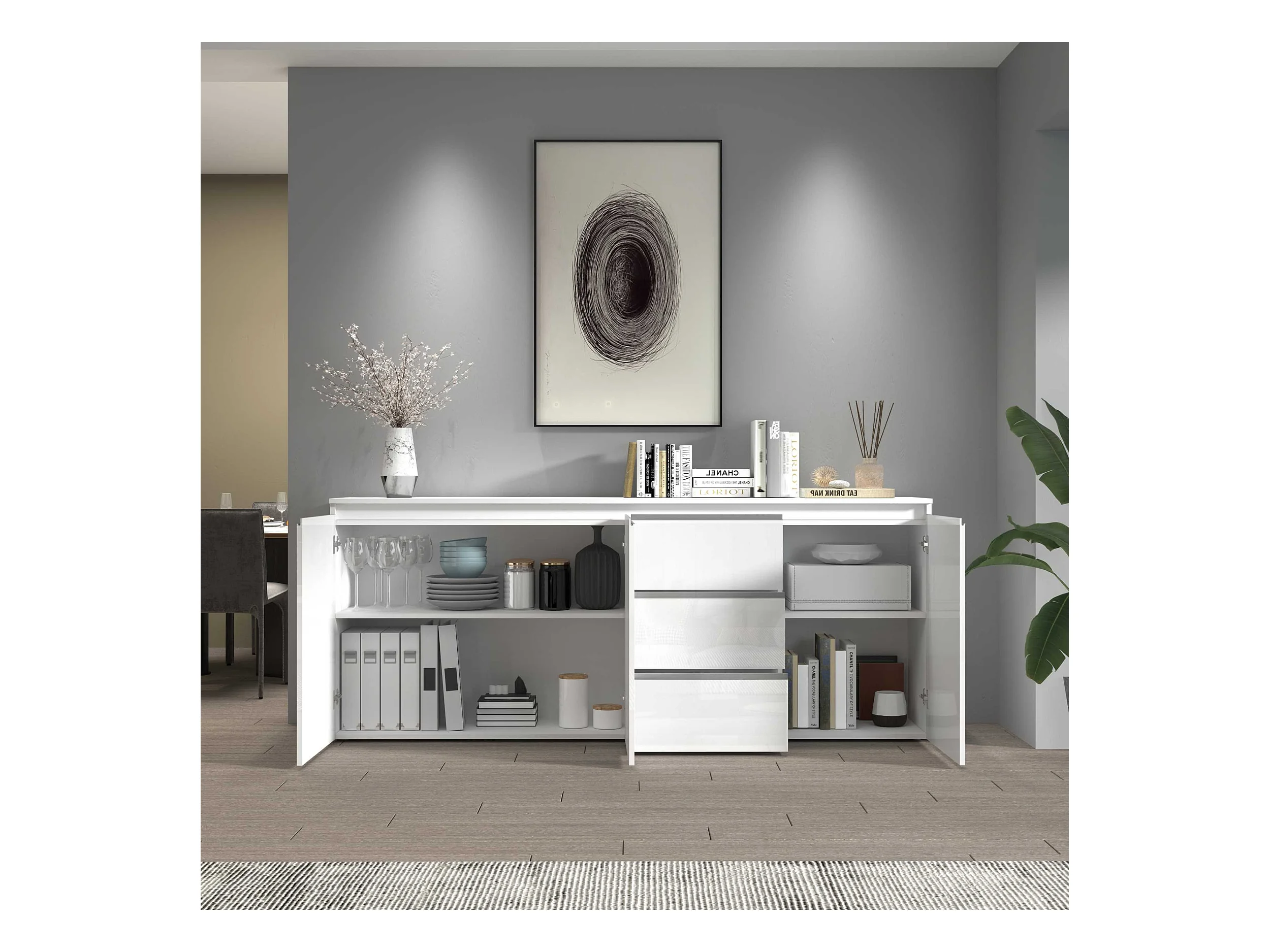 Credenza Egypt a 4 ante e 3 cassetti bianco lucido 200x40x80 cm