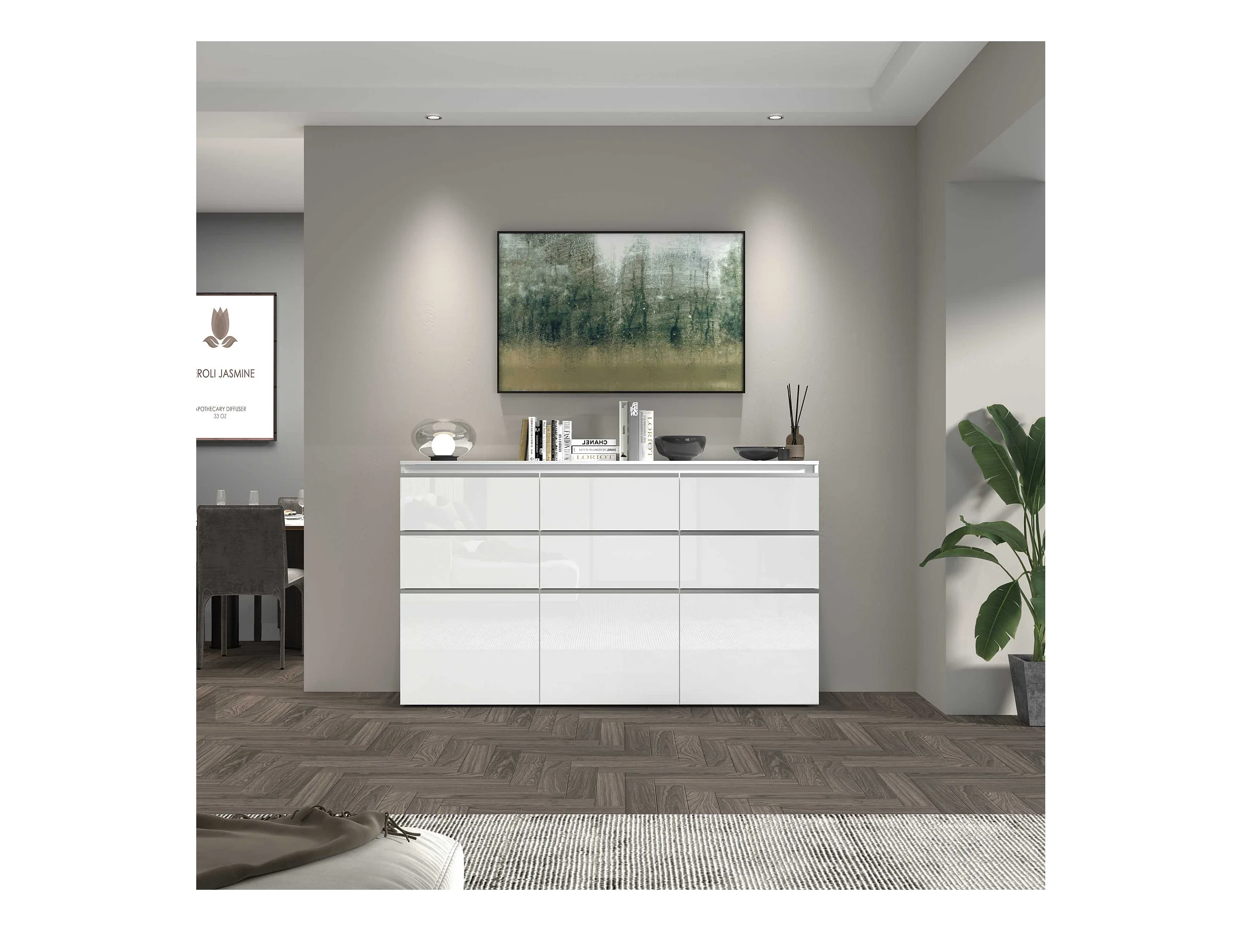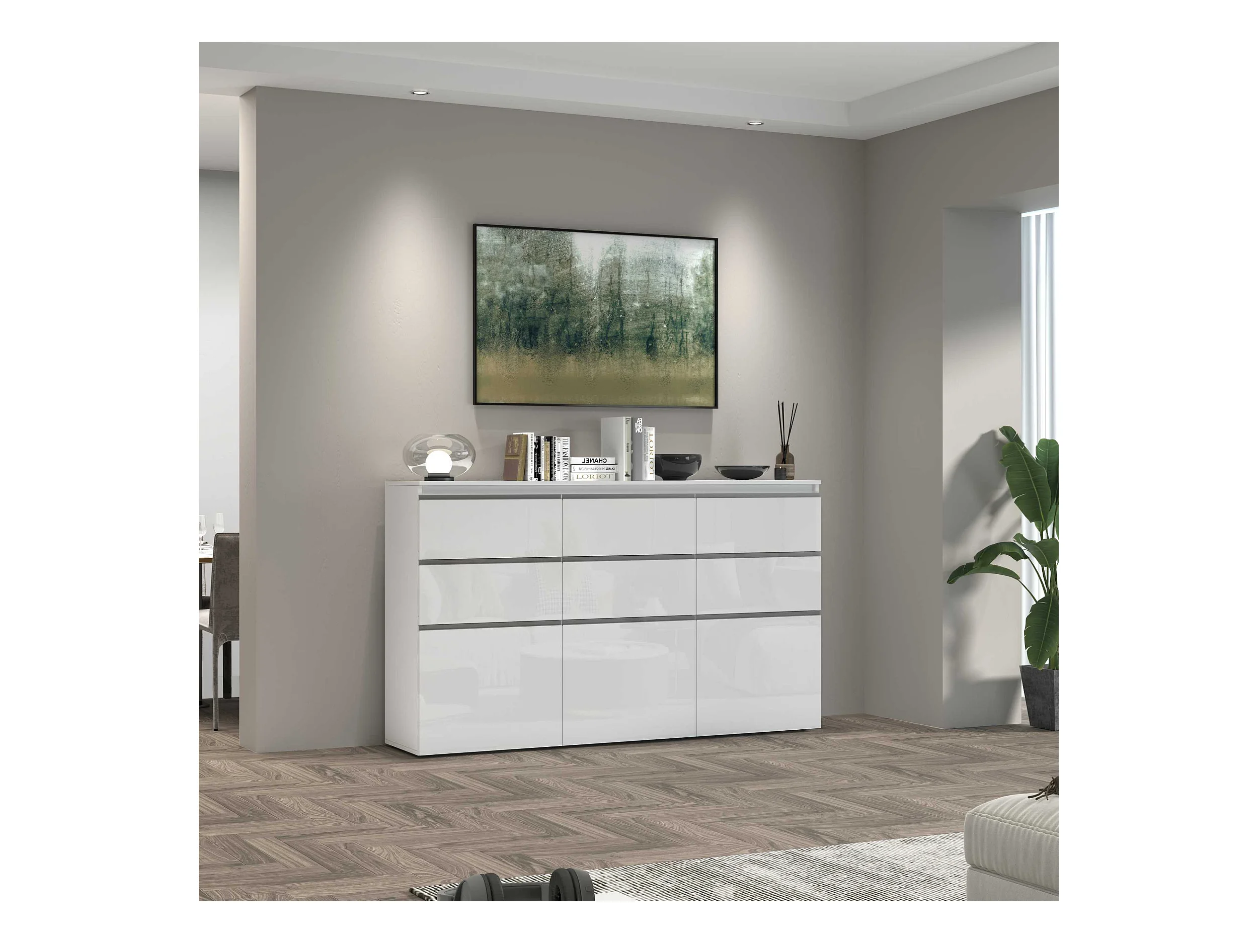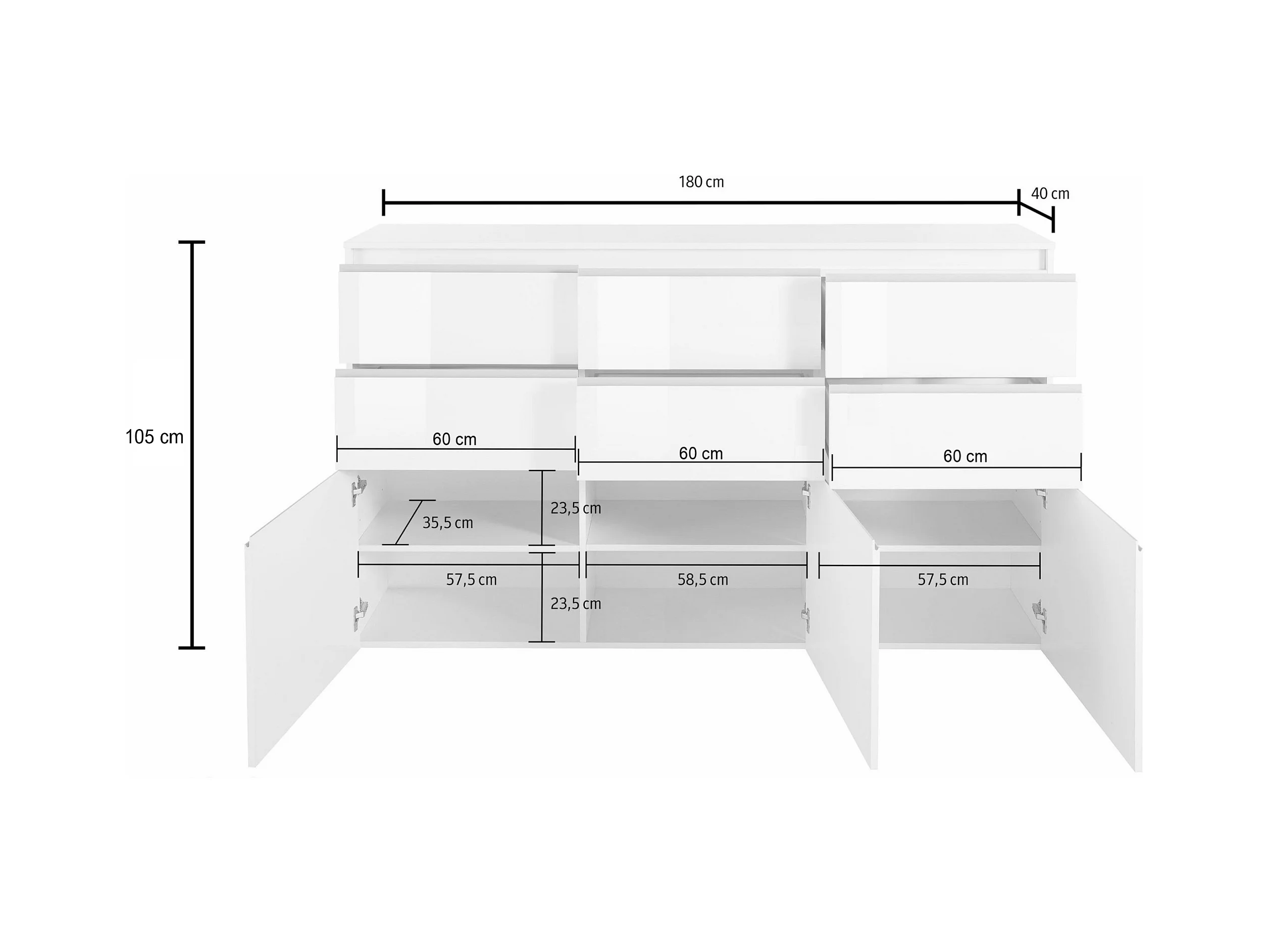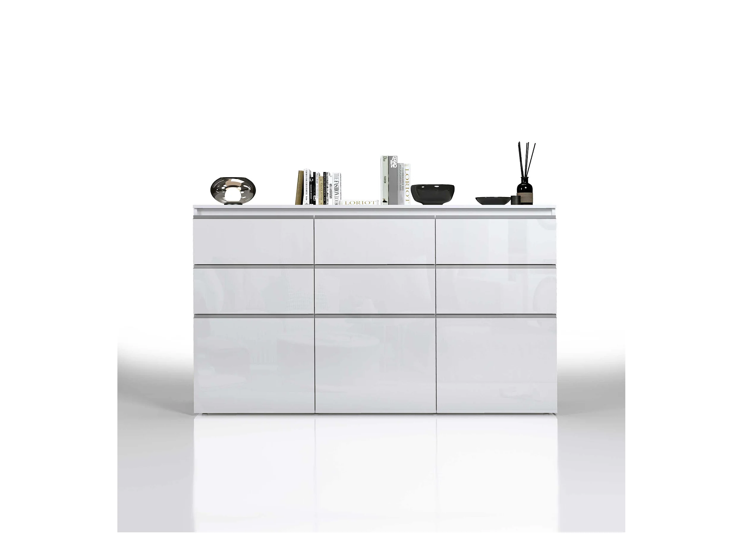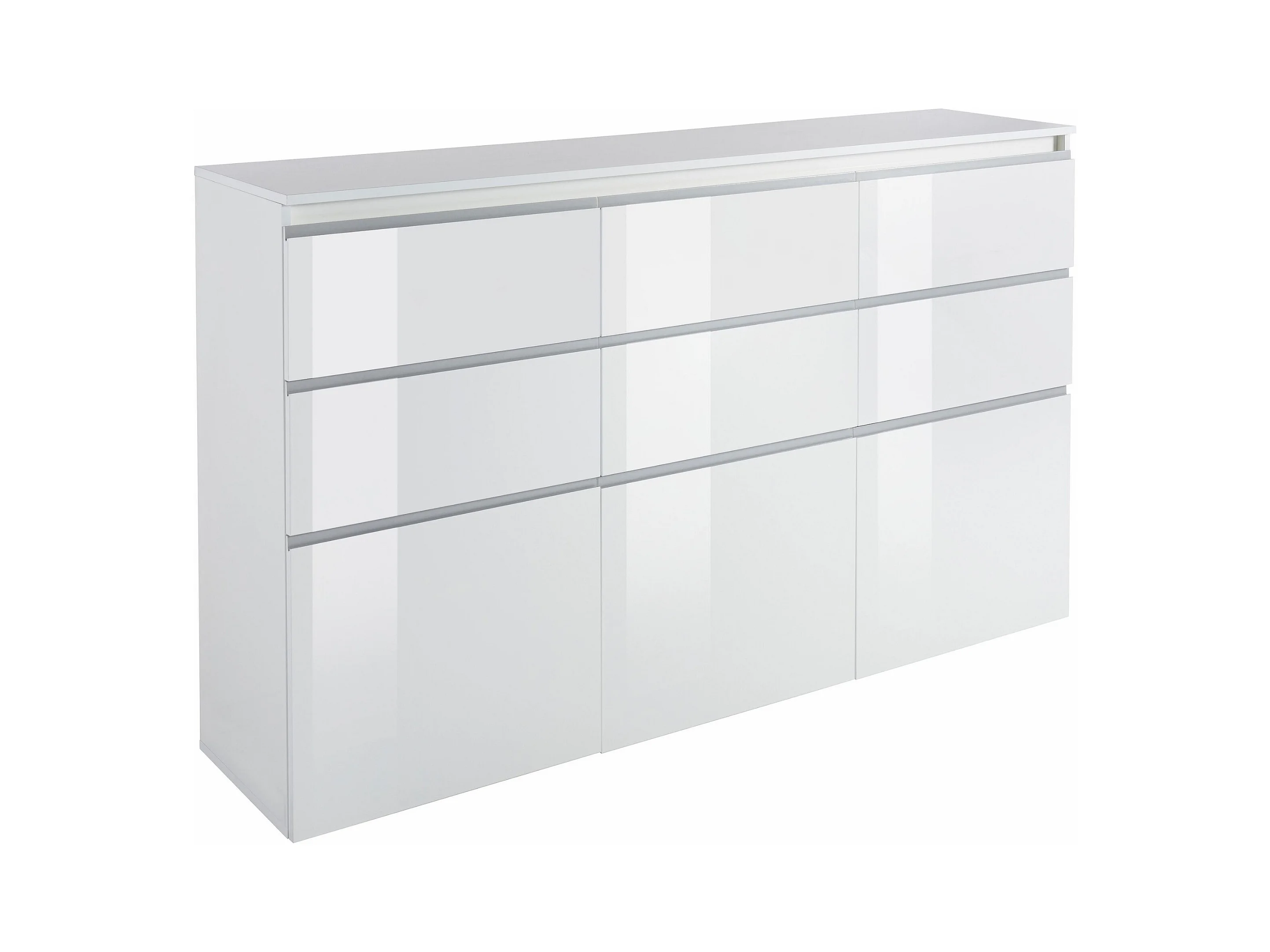 Credenza a cassettiera Magic 3 ante e 6 cassetti bianco lucido 180x40x105 cm