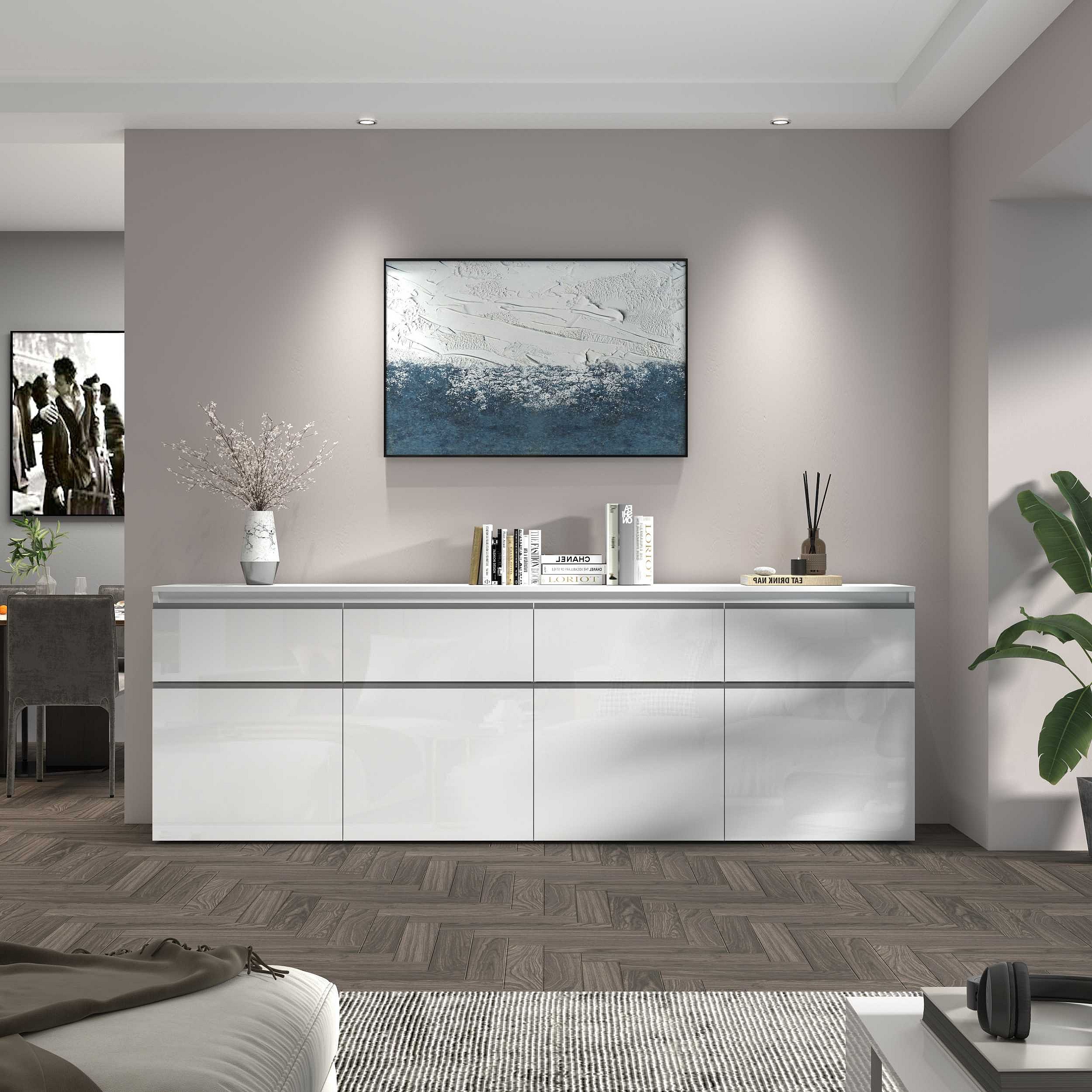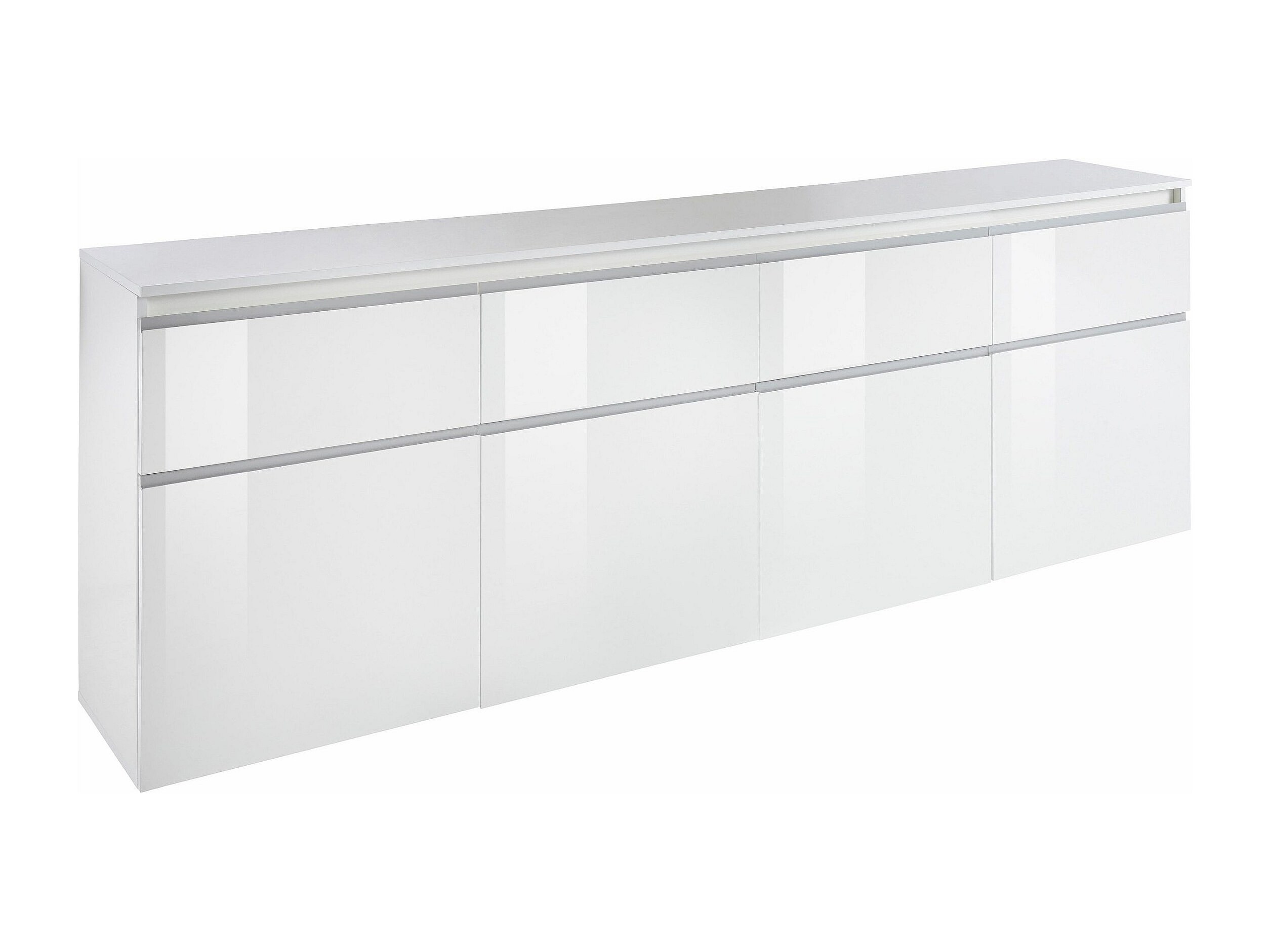 Credenza a cassettiera Magic 4 ante e 4 cassetti bianco lucido 240x40x80 cm