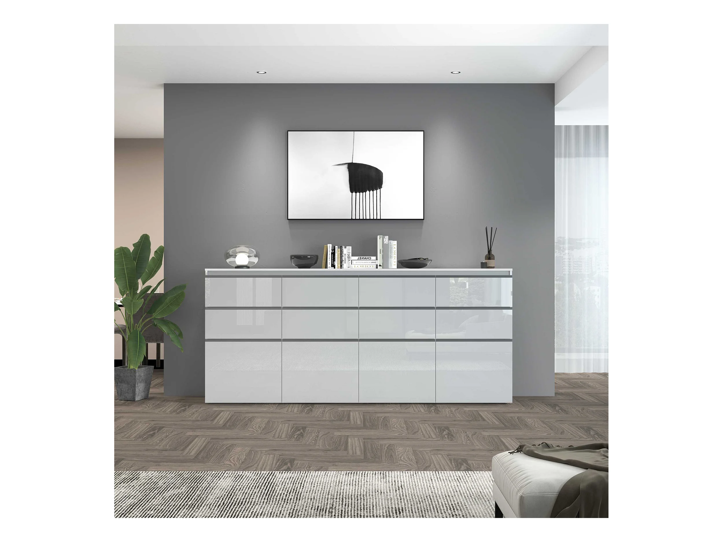 Credenza Potenza con 4 ante e 1 cassetto bianco lucido 173x40x81,5 cm