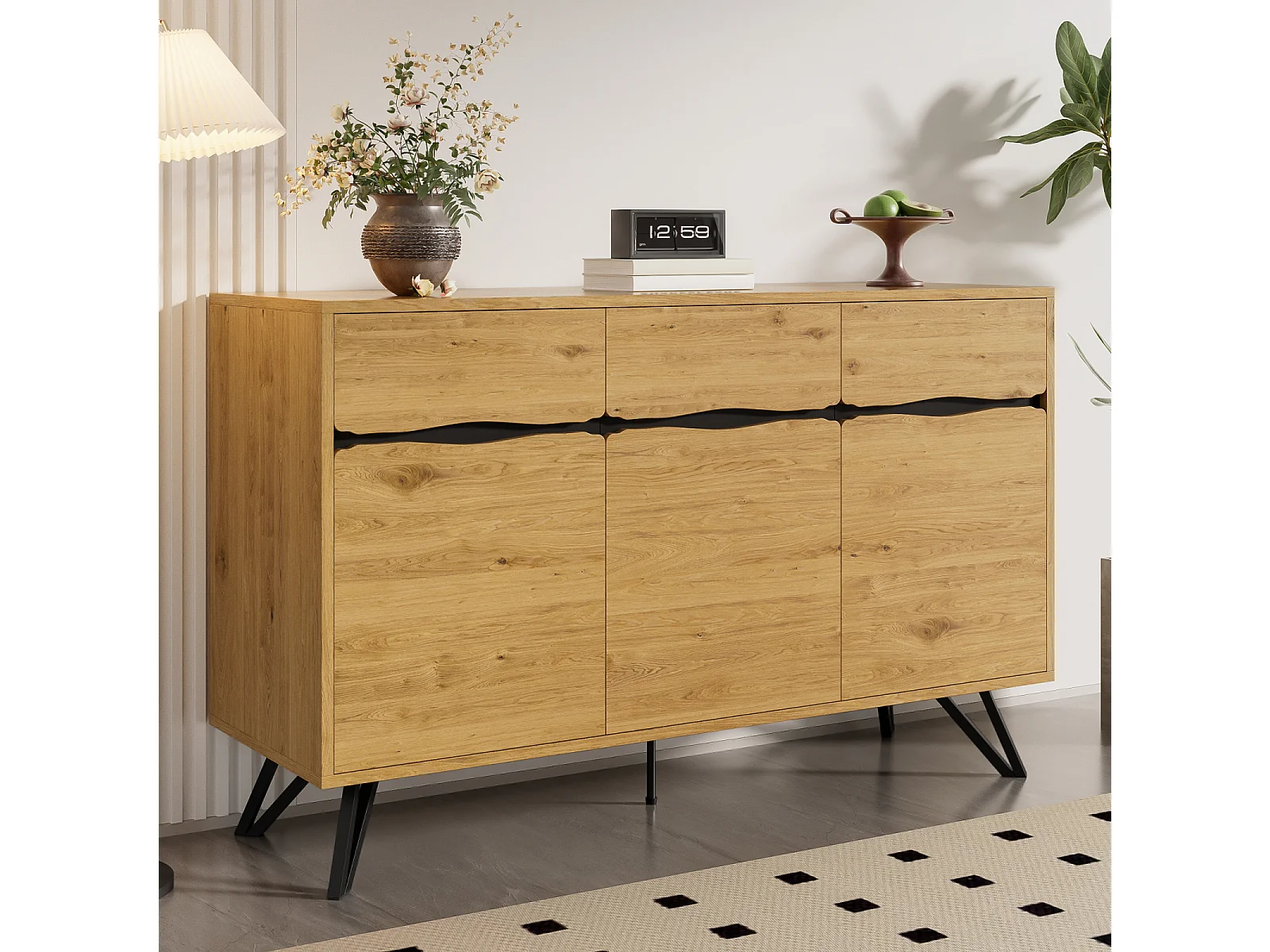 Credenza moderna a 6 cassetti - Gambe in metallo, per soggiorno e sala da pranzo - 120x40x75,5 cm