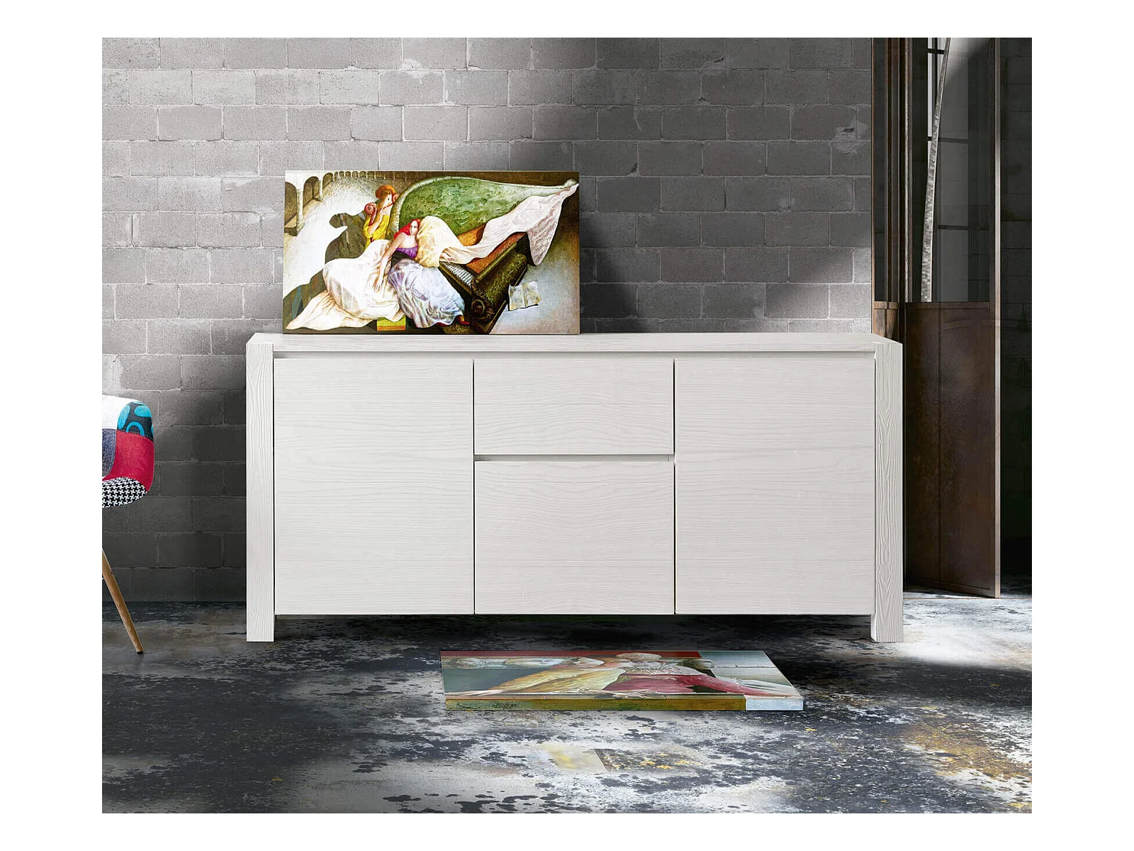 MilaniHome.it - Credenza Abete Bianco Spazzolato 125x50x84 Per Interno Sala Da Pranzo Salotto Cucina Moderno Massellodi coloreBianco