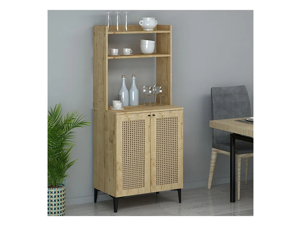 Credenza alta 2 ante e vani a giorno Zanne colore rovere