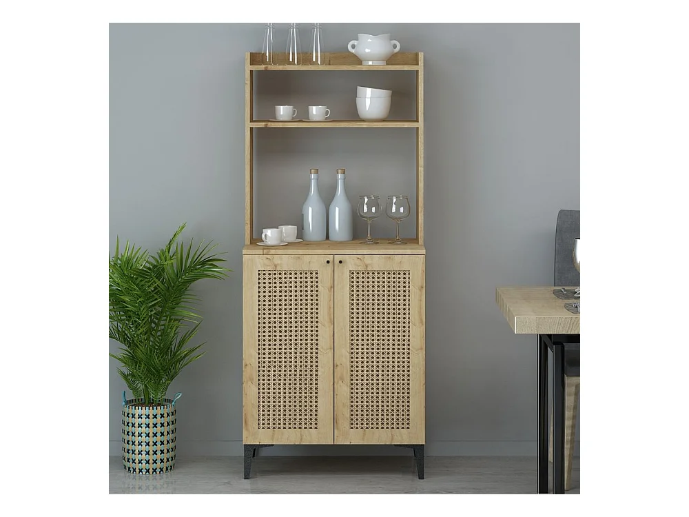 Madia 2 ante effetto vimini con cassetti e vani a giorno finitura rovere miele Natura 206x45x86H