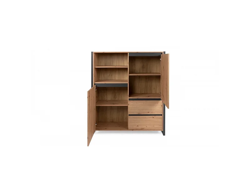 Credenza alta a 2 ante e 3 cassetti L120 cm - Decorazione legno chiaro