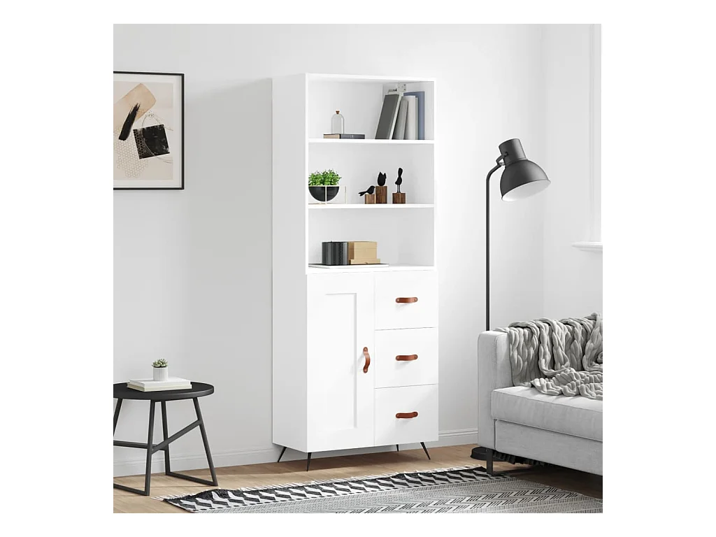 Credenza alta bianca 69,5x34x180 cm Legno ingegnerizzato