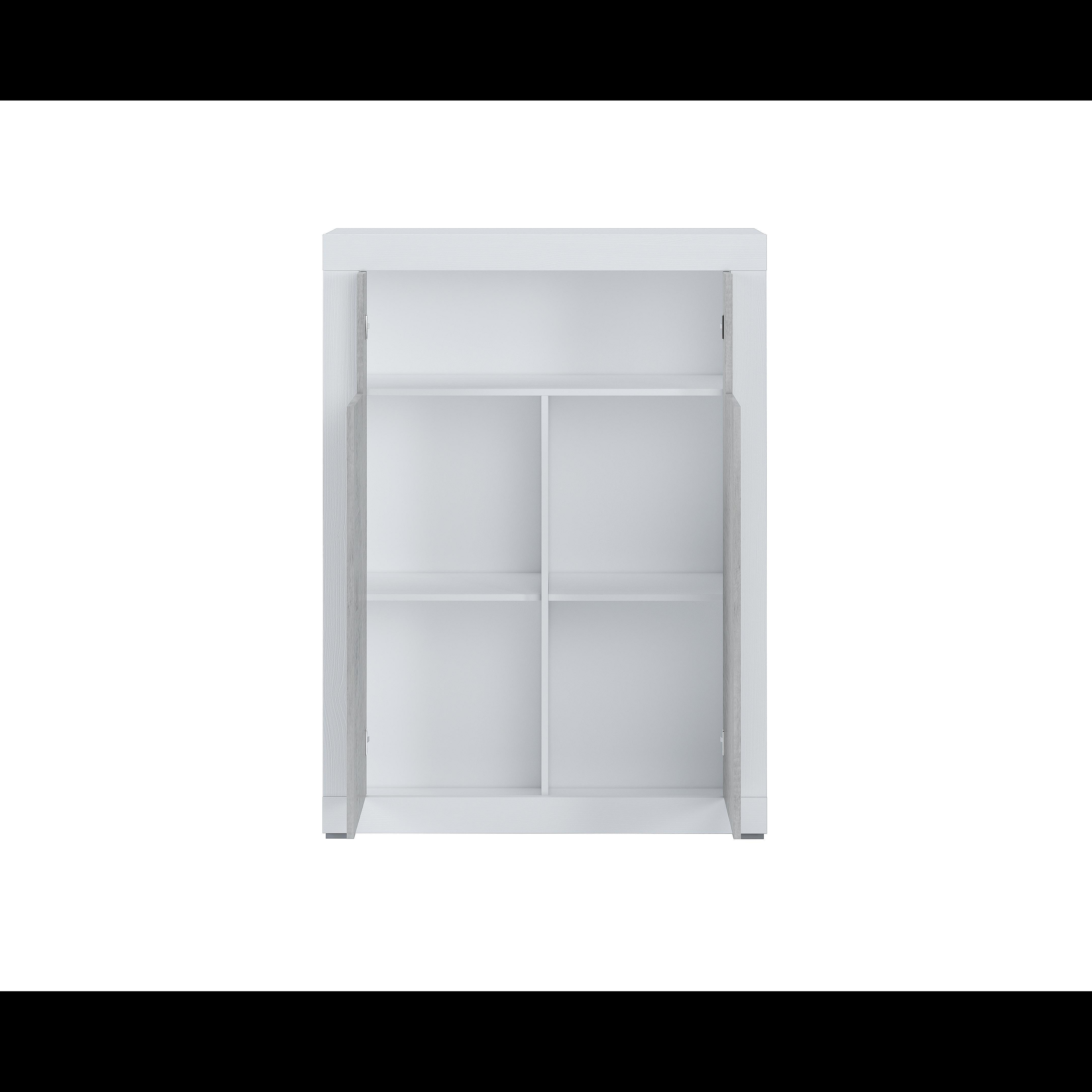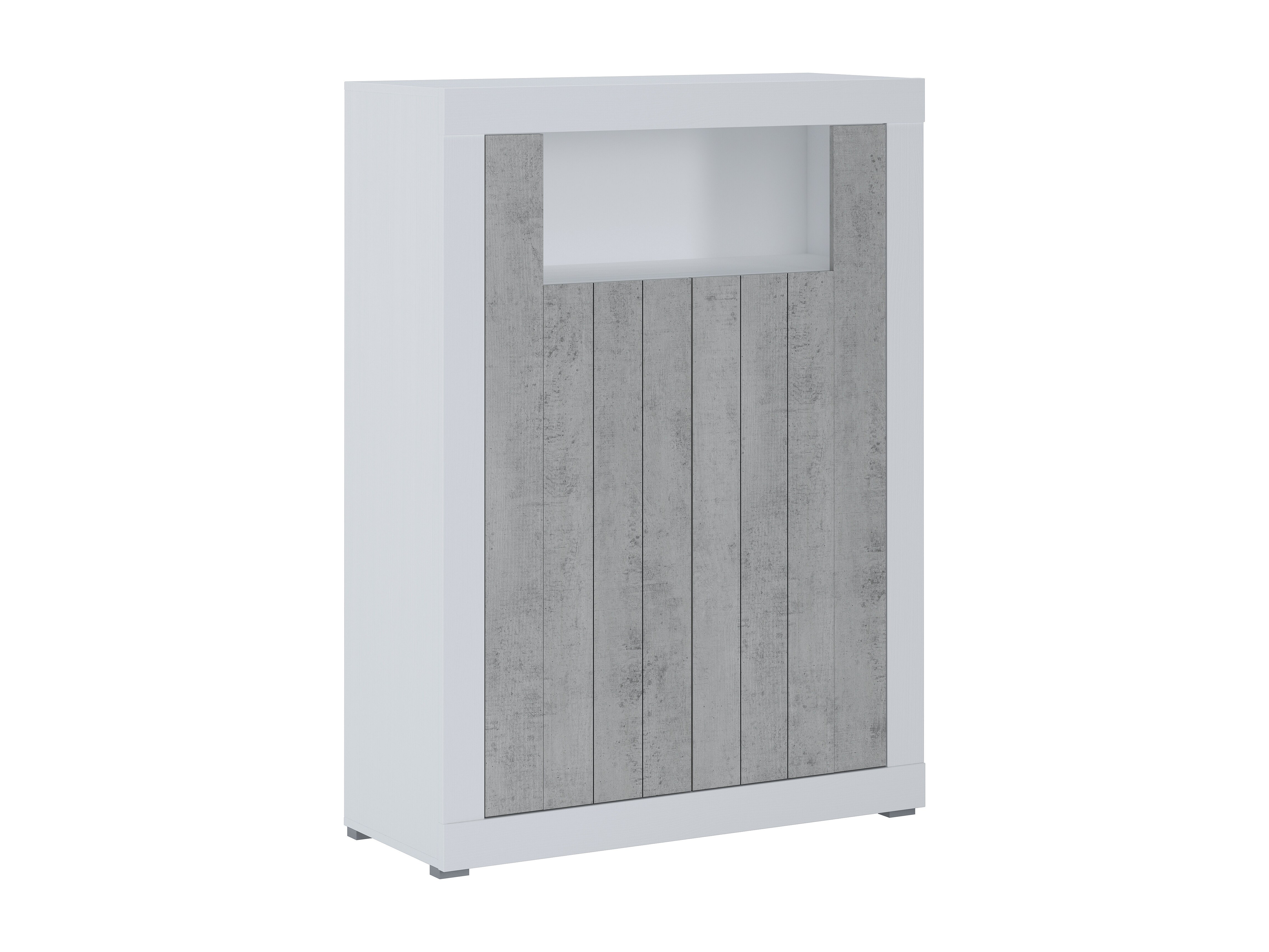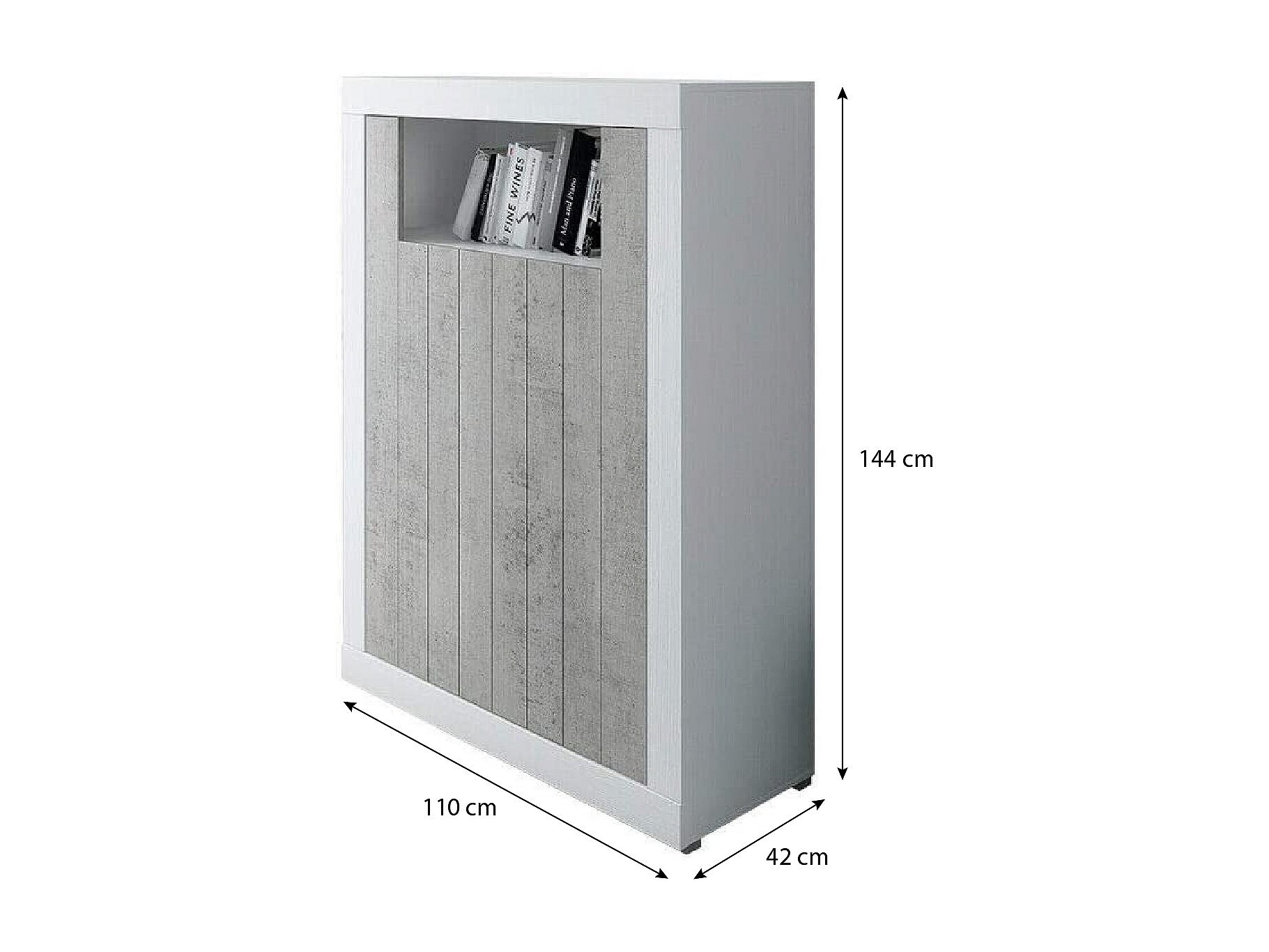 Credenza Alta con 2 Ante Vano A Giorno Madia Soggiorno Cucina Mobile Moderno Multi Spazio e Ripiani Credenza 110x144x42 Cm Bianco e Grigio Cemento