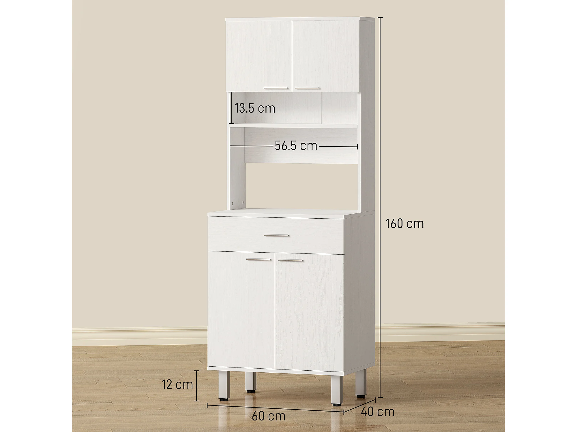 Credenza cucina alta mobile dispensa con 2 armadietti e cassetto grande