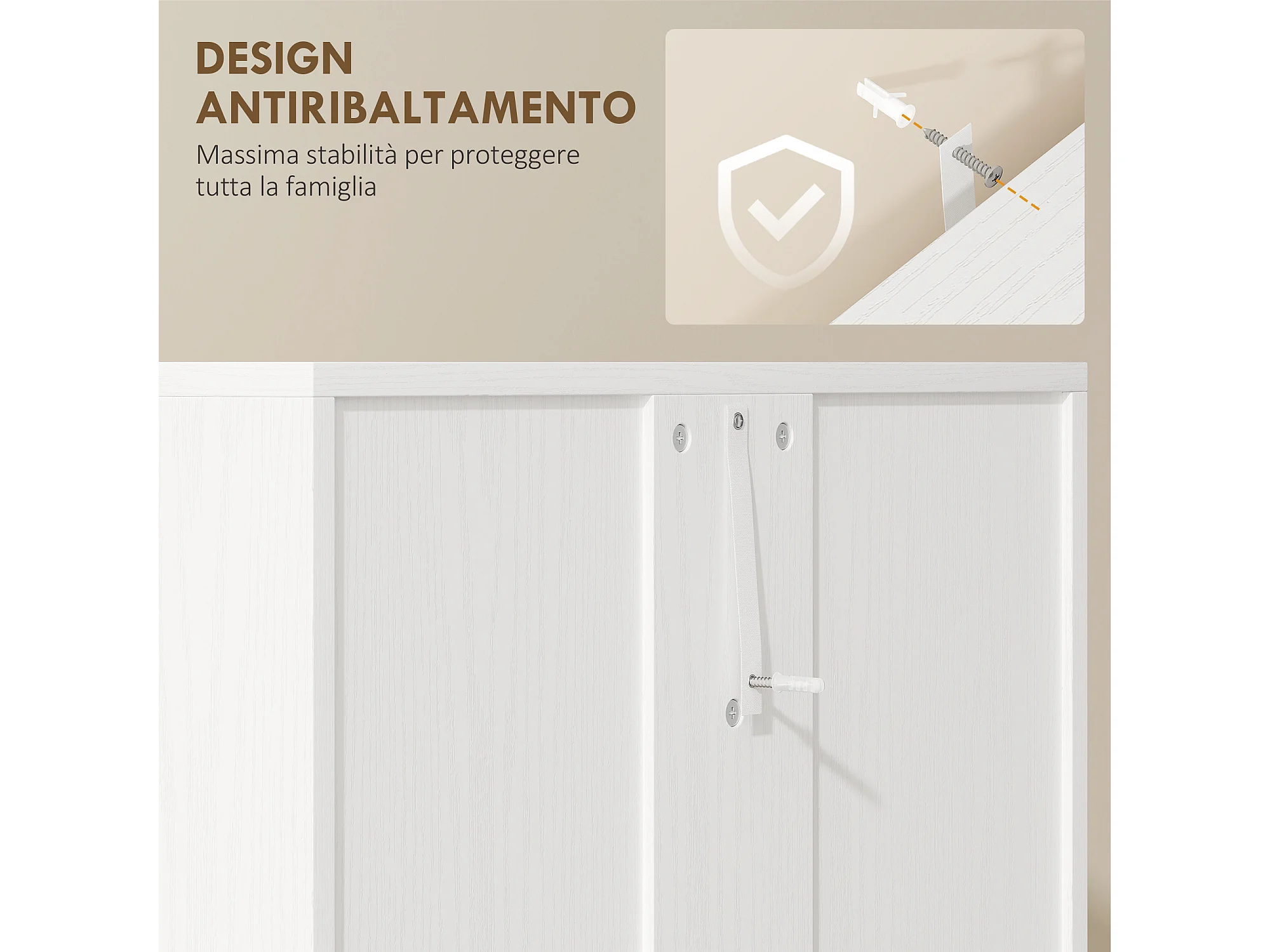 Armadio multiuso con ante battenti 5 ripiani e 3 livelli regolabili