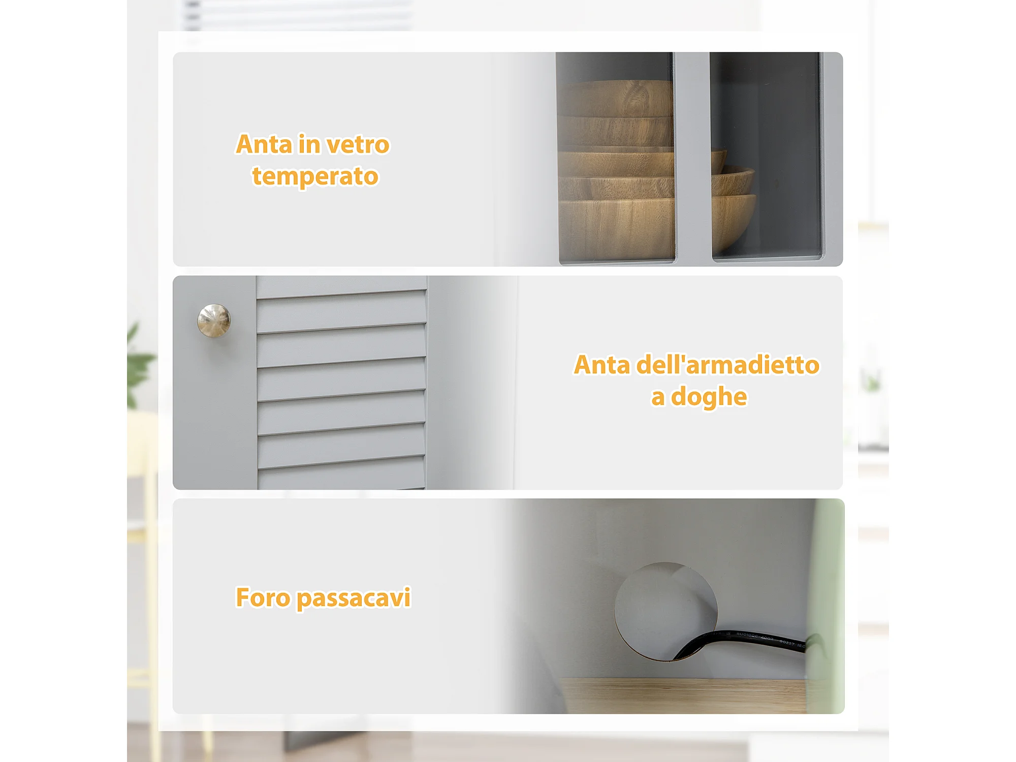 Madia da soggiorno con frontale geometrico a tre ante battenti 181x84 ML10 grigio lucido