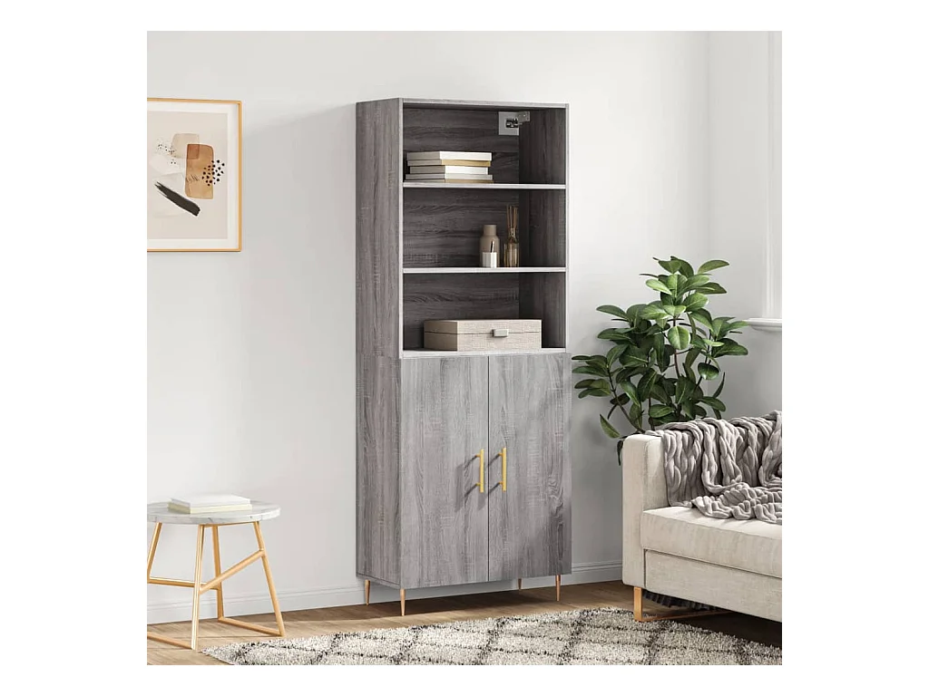 Credenza alta Sonoma grigia 69,5x34x180 cm Legno ingegnerizzato