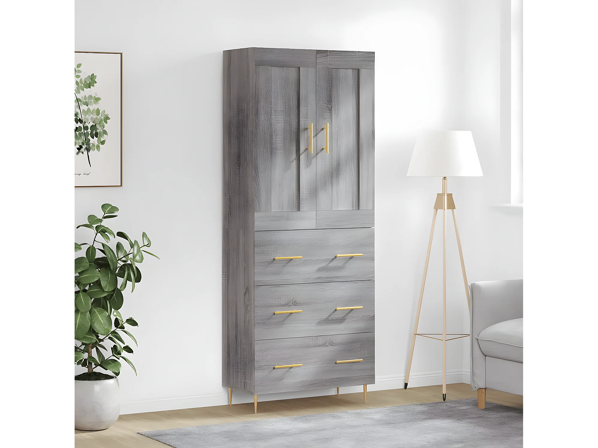 Credenza alta Sonoma grigia 69,5x34x180 cm MDF