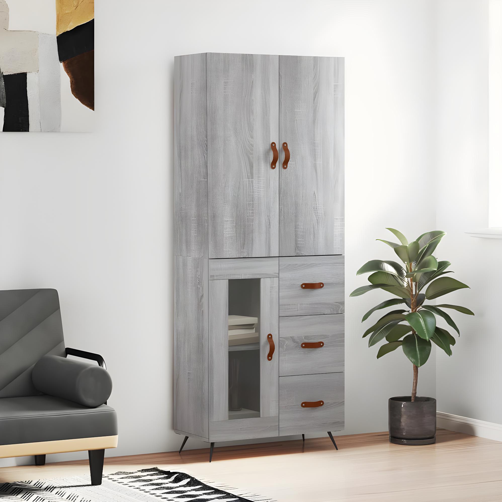 Credenza alta Sonoma grigia 69,5x34x180 cm MDF