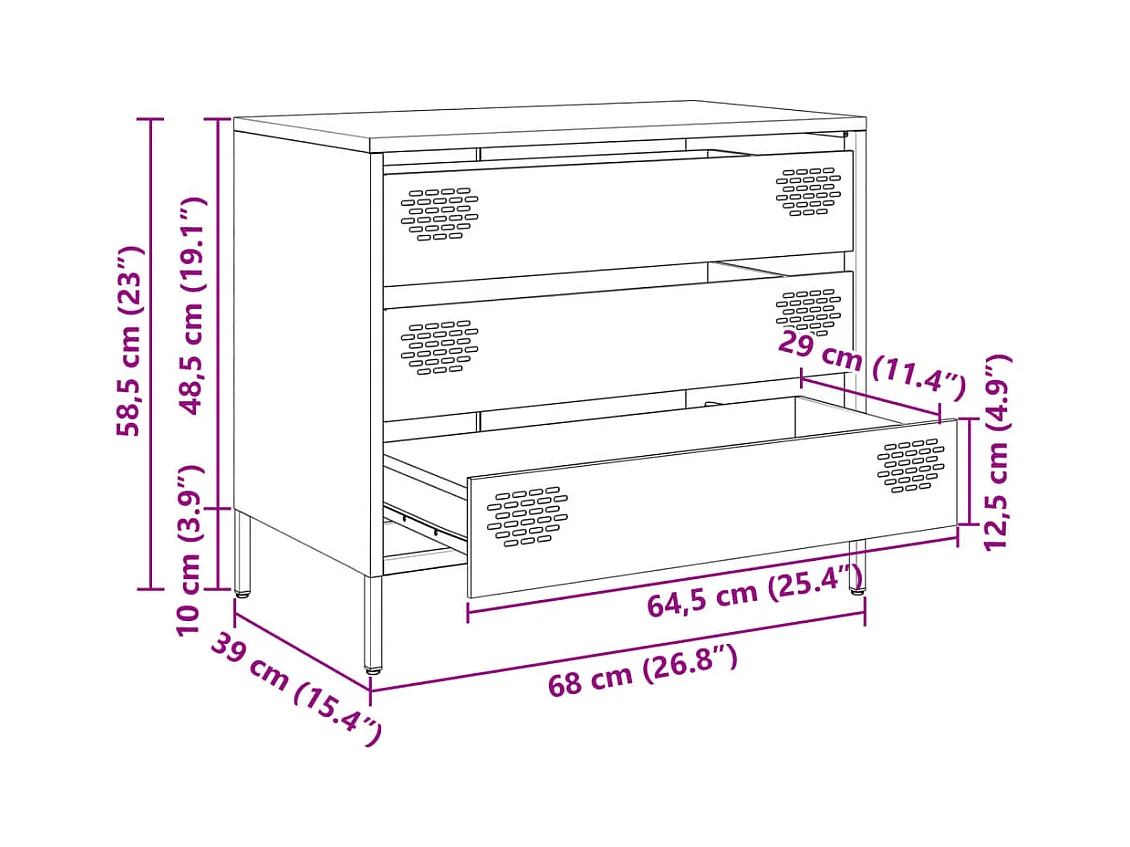 Credenza cassettiera cassettiera mobile contenitore organizer cucina soggiorno soggiorno alto 68 x 39 x 111,5 cm acciaio Rosa 02_0035164