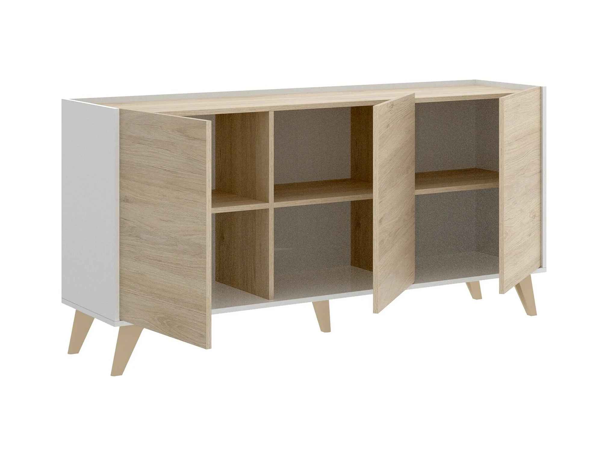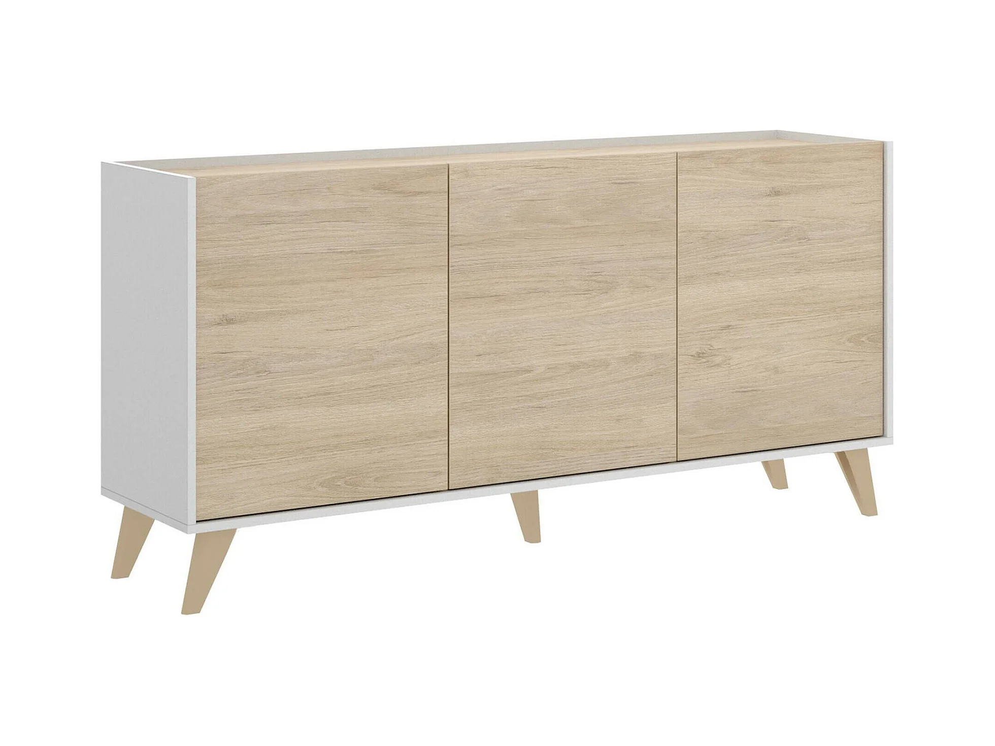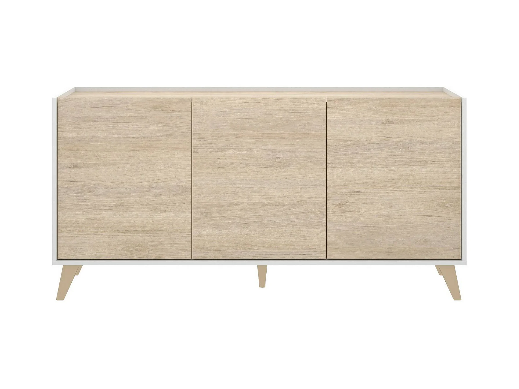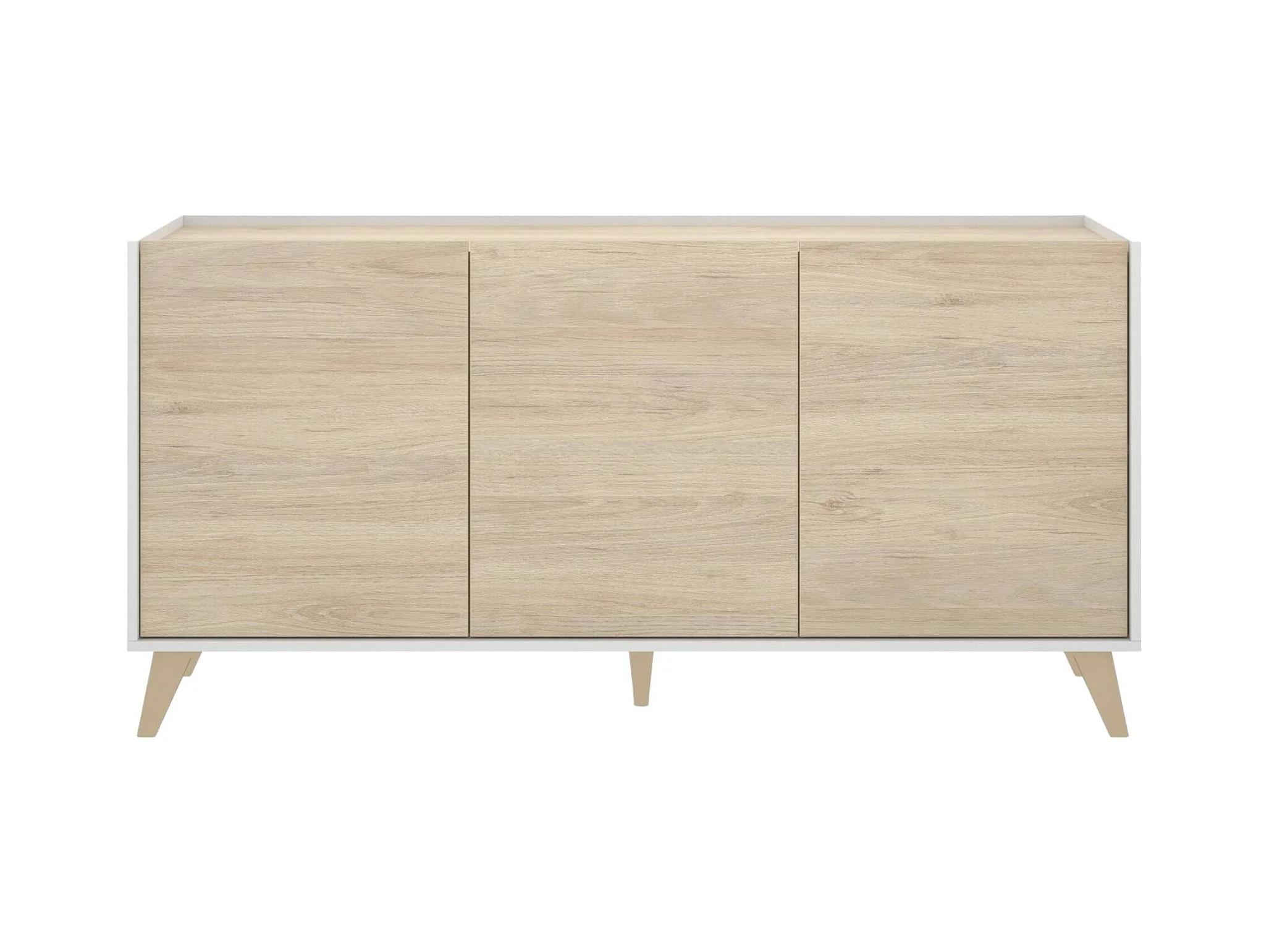 Credenza Avez, Buffet da soggiorno, Madia moderna da salotto a 3 ante, 155x43h75 cm, Rovere e Bianco