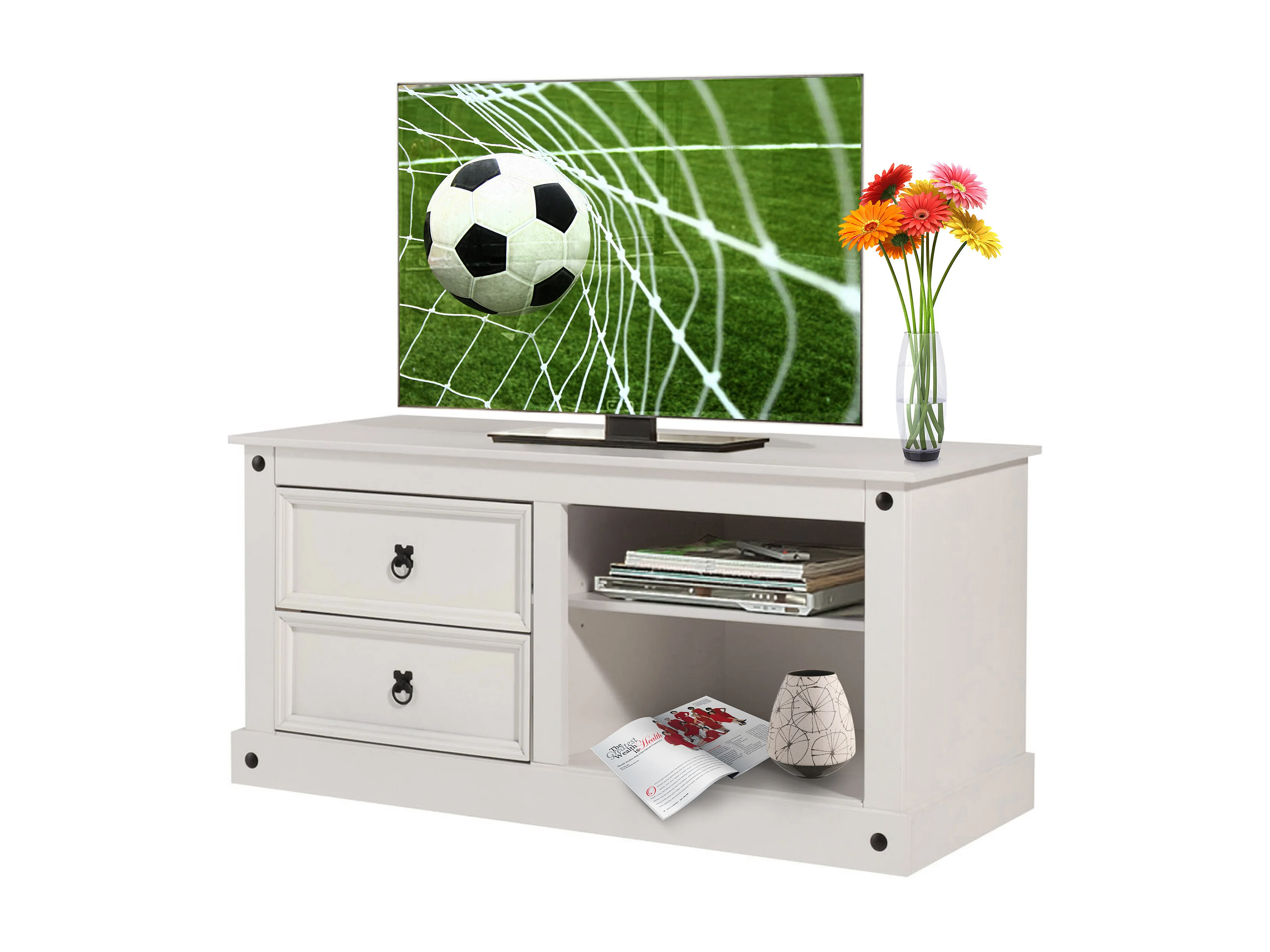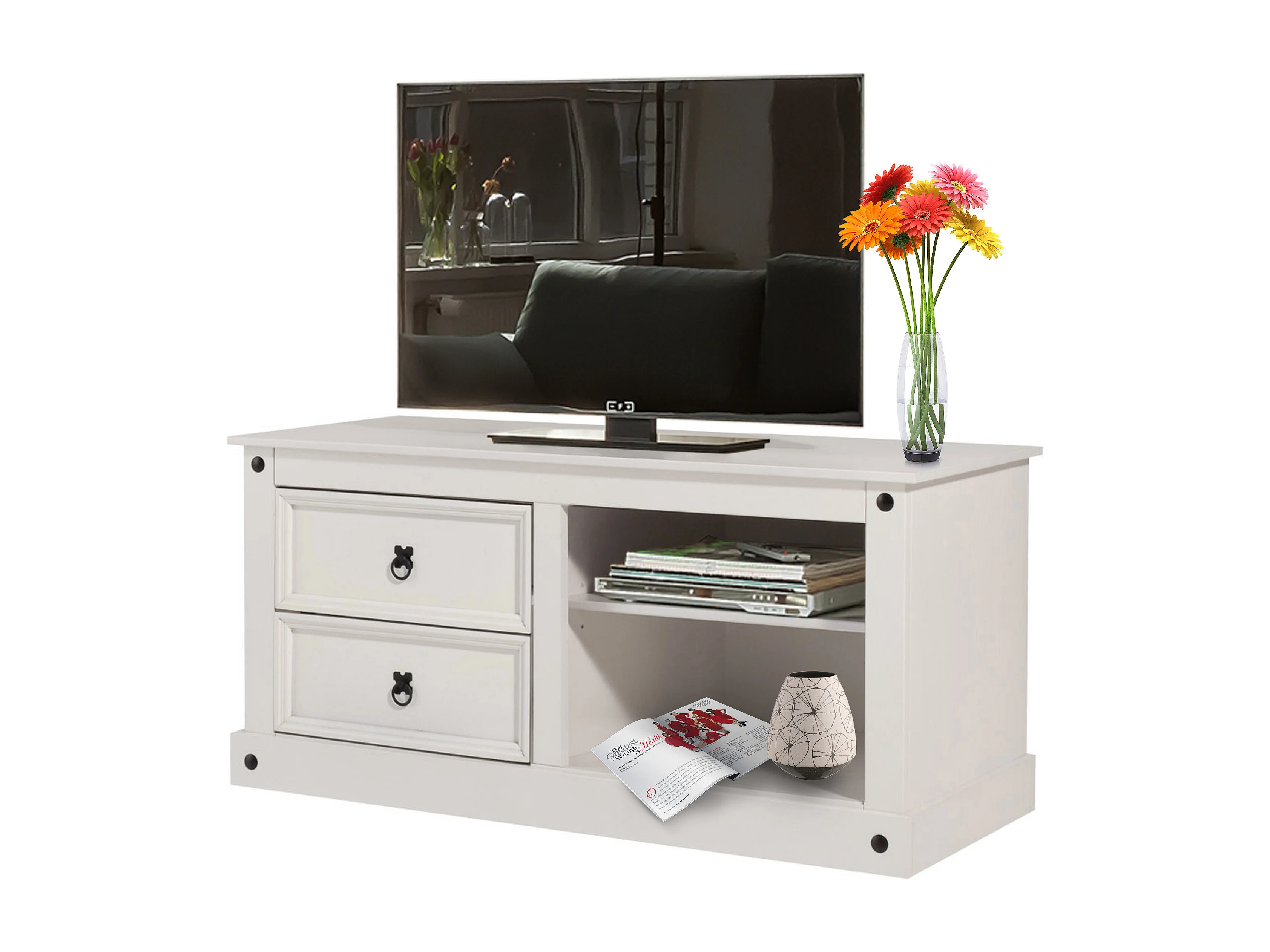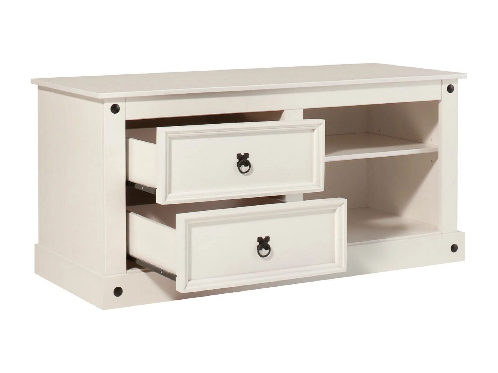 Mexico| Mobiletto con 2 cassetti e 2 vani a giorno in pino bianco