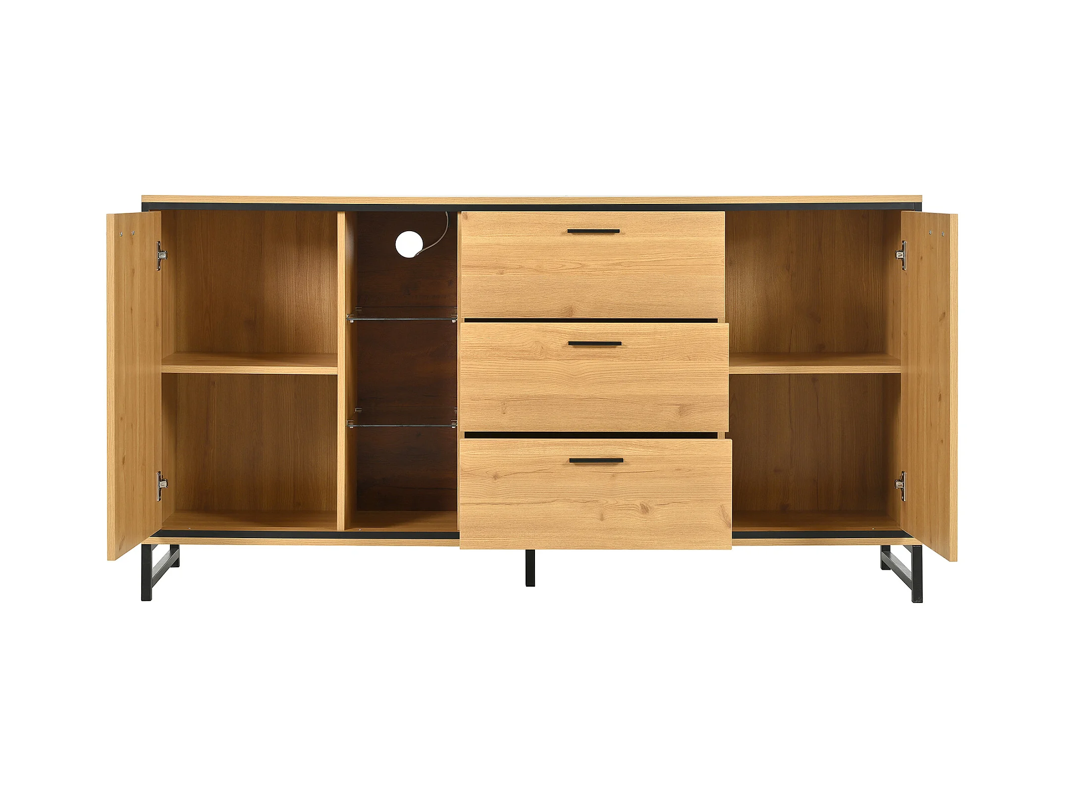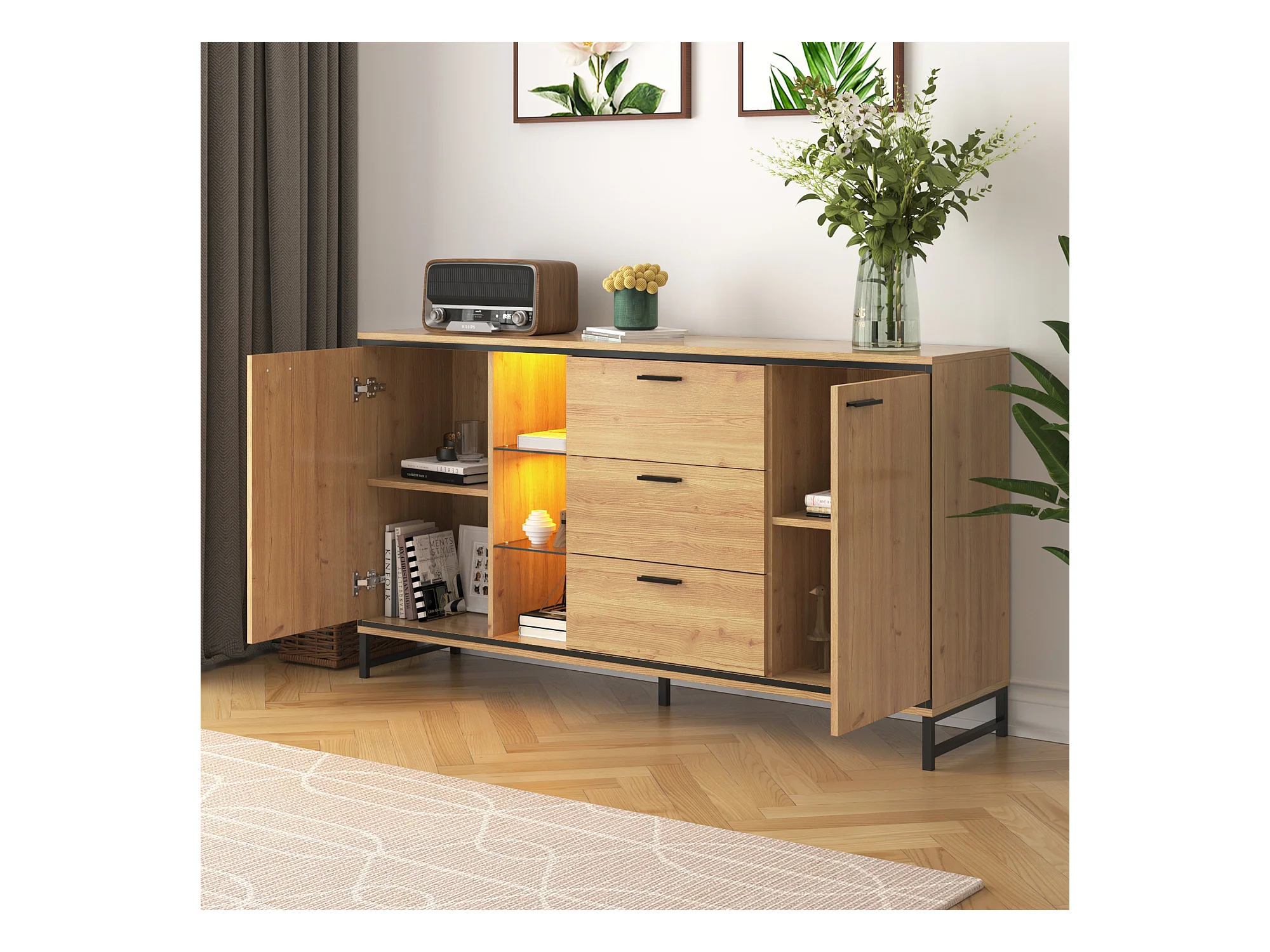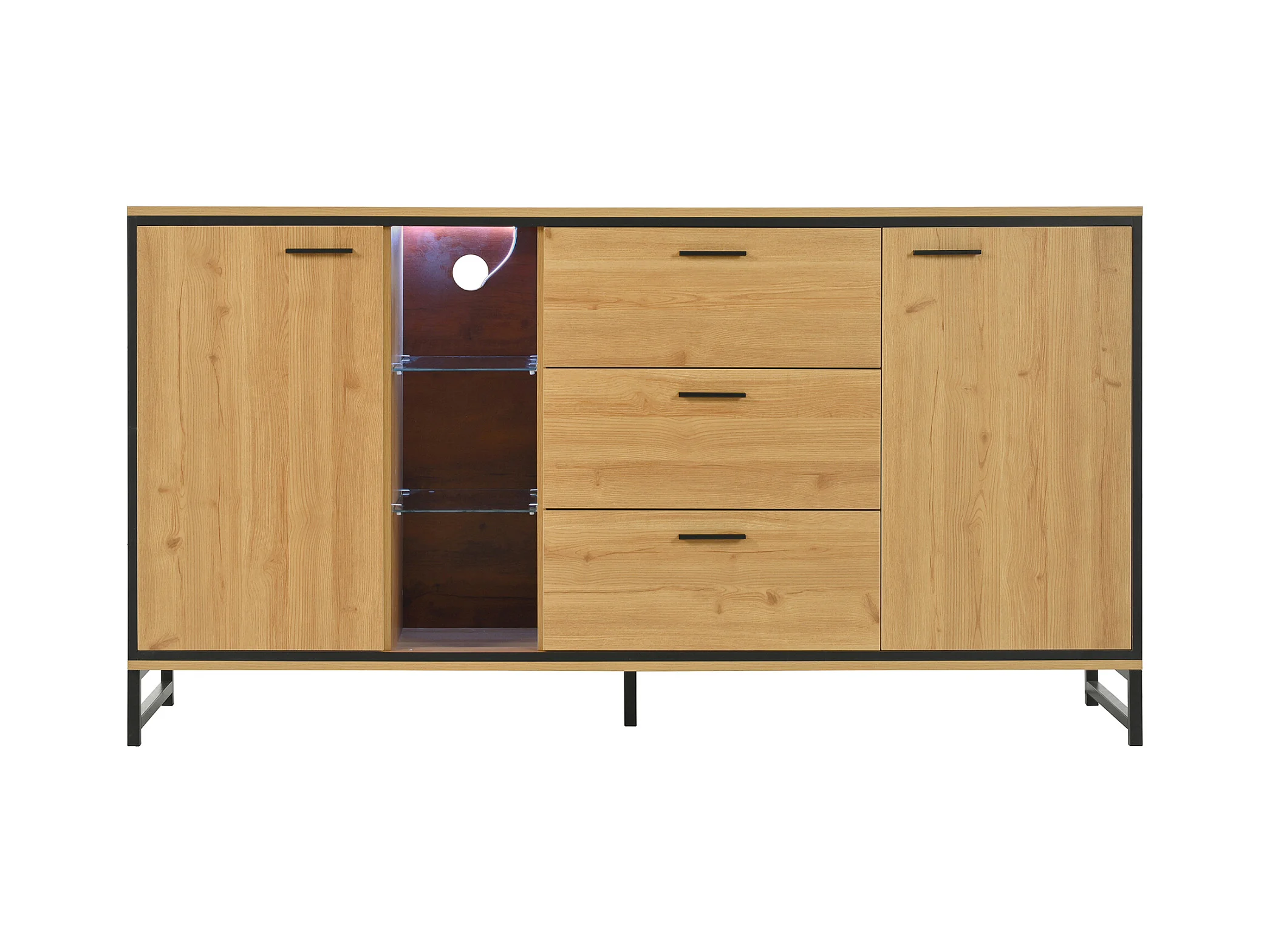 Credenza bassa con LED - 3 cassetti e 2 ante e 3 ripiani - Naturale