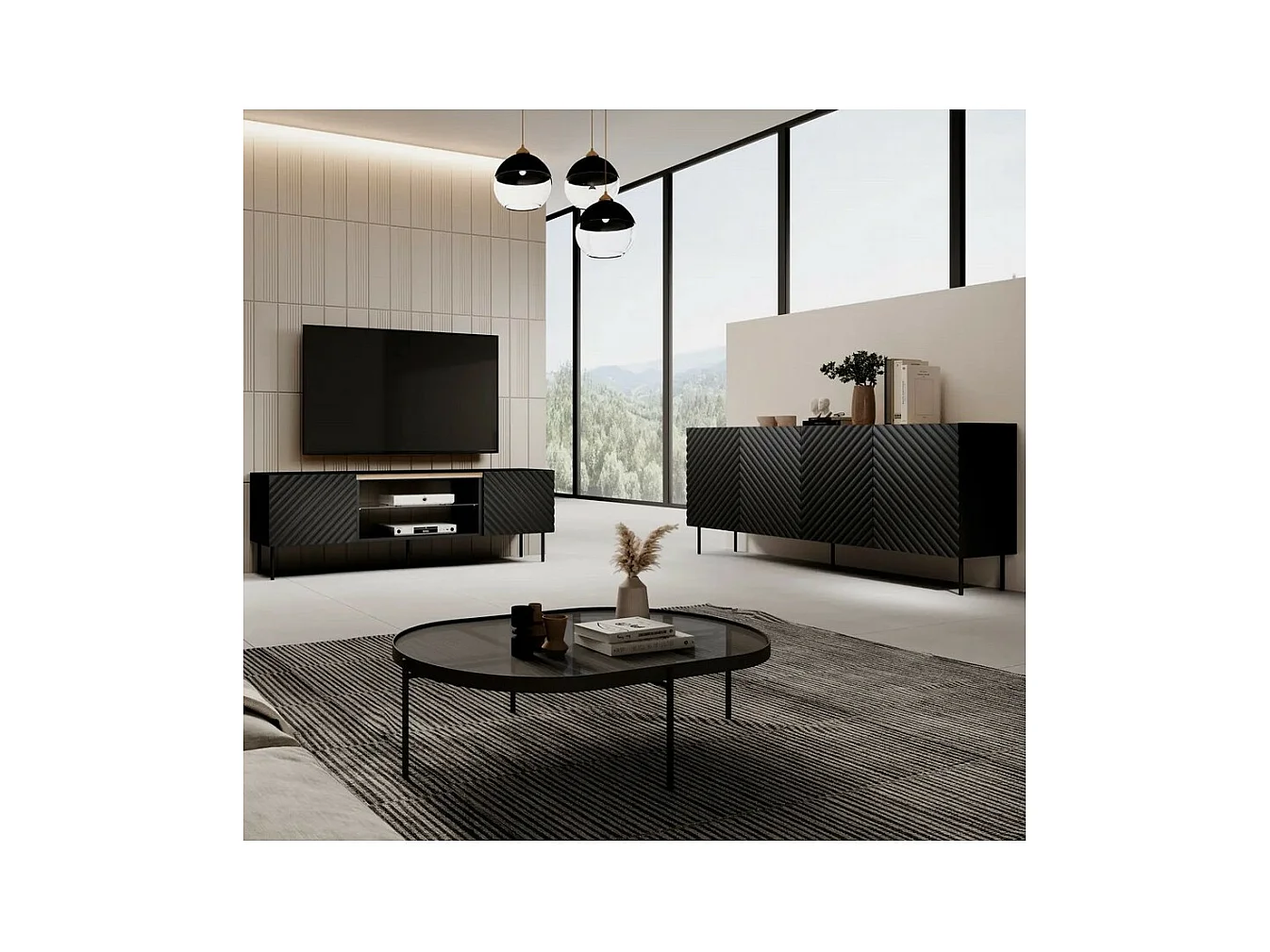 Credenza bassa Emile nero opaco e legno 200 cm