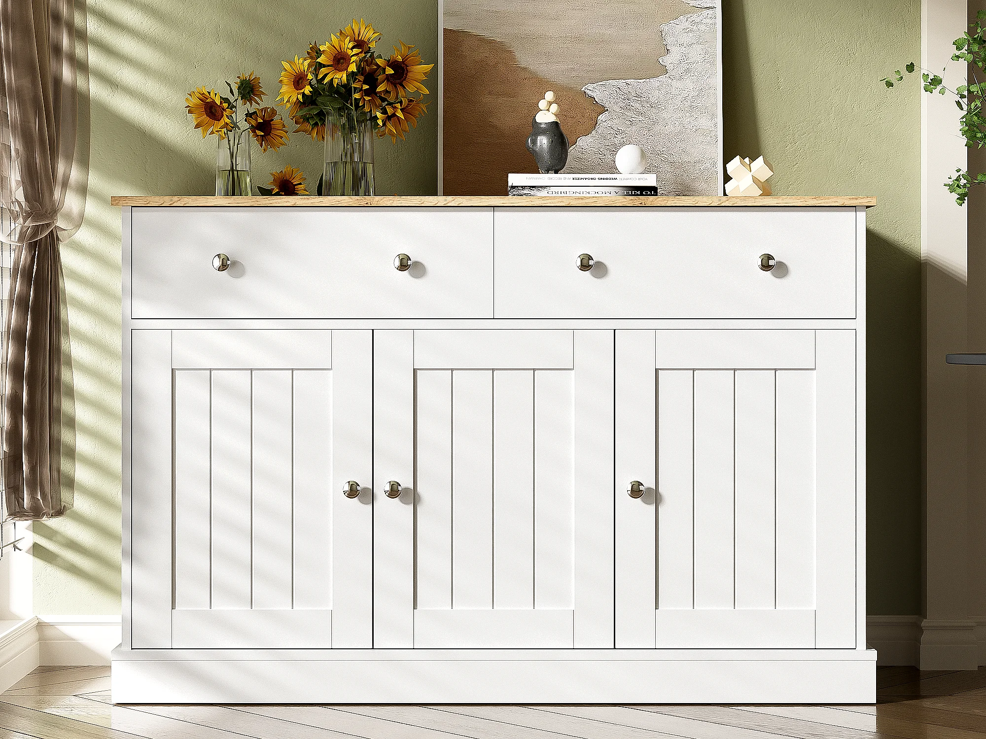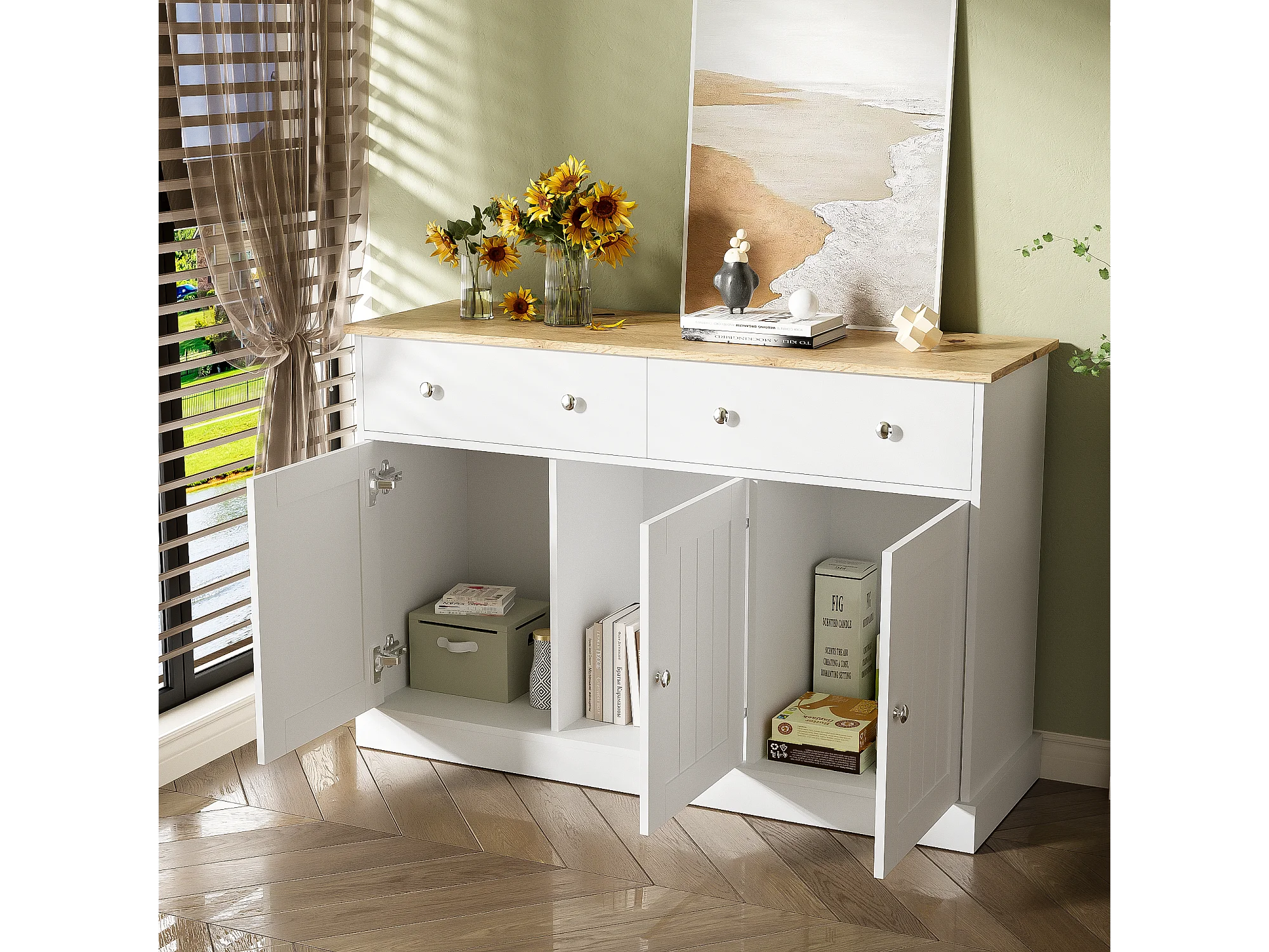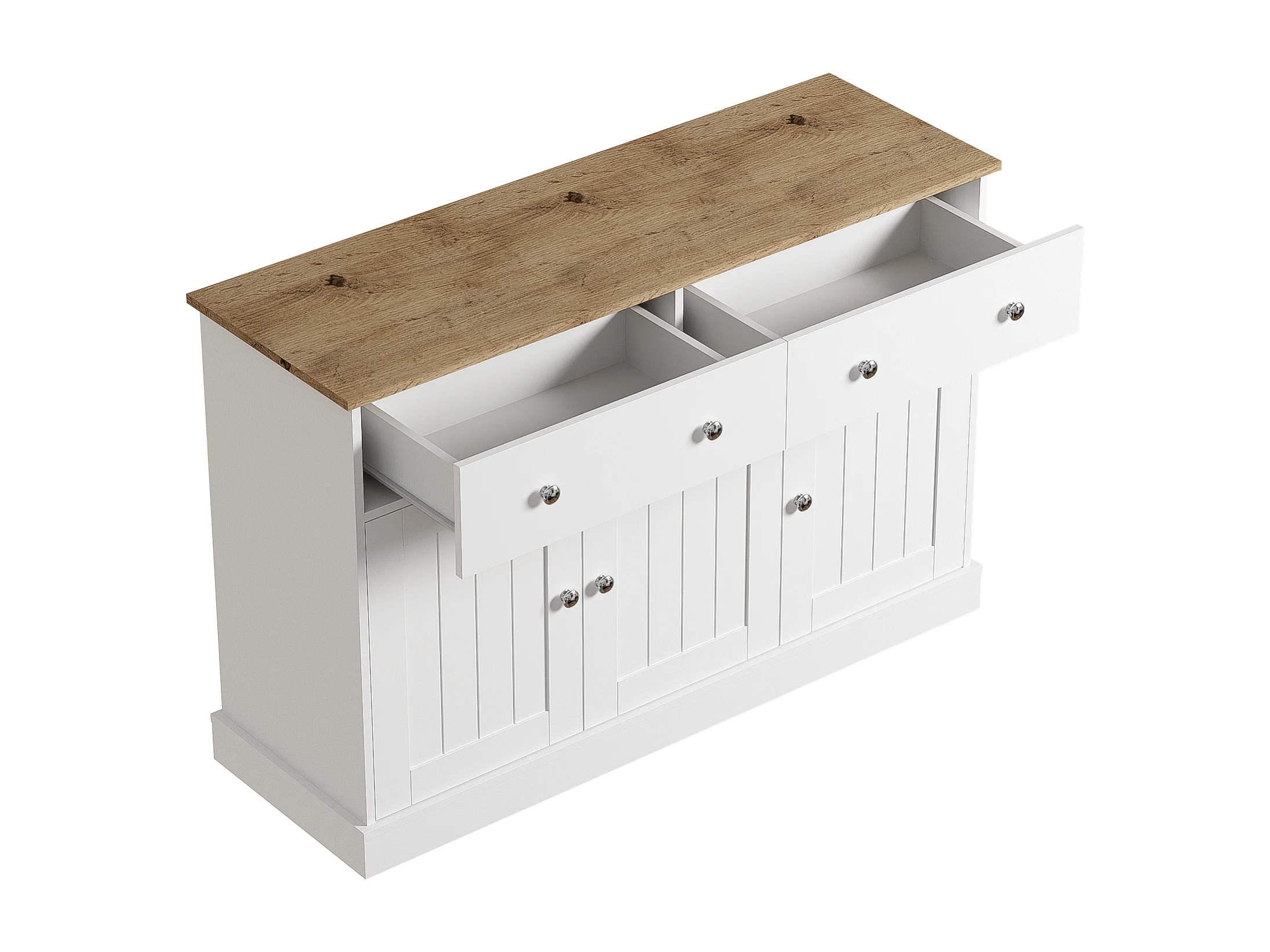 Credenza bassa in truciolare - 3 ante e 2 cassetti - Bianco