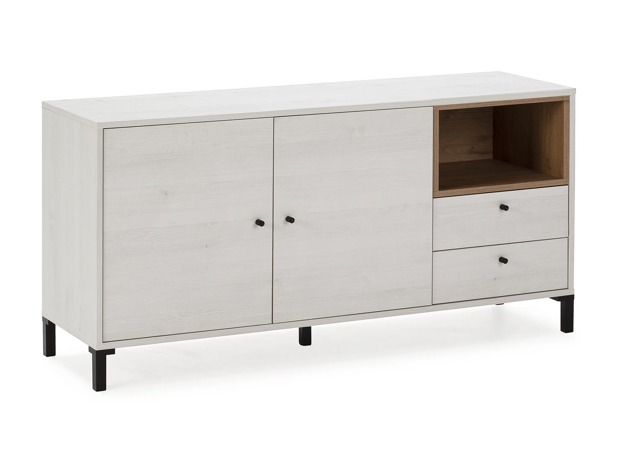 Credenza bassa Javea 2 cassetti, 2 porte e 1 ripiano, bianco/legno, 136,5 cm