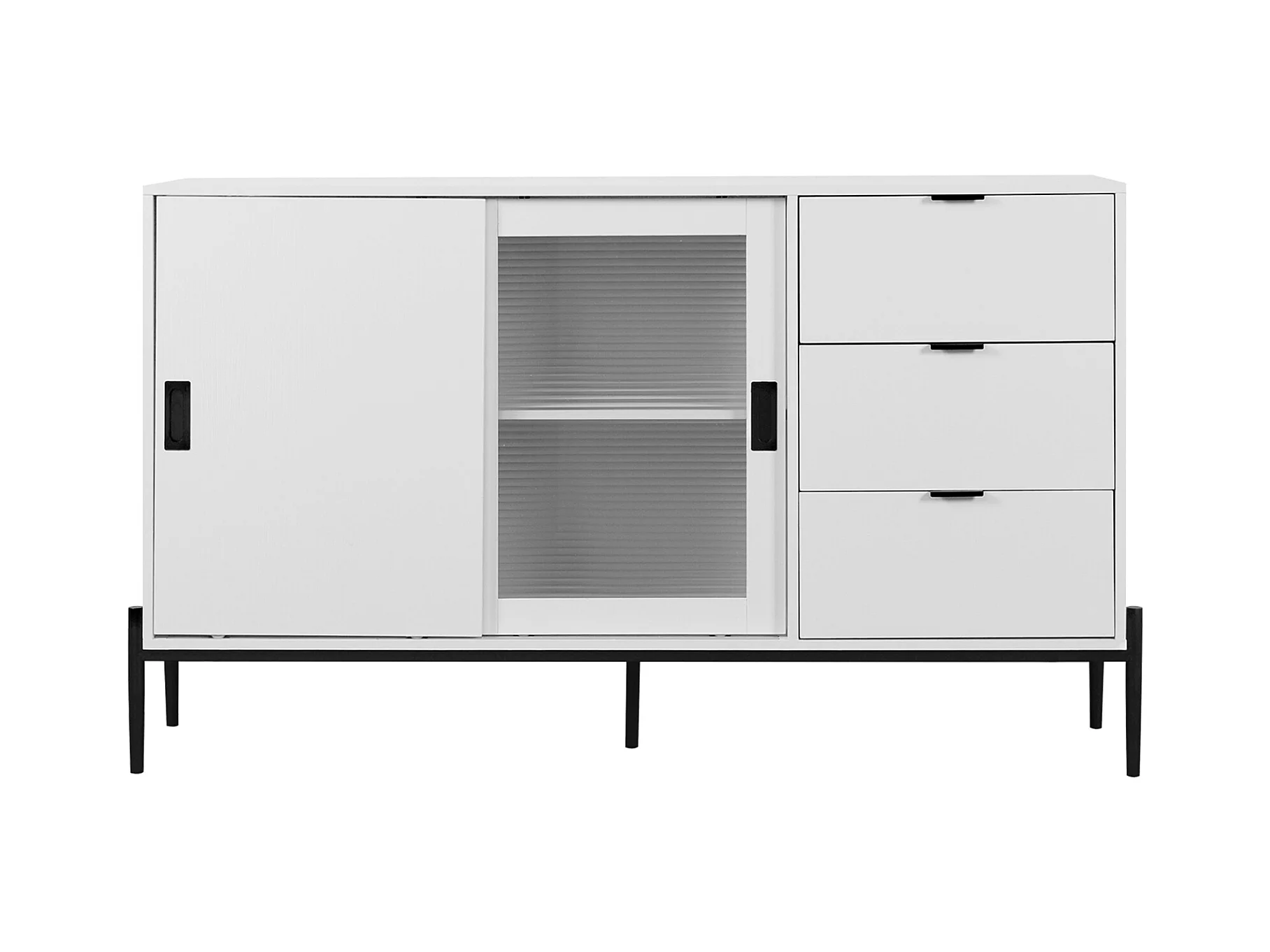 Credenza bianca 155 cm - Credenza con 3 cassetti e 2 ante scorrevoli - vetro rigato - per cucina e soggiorno