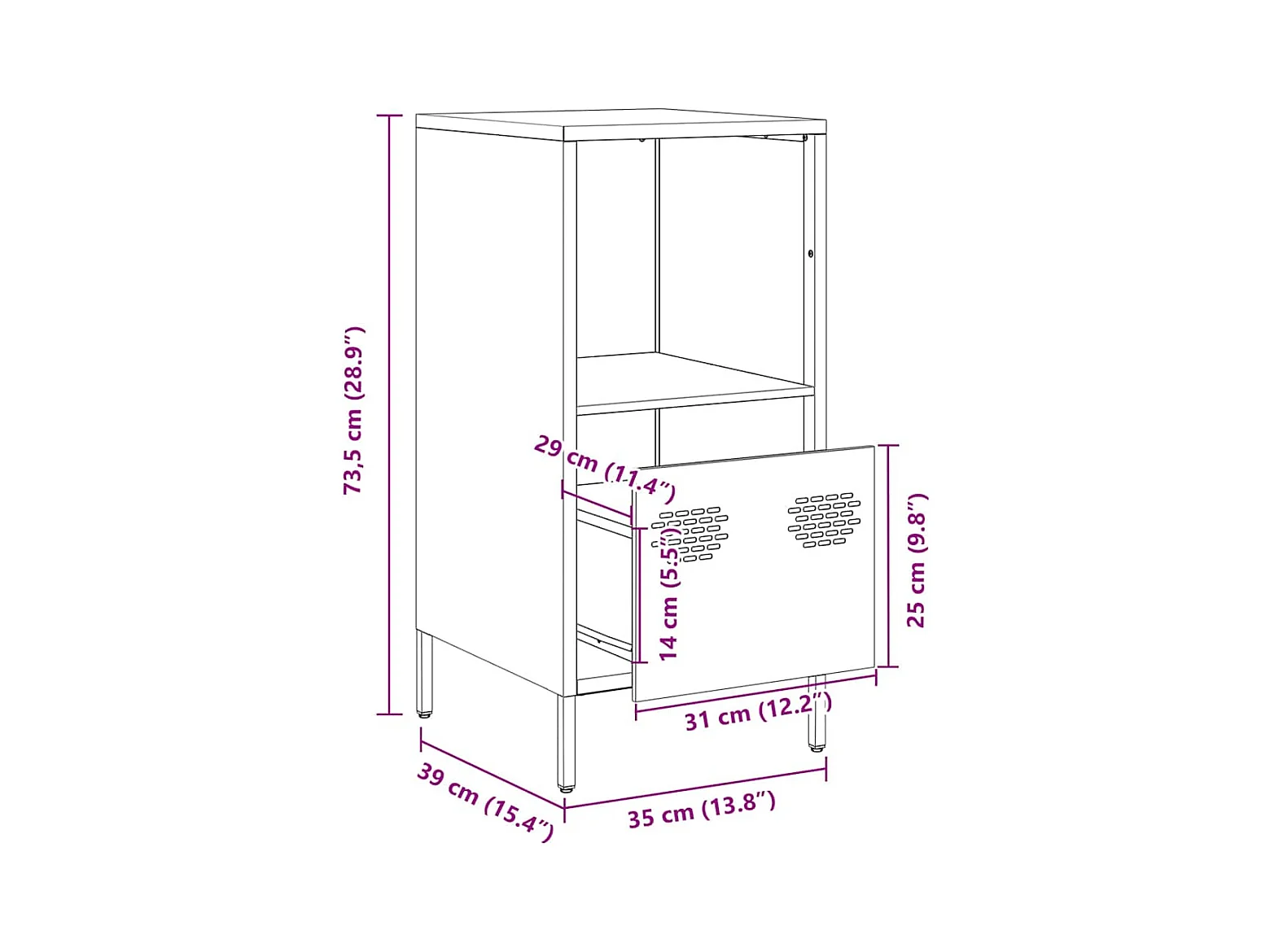 Credenza Bianca 35x39x73,5 cm in Acciaio Laminato a Freddo
