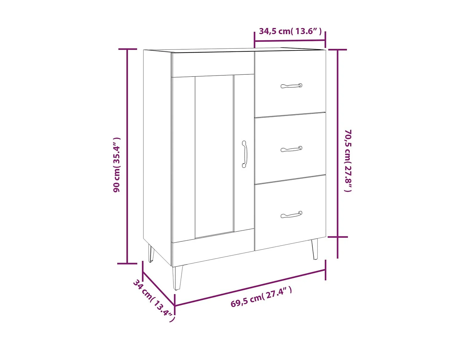 Credenza Bianco lucido 69,5x34x90 cm Legno composito