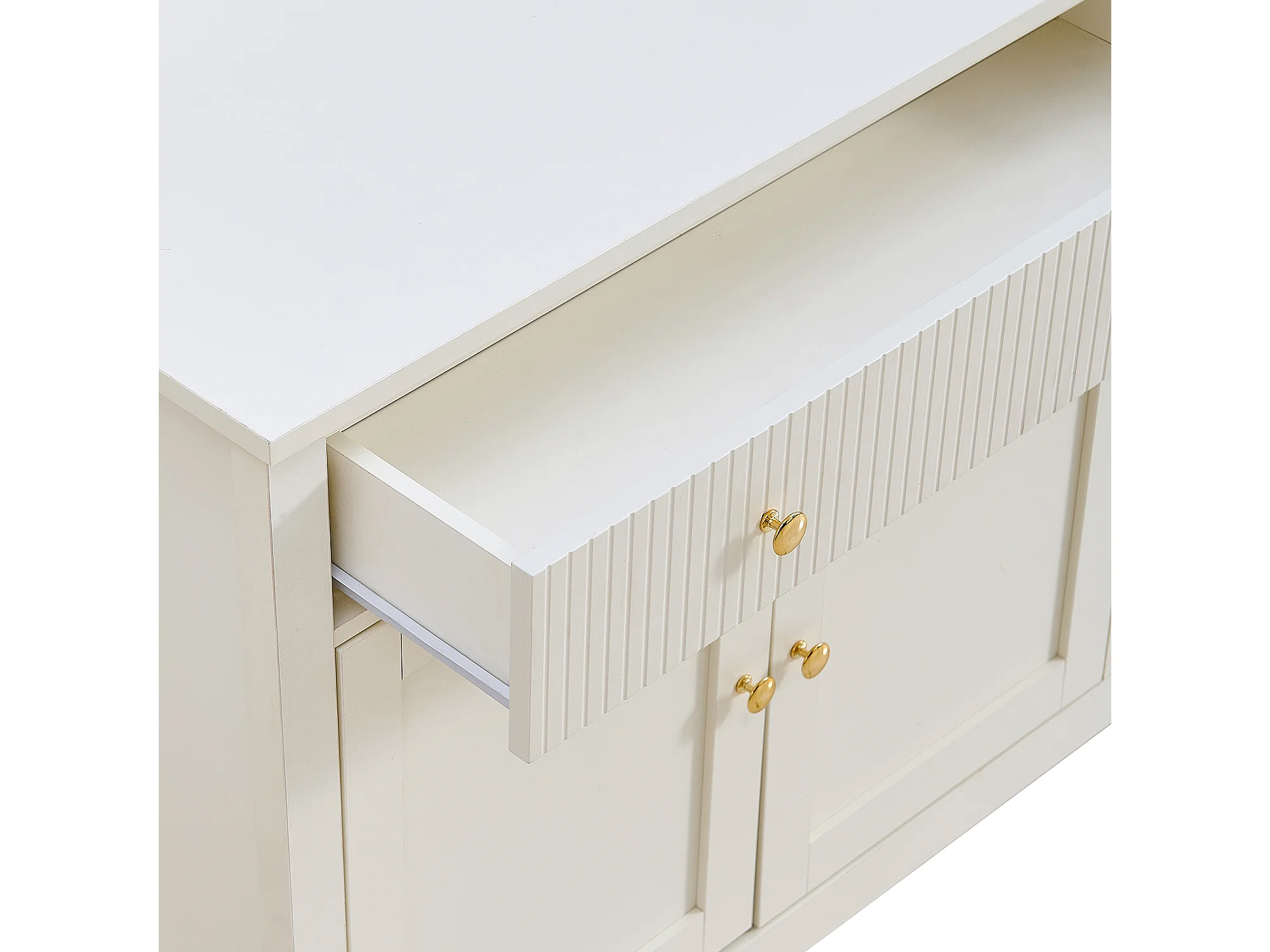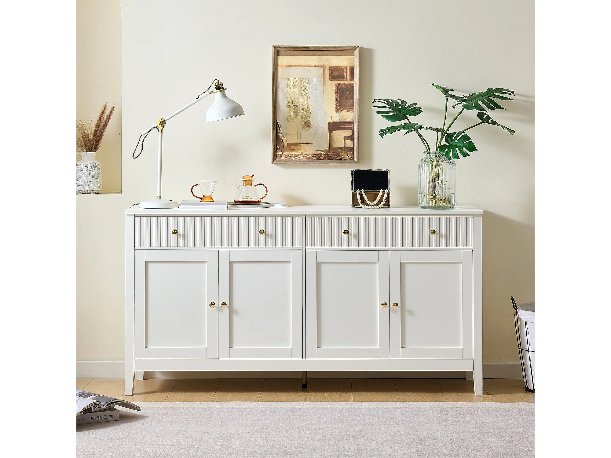 Buffet bianco con 4 ante, maniglie e piedi dorati – per soggiorno e sala da pranzo