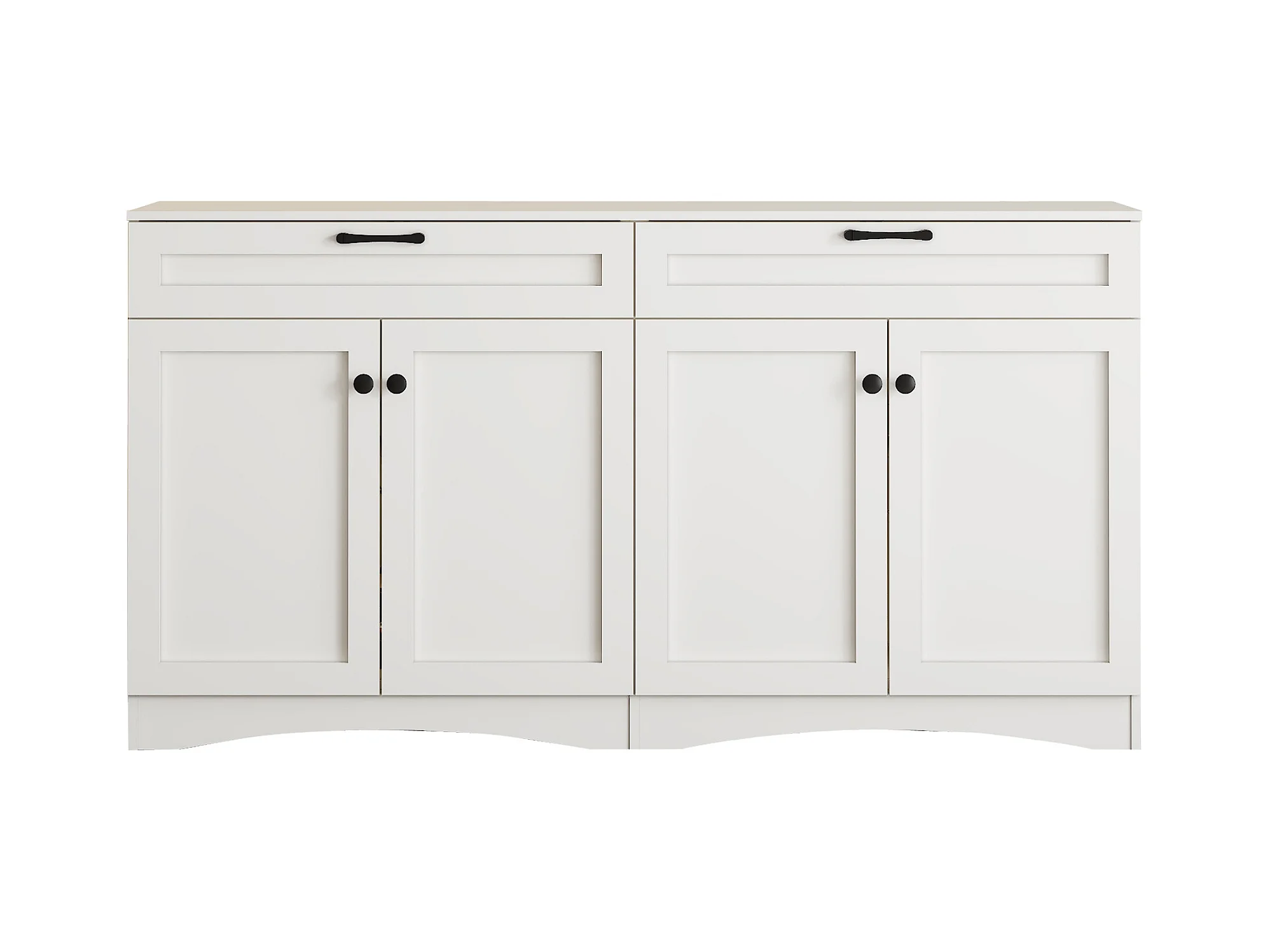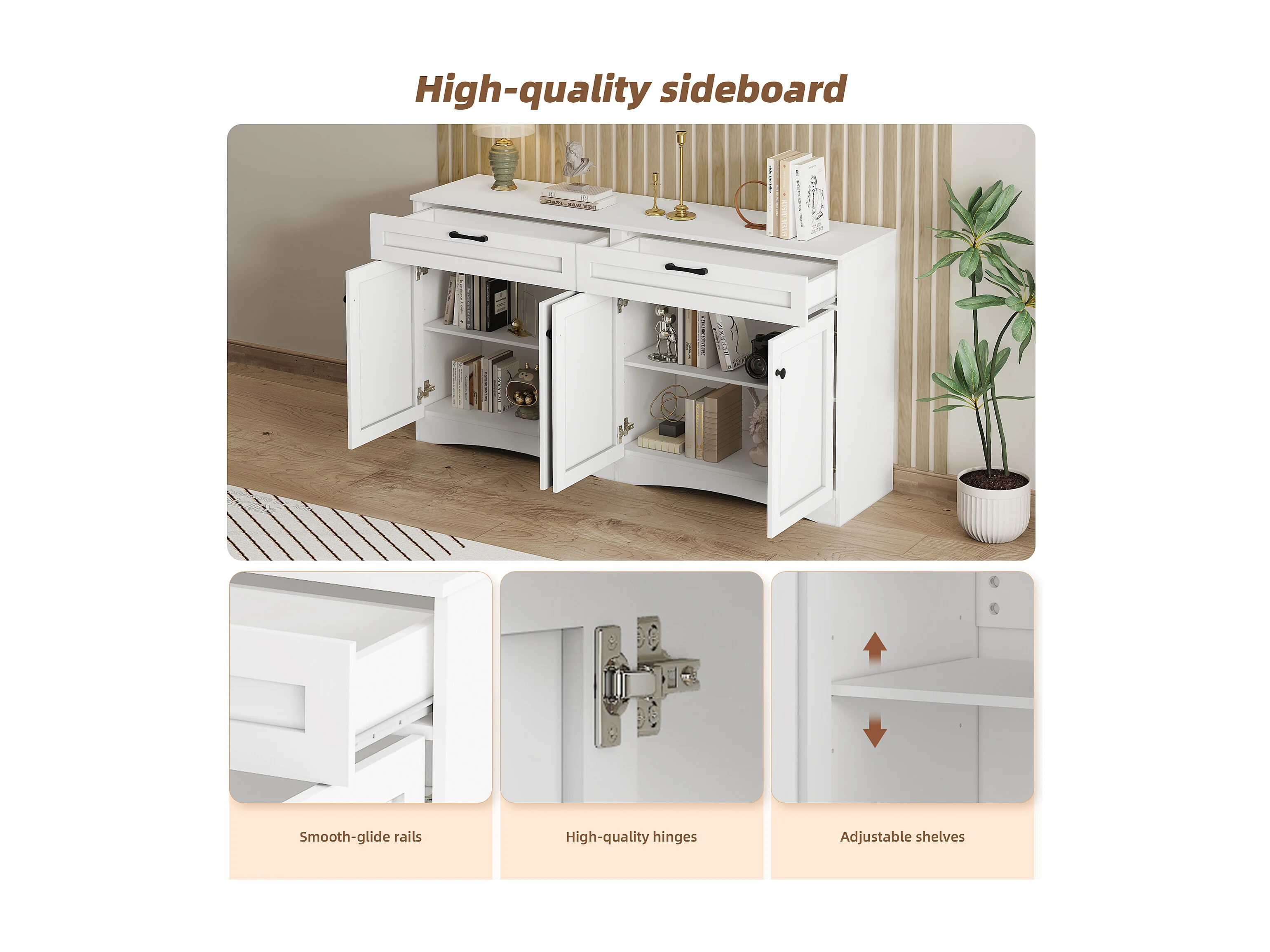 Credenza bianca con 2 cassetti e 4 ante, ampio spazio di archiviazione, stile semplice
