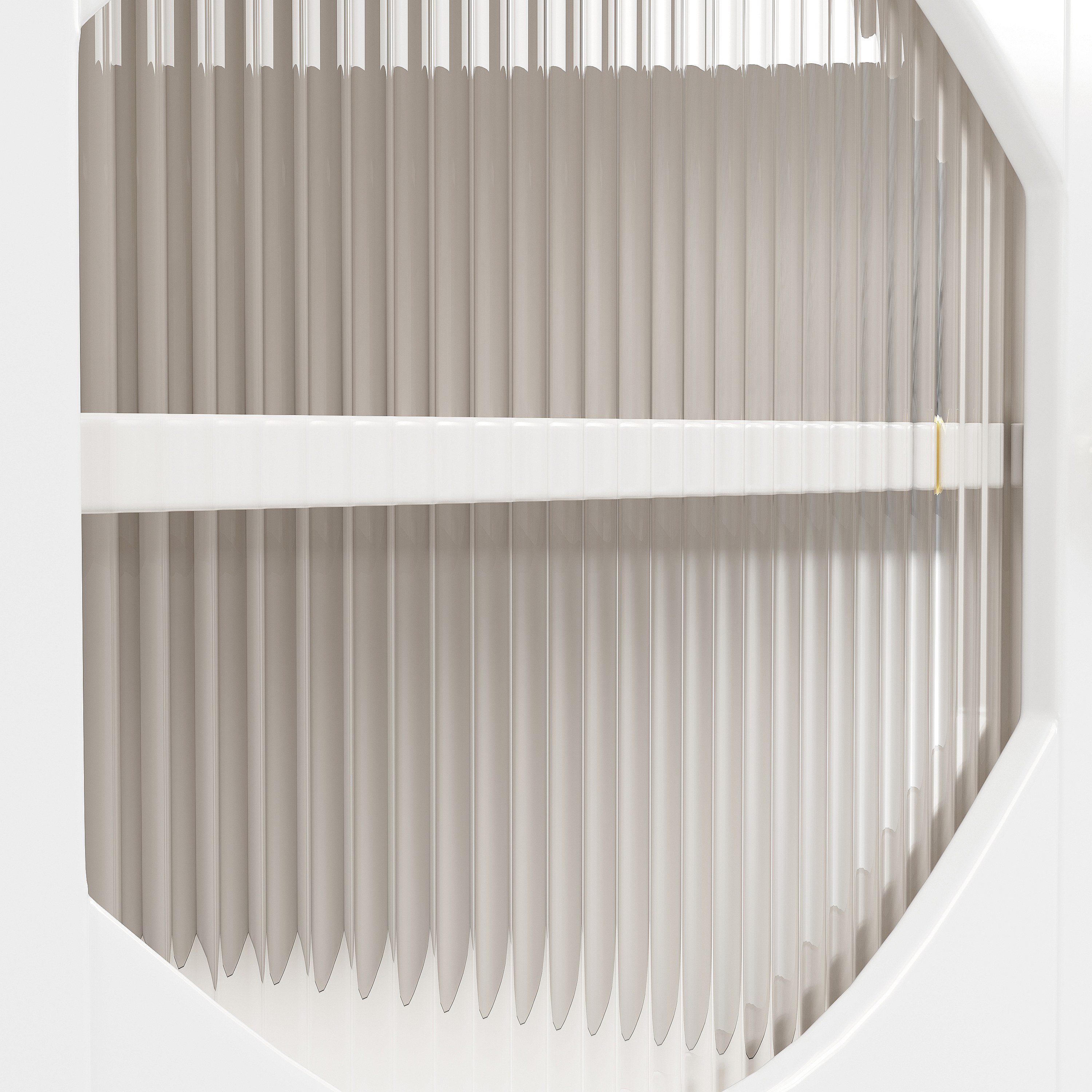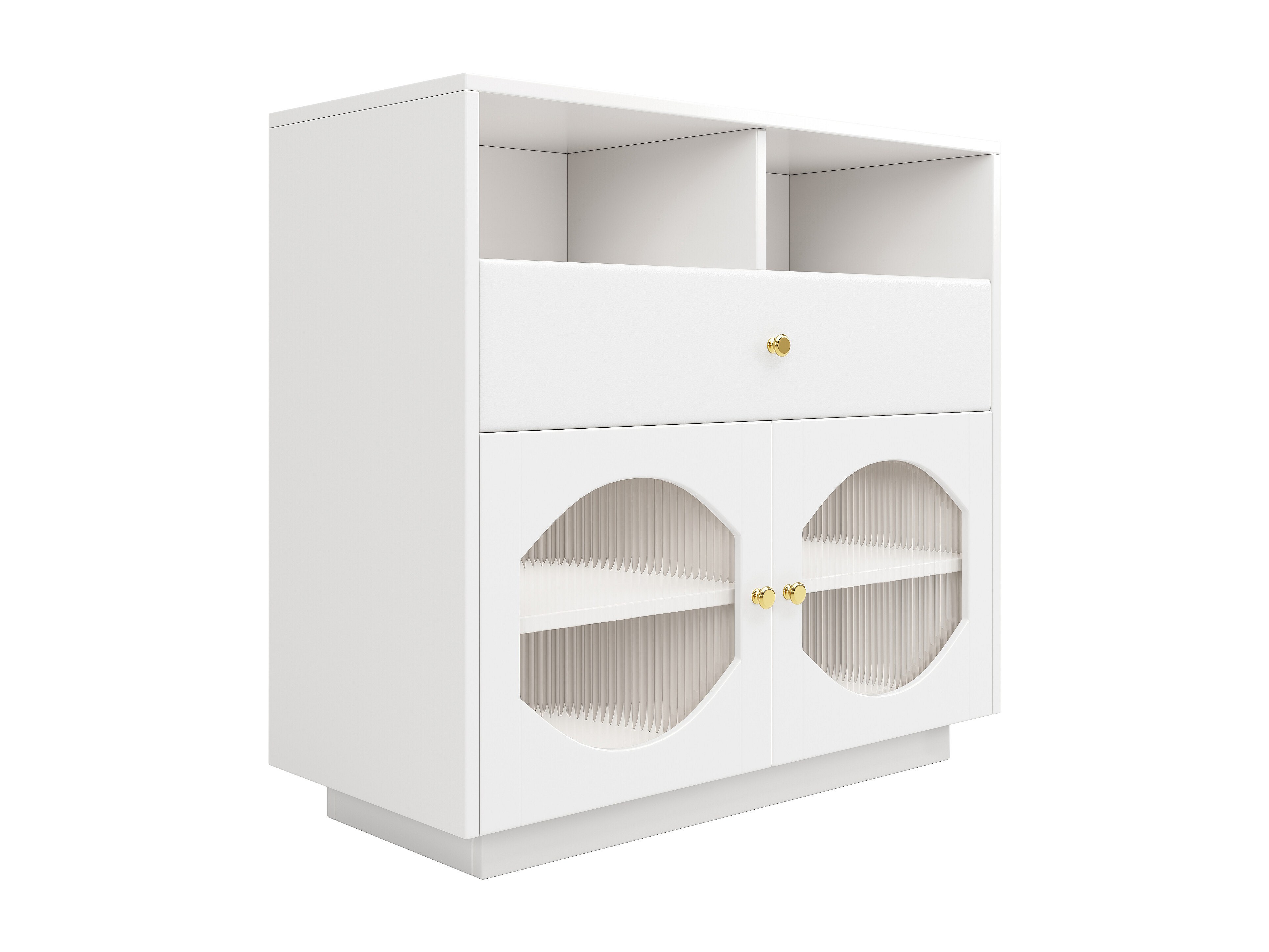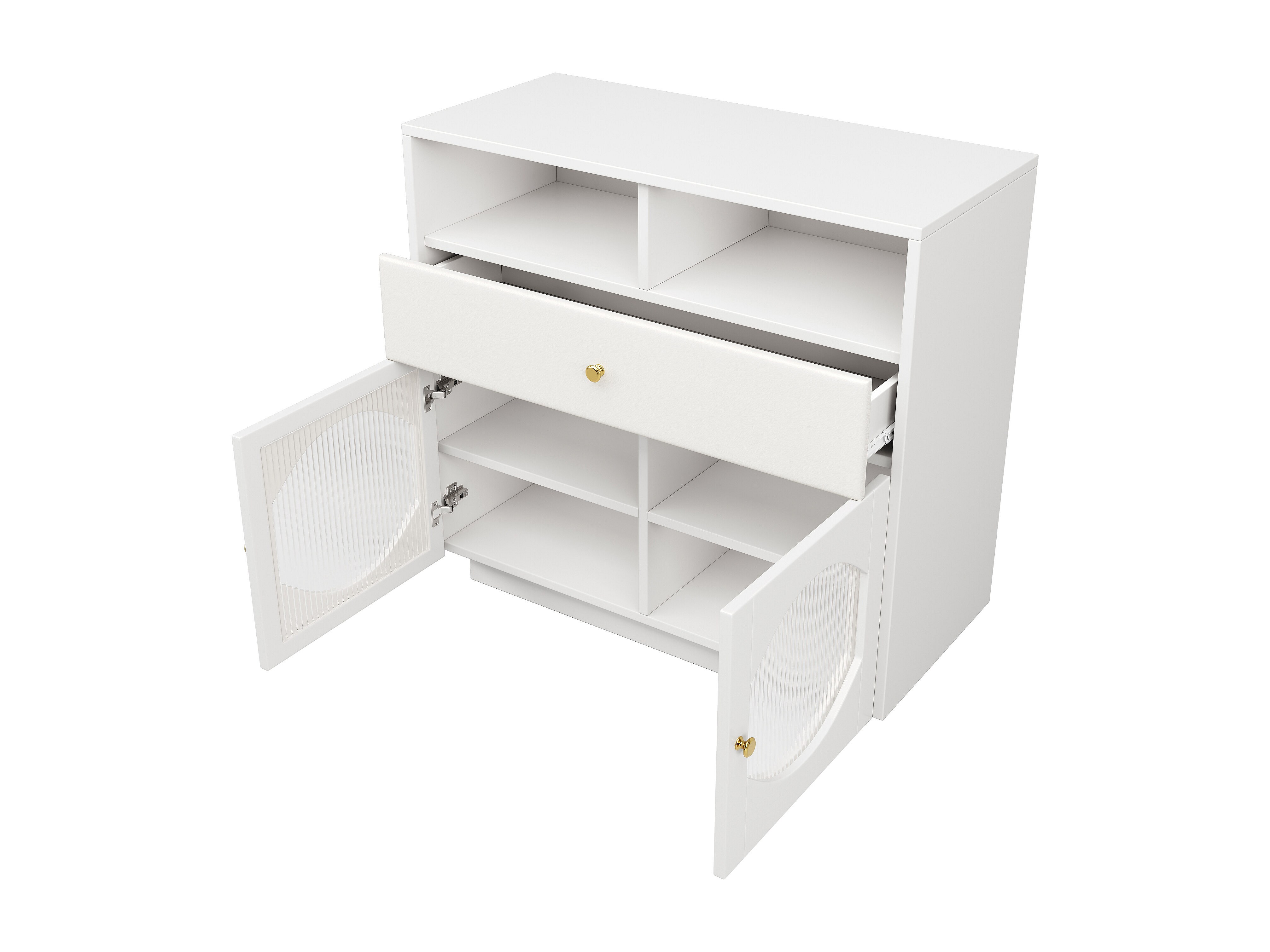 Credenza bianca - Credenza con 1 cassetto e 2 ante in vetro - 2 vani portaoggetti aperti