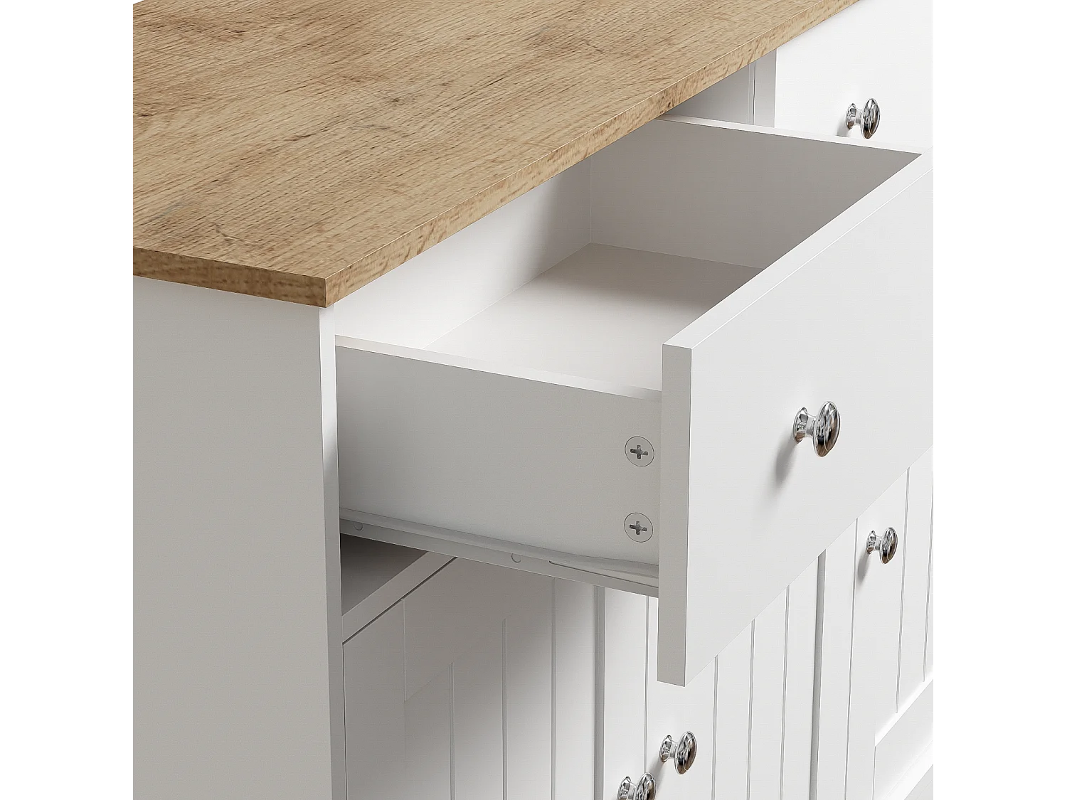 Credenza bianca - Credenza moderna con 3 ante e 2 cassetti - Piano in venature del legno - per soggiorno e sala da pranzo