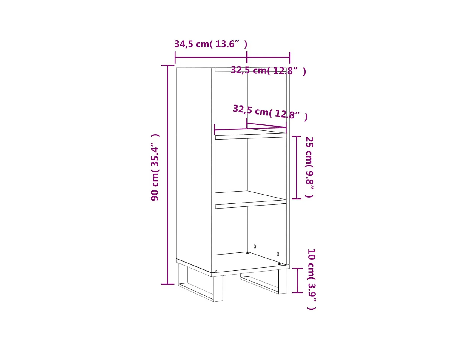 Credenza Bianco Lucido 34,5x32,5x90 cm in Legno Multistrato