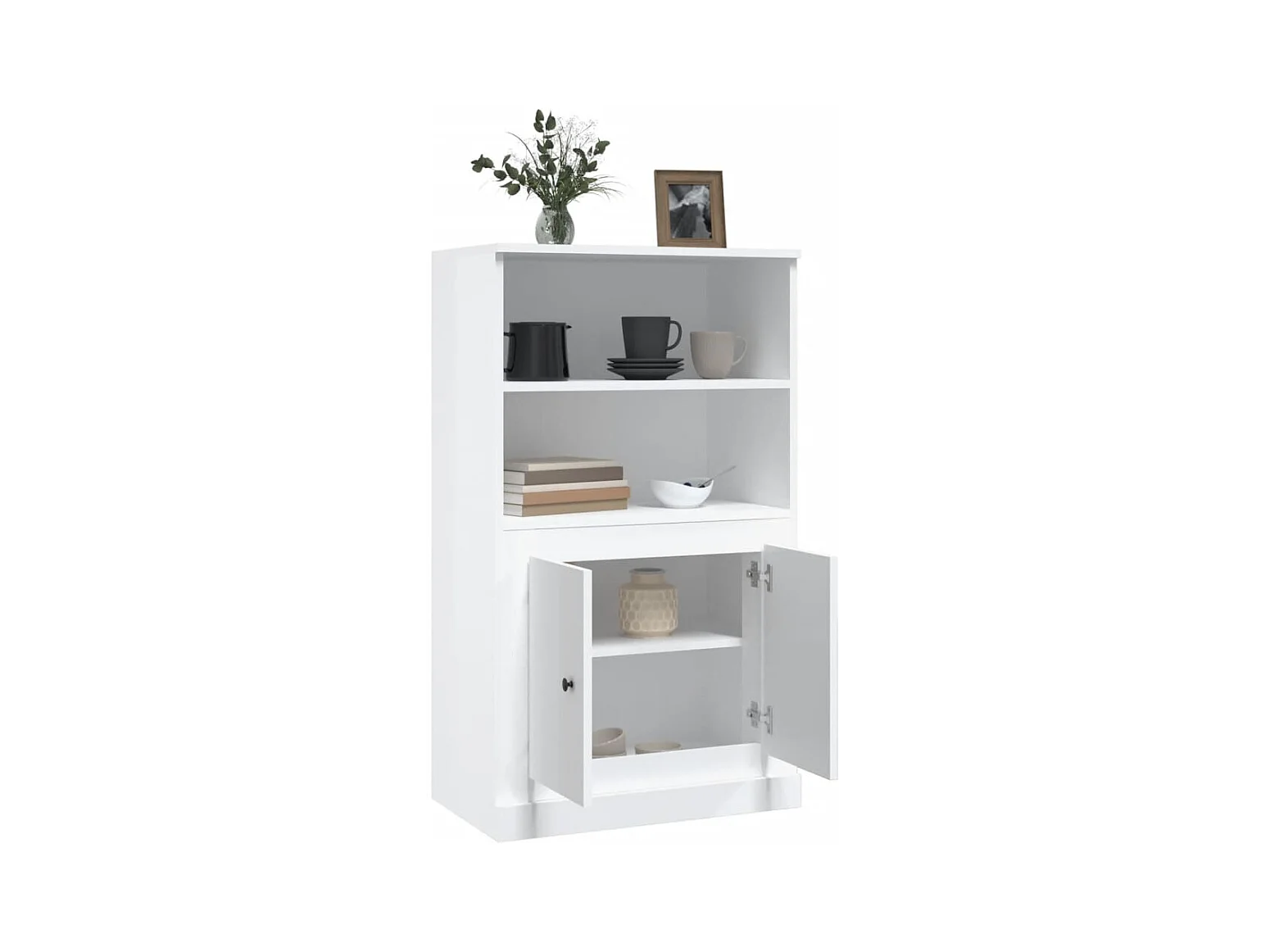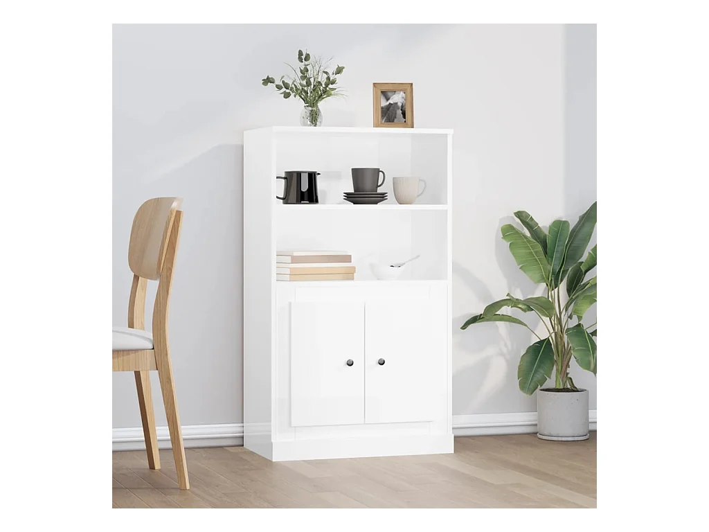 Credenza Bianco Lucido 60x35,5x103,5 cm in Legno Multistrato