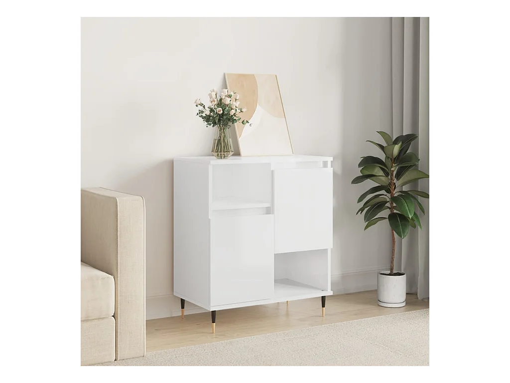 Credenza Bianco Lucido 60x35x70 cm in Legno Multistrato