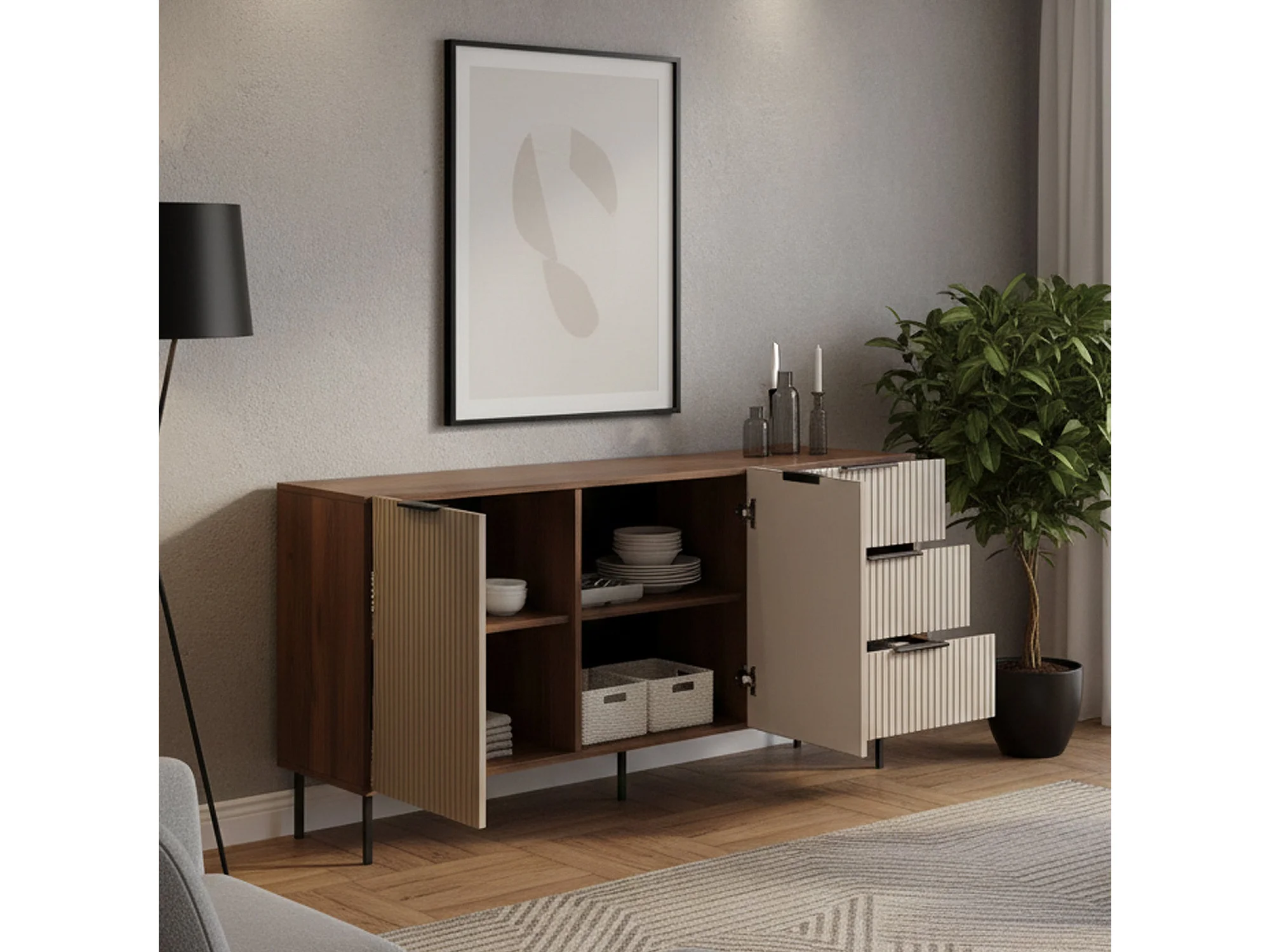 Credenza Braganza, 2 Ripiani, 42x156x75h cm Marrone Noce, Madia