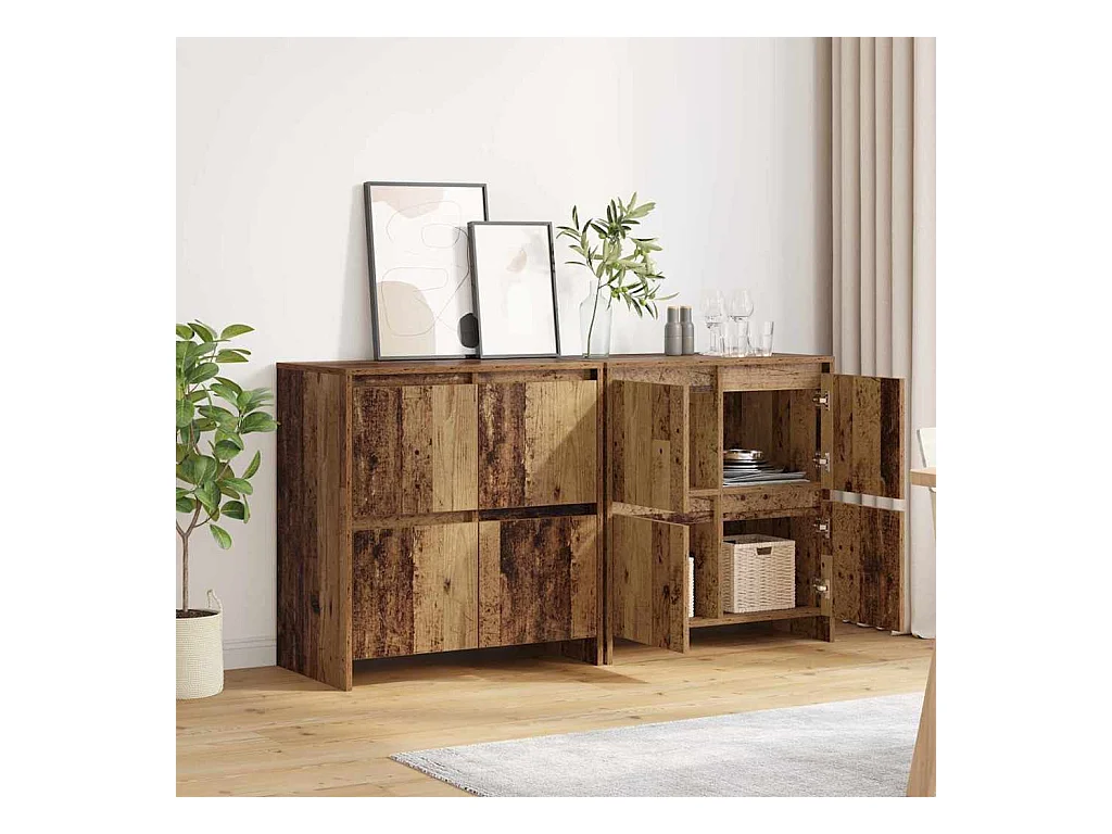 Credenza | Buffet | Armadio 3 pz Legno Antico in Legno Multistrato