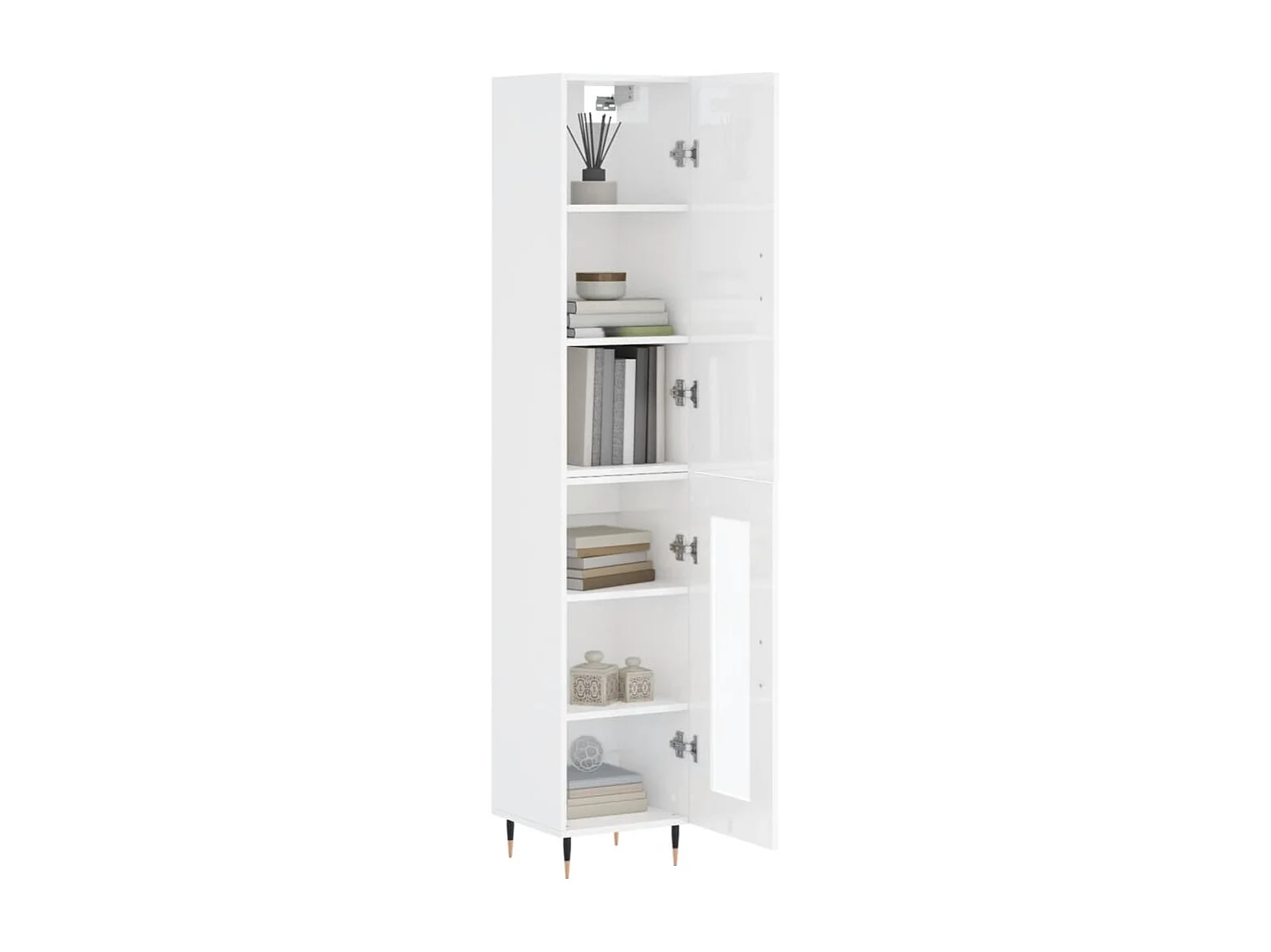 Credenza | Buffet | Armadio 34,5x34x180 cm in Legno Multistrato Bianco Lucido