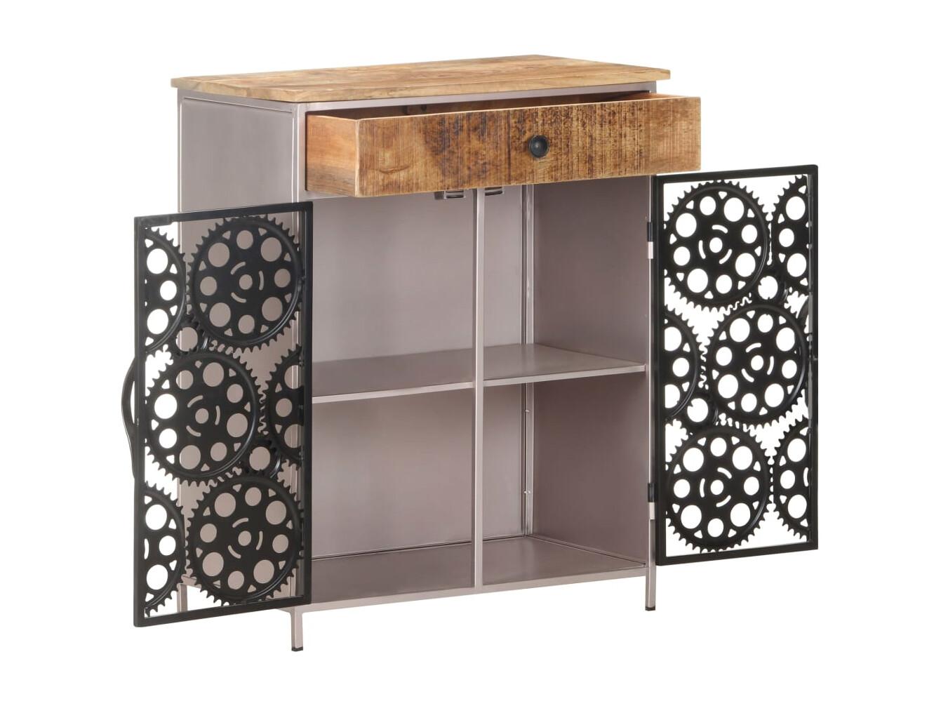 Credenza | Buffet | Armadio 60x35x75 cm in Legno di Mango Grezzo e Ferro