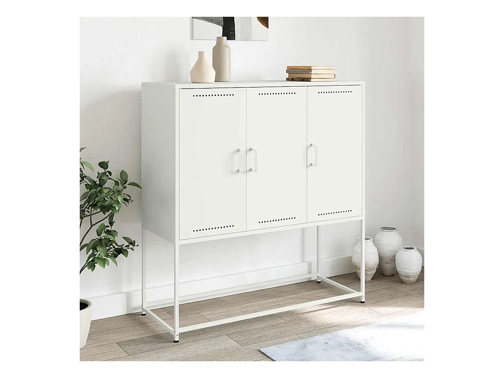 Credenza | Buffet | Armadio Bianca 100,5x39x107 cm in Acciaio Laminato a Freddo