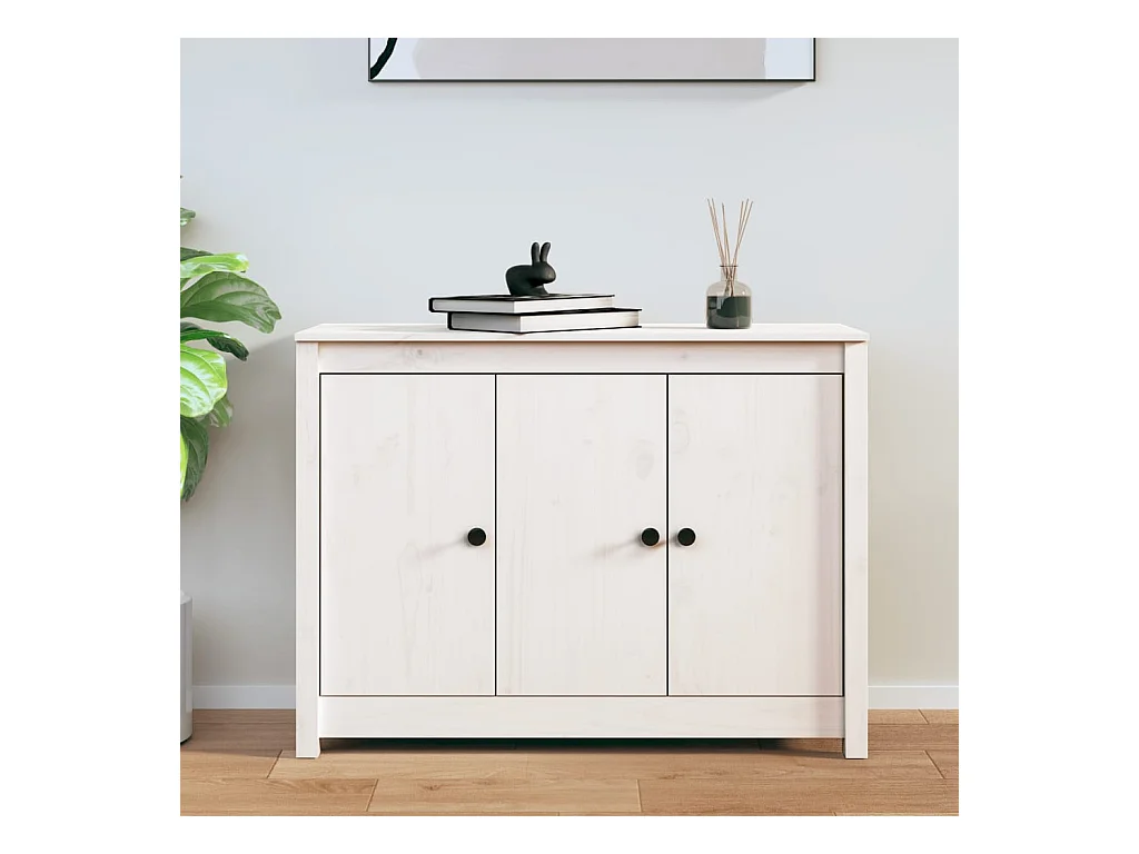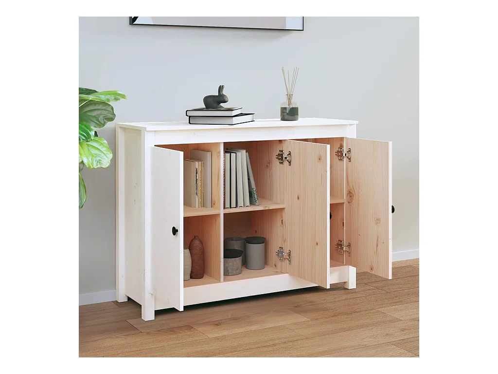 Credenza | Buffet | Armadio Bianca 100x35x74 cm in Legno Massello di Pino