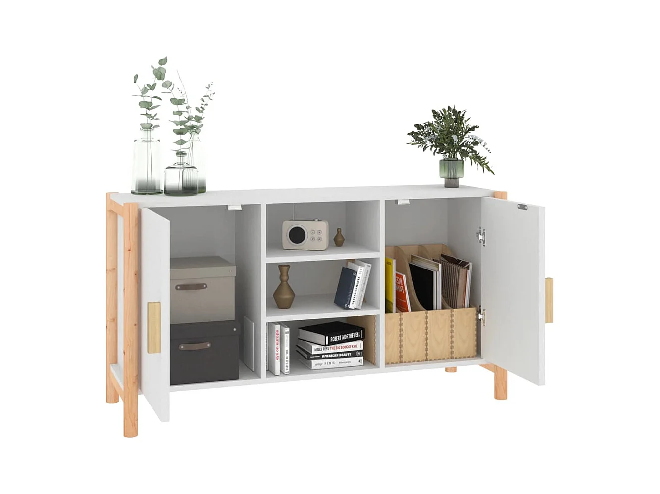 Credenza bianca 111x34x60 cm in legno massello di pino