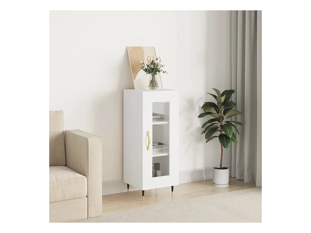 Credenza | Buffet | Armadio Bianco Lucido 34,5x34x90 cm in Legno Multistrato